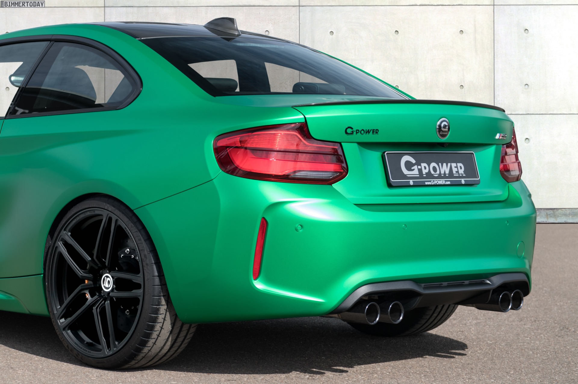 Den passenden Sound zur Leistungssteigerung liefert die G-Power Titan-Abgasanlage mit vier 90-Millimeter-Endrohren. Die klanggewaltige Leichtbau-Konstruktion mit Klappensteuerung sorgt für eine erheblich nachgeschärfte Akustik, kostet aber auch 5.945 Euro. Vergleichsweise günstig fällt der Preis für das G-Power G2M-RS Gewindefahrwerk aus, das den BMW M2 näher an den Asphalt bringt und für 2.248 Euro zu haben ist. Optisch abgerundet wird der Auftritt des Power-M2 mit den 20 Zoll großen Schmiedefelgen G-Power Hurricane RR, die inklusive Bereifung ab 7.950 Euro den Besitzer wechseln.