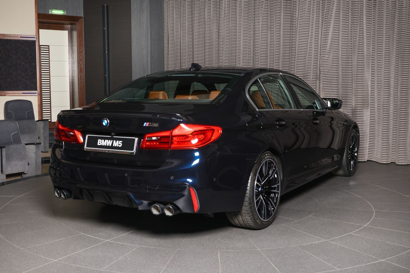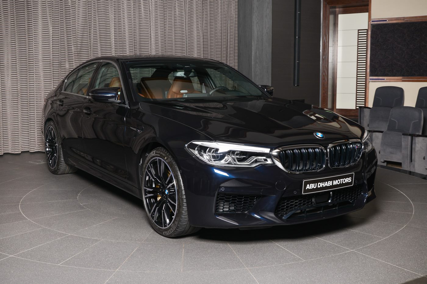 Die aktuellen Fotos stammen aus dem Showroom von BMW Abu Dhabi Motors und liefern uns auch einen Eindruck von den 20 Zoll M Leichtmetallrädern Doppelspeiche 706 M Bicolor, die mit 2.100 Euro Aufpreis nur 200 Euro günstiger sind als die Individual-Lackierung in Azuritschwarz Metallic. Die aufwändige Lackierung, die tiefes Schwarz mit dunkelblauen Effekten kombiniert, kann ihre volle Kraft auf den Fotos im künstlichen Licht des Showrooms leider nicht entfalten, die Faszination Azuritschwarz erschließt sich in der Regel erst bei Sonnenschein.