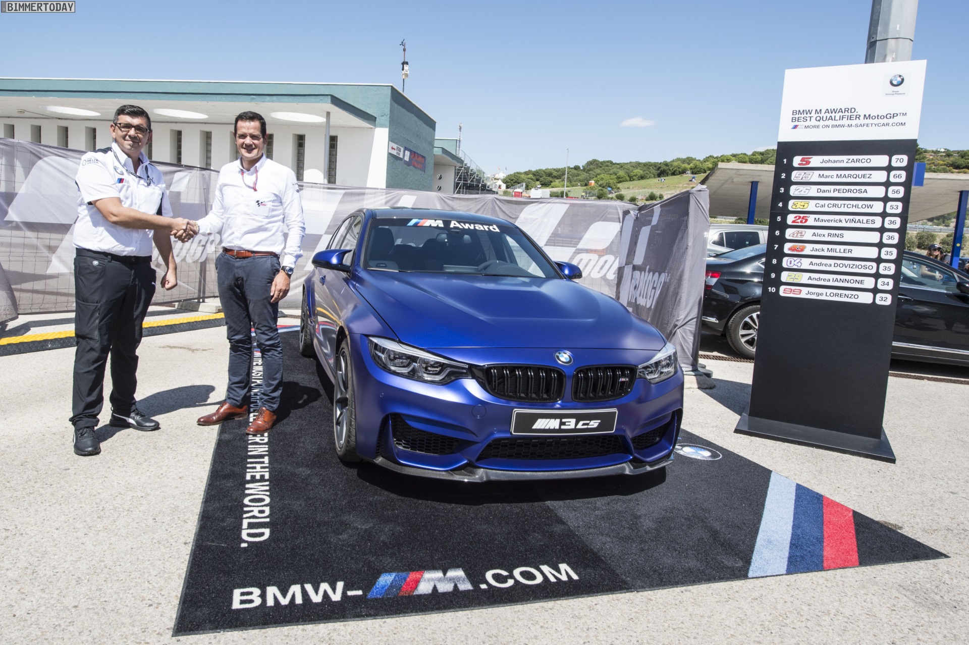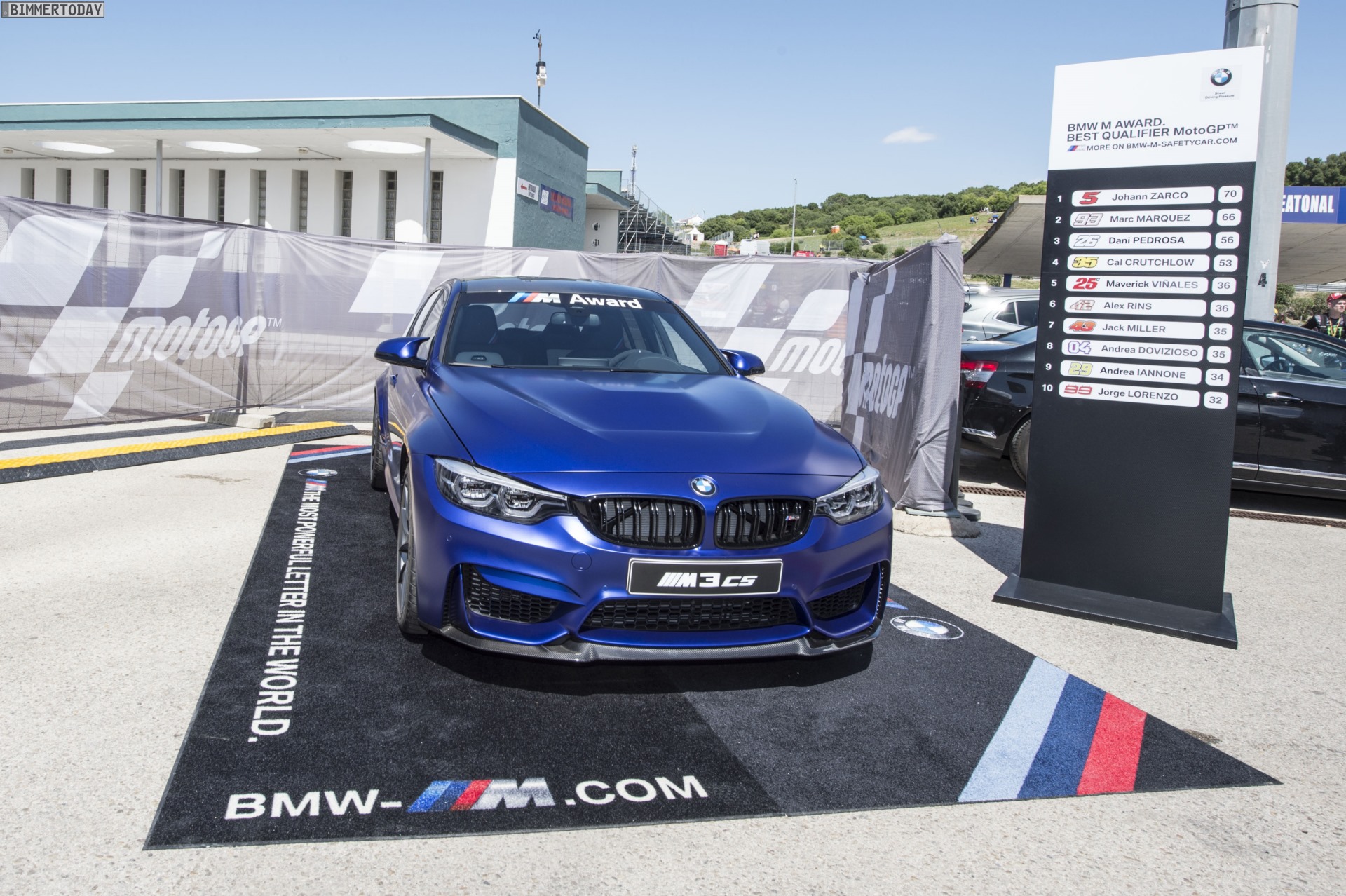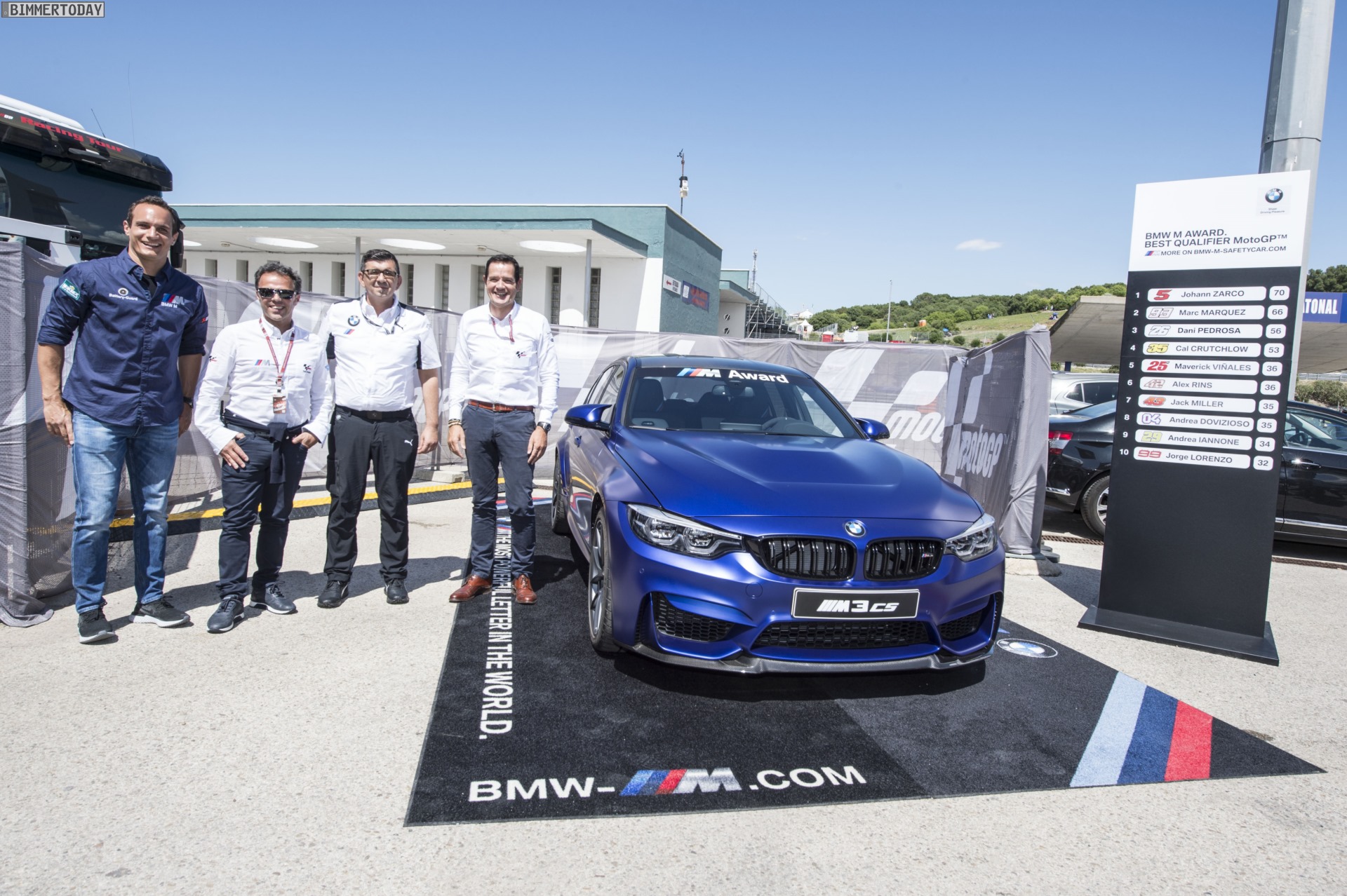 Vladimir Bistrivoda (BMW M GmbH, Leiter Kooperation MotoGP): “2018 ist als unsere Jubiläumssaison in der MotoGP natürlich etwas ganz Besonderes für uns. Deshalb freuen wir uns, mit unserer exklusiven Hochleistungslimousine BMW M3 CS wieder ein ganz besonderes Modell aus unserer Produktpalette als BMW M Award Siegerfahrzeug präsentieren zu können. Es macht uns stolz, dass der BMW M Award in der MotoGP-Familie seit vielen Jahren eine sehr begehrte Auszeichnung ist – und damit, dass wir als Siegerfahrzeuge Highlights wie den BMW M3 CS wählen, möchten wir uns für diese Wertschätzung bedanken.”
