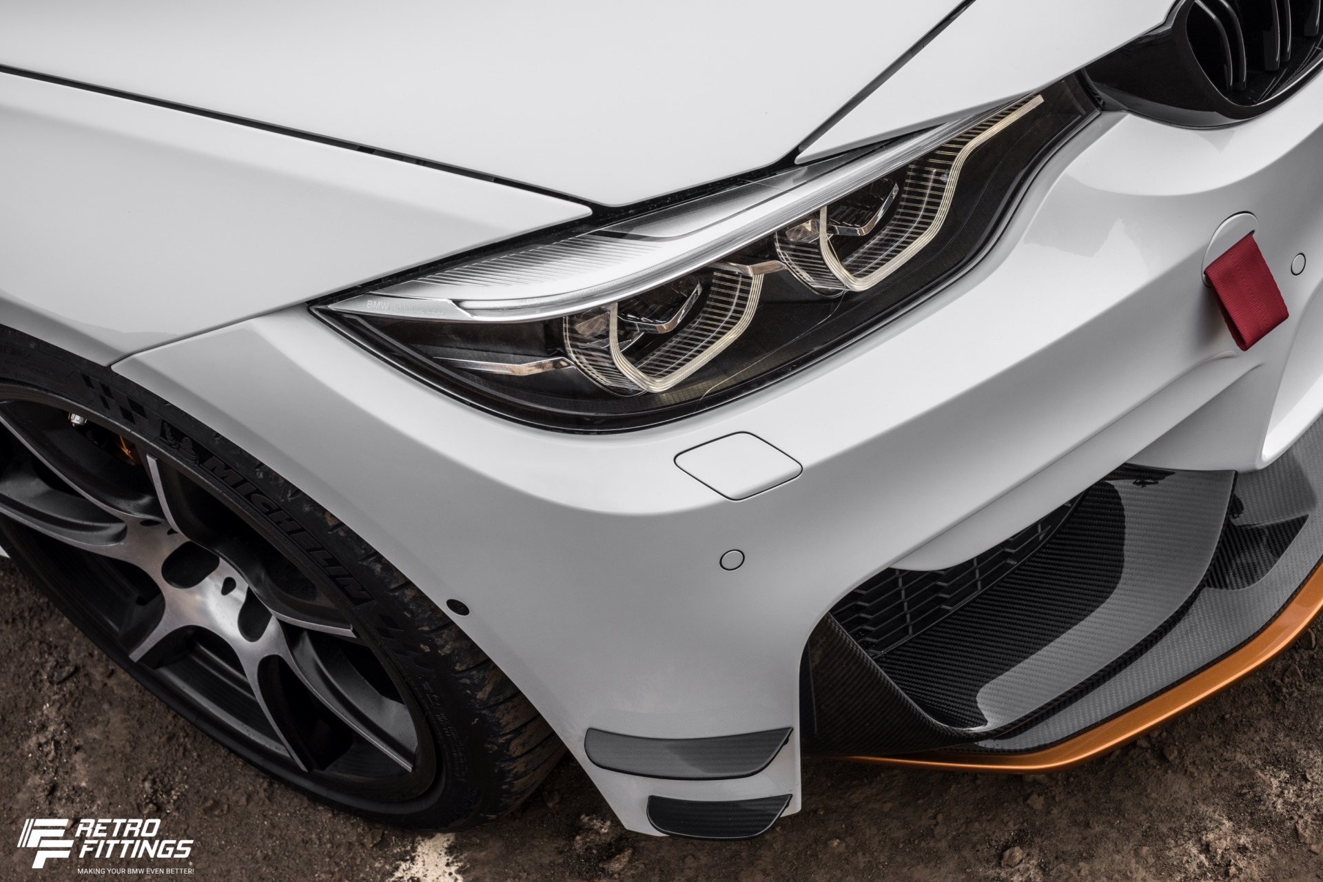 Schon auf den ersten Blick fallen die vom M4 GTS bekannte Carbon-Motorhaube mit zusätzlichen Entlüftungsöffnungen, der verstellbare Frontsplitter in Acid Orange, der einstellbare Heckflügel und die ebenso exklusiven wie preisintensiven Carbon-Felgen vom Typ 681 M ins Auge, aber damit ist es längst nicht getan. Weitere optische Details wie die in Acid Orange lackierten Bremssättel und einige Komponenten aus dem Programm von BMW M Performance runden das Exterieur gemeinsam mit Blackline-Heckleuchten ab. Dass FF Retrofittings dem bereits 2015 ausgelieferten Basisfahrzeug dabei gleich die aktuellsten Facelift-Scheinwerfer und -Rückleuchten verpasst hat, versteht sich beim Blick auf die Nachrüst-Kompetenz der Firma von selbst.
