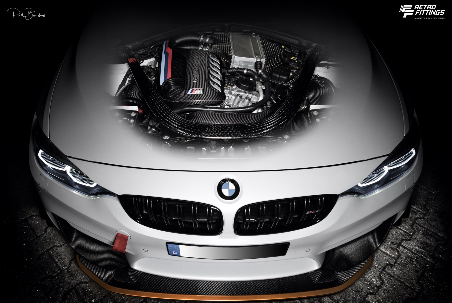 Gekrönt wird der FF Retrofittings M3 von einer Leistungssteigerung, die der Bremsanlage auch am Ende kurzer Geraden genügend Arbeit beschert. Eine Carbon-Ansaugung von Eventuri liefert gemeinsam mit einer Akrapovic Evolution Abgasanlage die Hardware-Voraussetzungen für eine individuelle Kennfeldoptimierung, an deren Ende der Biturbo-Reihensechszylinder S55 beeindruckende 510 PS und ein maximales Drehmoment von 680 Newtonmeter bietet. In Kombination mit einer Vmax-Aufhebung knackt der BMW M3 GTS von FF Retrofittings mühelos die 300 km/h-Marke.