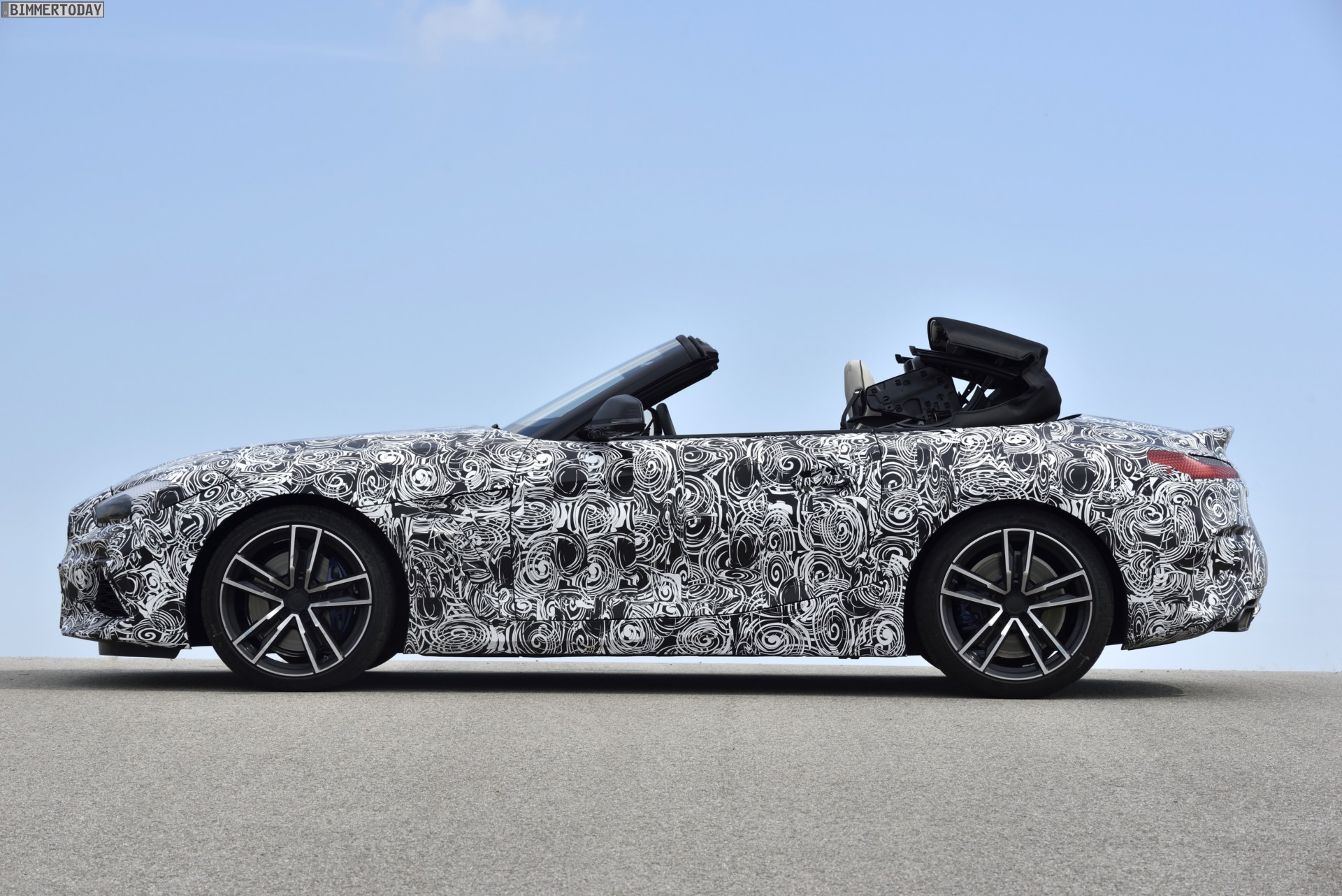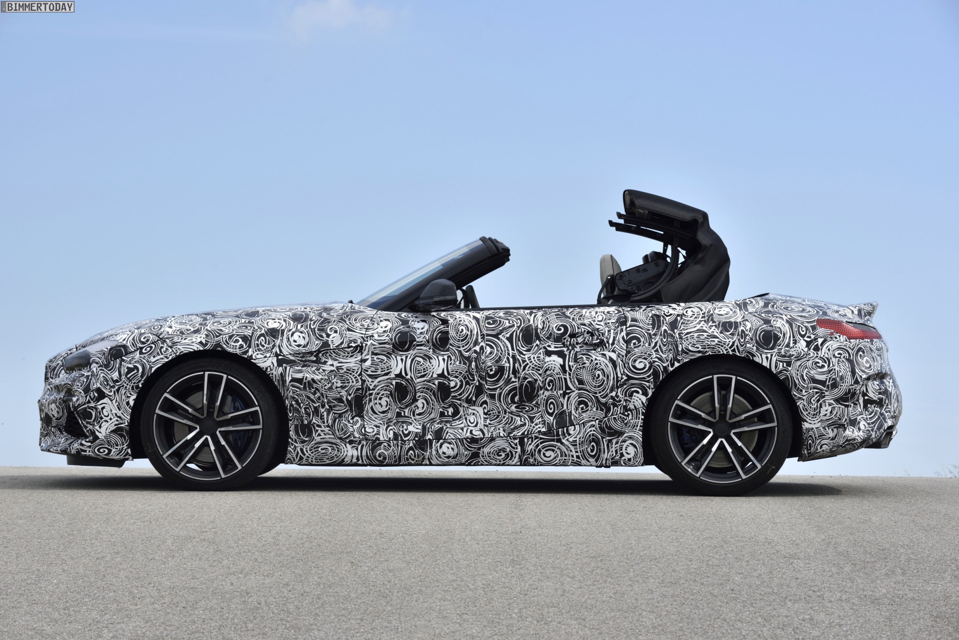 Und dennoch bleiben vor dem Umstieg Zweifel. Klar, der neue BMW Z4 G29 sollte sich die Kritik am Vorgänger zu Herzen nehmen und wieder mehr Sportwagen als Cruiser sein, aber sollte er dabei gleich so scharf wie ein M2 werden? Und wenn ja: Wäre das nicht eher die Aufgabe eines möglichen BMW Z4 M als die des hier vorgestellten BMW Z4 M40i? Die Antwort kann nur einer geben: Dick in Tarnfolie verpackt wartet der G29-Erlkönig förmlich darauf, es endlich allen zeigen zu dürfen. Und natürlich ist auch unsere Neugier geweckt: Gelingt es dem neuen Z4 tatsächlich, das im Automobilbau längst bis an den Rand der Bedeutungslosigkeit überstrapazierte Versprechen von der gesteigerten Sportlichkeit derart überzeugend umzusetzen, dass sogar der M2 in Reichweite rückt?