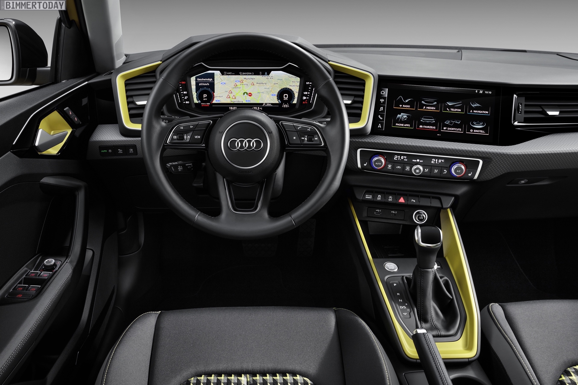 Im Innenraum setzt der Audi A1 2018 voll auf digitale Anzeigen. Das aus anderen Modellen bekannte Live Cockpit und der optionale Touchscreen mit 10,1 Zoll Bildschirm-Diagonale lassen das Interieur sehr modern wirken. Auch das Angebot der Assistenzsysteme ist sehr aktuell und umfasst auf Wunsch unter anderem einen adaptiven Tempomat mit Abstandsregelung, eine Spurverlassungswarnung und einen Parkassistent – Systeme, die in vergleichbarer Form auch bei MINI seit Jahren erhältlich sind.