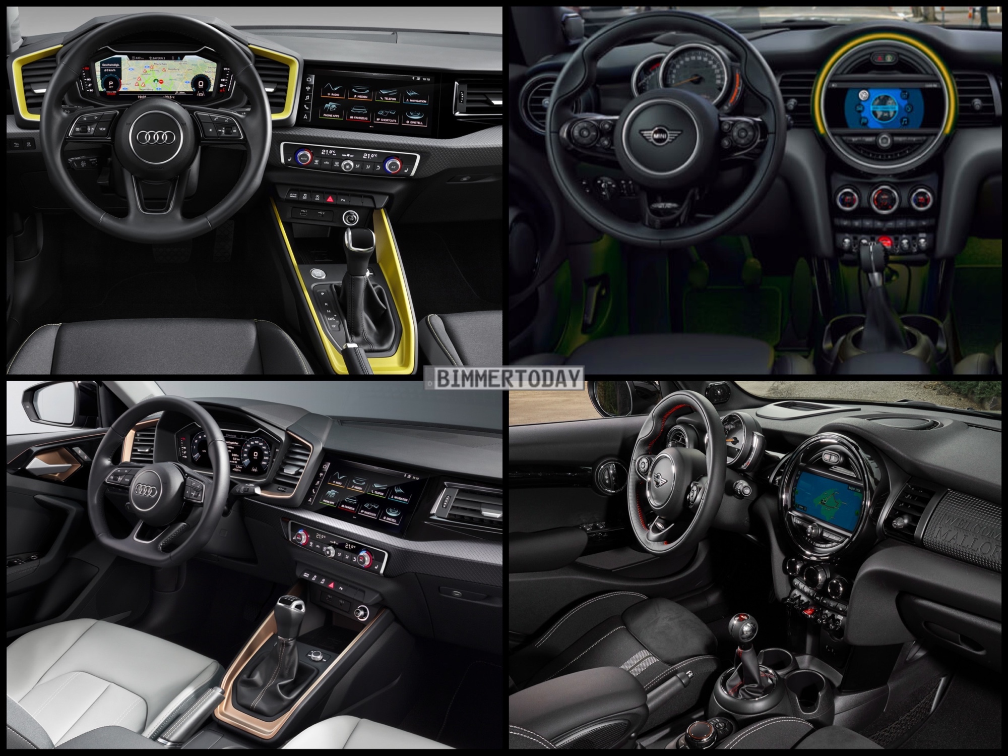 Die Motorenpalette des Audi A1 umfasst zunächst ausschließlich Benziner in einer Leistungsspanne von 95 bis 200 PS, auf das Angebot effizienter Diesel-Motoren verzichten die Ingolstädter zumindest zum Marktstart vollständig. Bei MINI umfasst das Angebot derzeit vier Benziner mit 75 bis 192 PS sowie drei Diesel mit 95 bis 170 PS. Der MINI John Cooper Works Fünftürer mit 231 PS ist derzeit im Zuge der Umstellung auf WLTP und Otto-Partikelfilter nicht erhältlich, wird aber 2019 wieder ins Programm genommen und könnte dann gegen einen möglichen Audi S1 antreten, den die Ingolstädter mit hoher Wahrscheinlichkeit zu einem späteren Zeitpunkt präsentieren werden.