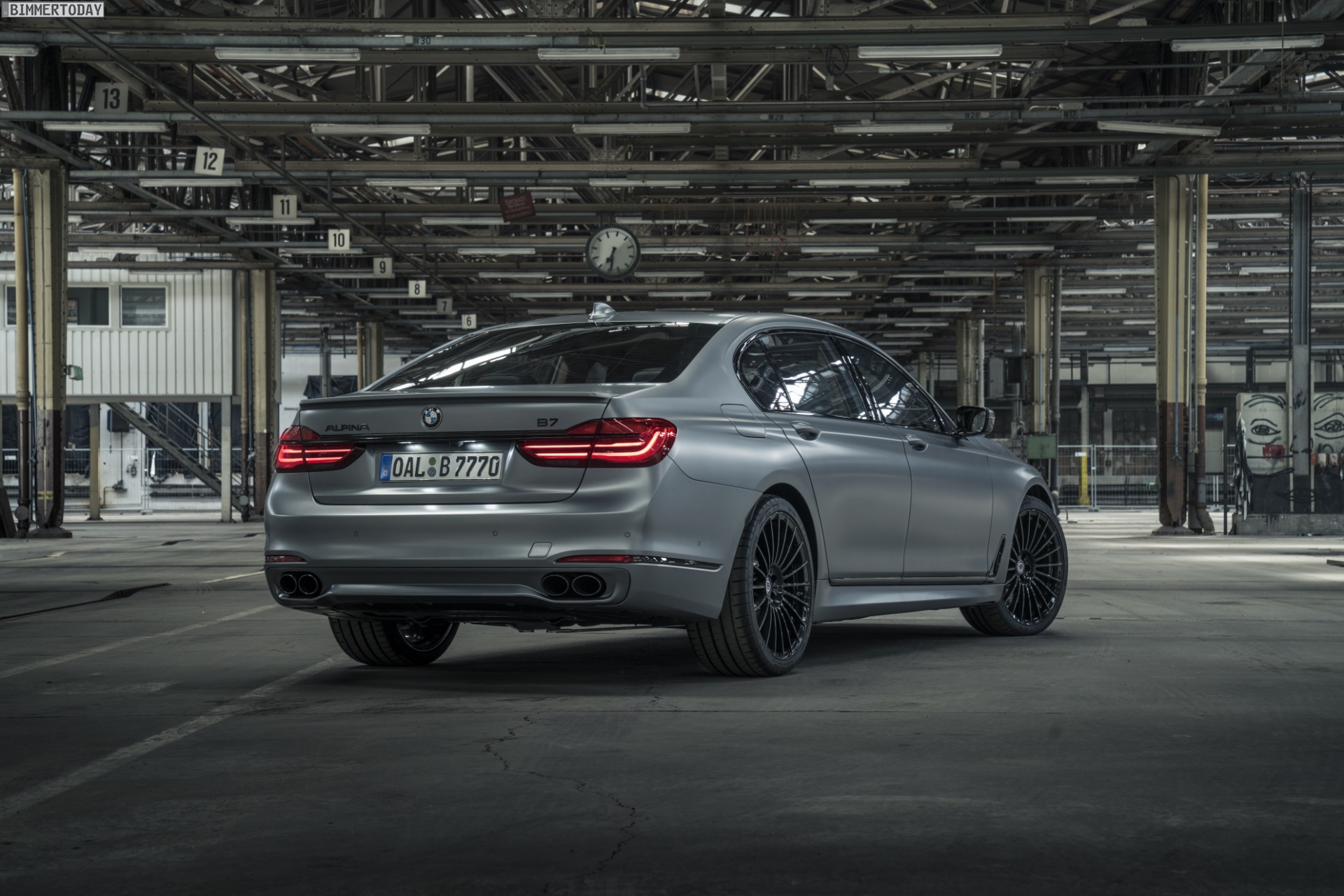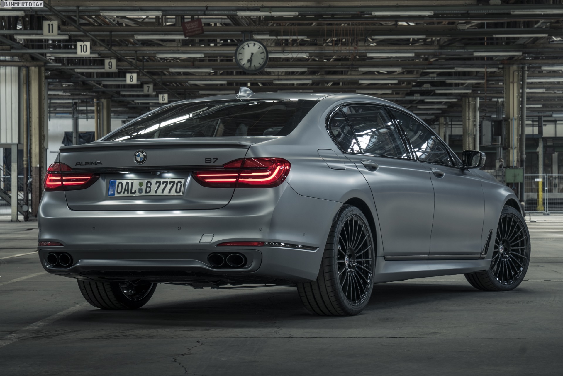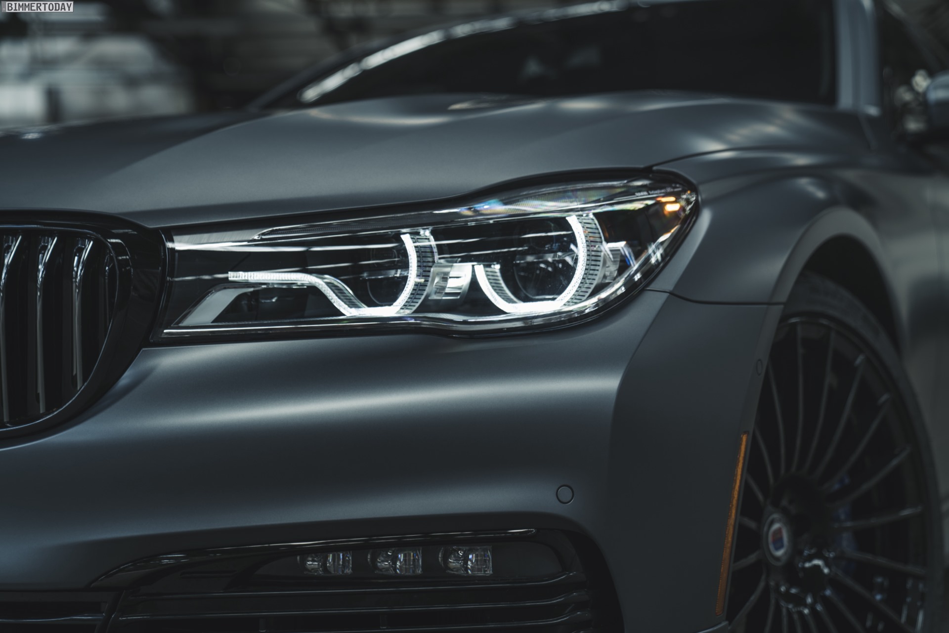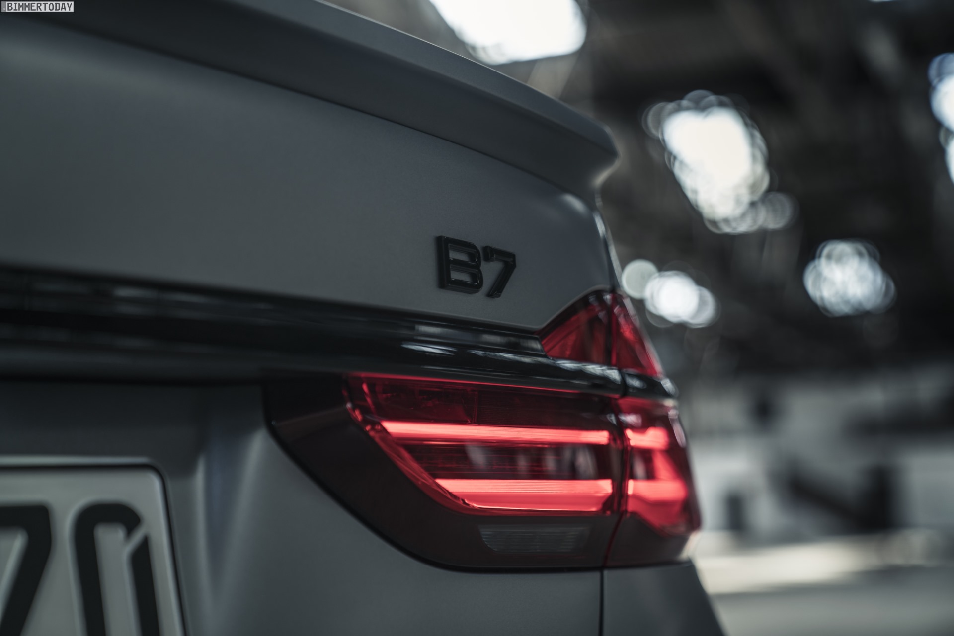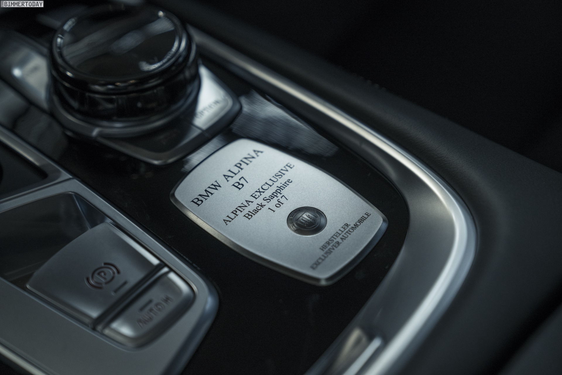 Jeweils sieben Fahrzeuge werden in den zur Wahl stehenden Farben Frozen Grey, Frozen Black oder Saphirschwarz gefertigt. Im Innenraum weist die Alpina-Plakette auf die gewählte Lackierung hin und trägt zusätzlich den Schriftzug “1 of 7”. Zahlreiche schwarz verchromte Elemente, angefangen von den Nieren bis zu den Endrohren der Alpina-Sportabgasanlage, werten das Exterieur gemeinsam mit den 21 Zoll großen Alpina Classic-Felgen in Hochglanzschwarz zusätzlich auf. Natürlich dürfen auch die typischen B7-Elemente wie der spezifische Frontschürzen-Aufsatz und die markante Heckspoiler-Lippe nicht fehlen.