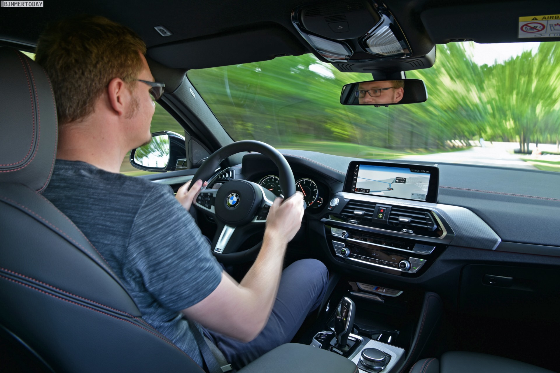 Das Ergebnis der umfangreichen Modifikationen wird bereits nach wenigen Metern und den ersten Kurven in South Carolina deutlich: Der BMW X4 G02 geht nicht nur optisch, sondern auch beim Fahrverhalten seinen eigenen Weg und löst dabei das Versprechen ein, das die Coupé-Silhouette schon von weitem gibt. Bei dynamischer Fahrweise hilft geübten Fahrern auch die im Vergleich zum Vorgänger spürbar hecklastigere Kraftverteilung des Allradantriebs xDrive, mit der sich Untersteuern schon im Ansatz entgegenwirken lässt. Die elektronisch geregelte Sperre an der Hinterachse ist direkt mit der DSC-Steuerung vernetzt und unterstützt je nach Fahrmodus mit mehr oder weniger Sperrwirkung. Wer es darauf anlegt, kann den X4 daher durchaus auch quer bewegen – was sich am Steuer eines SUV immer wieder ungewohnt anfühlt, aber erstaunlich gut funktioniert.