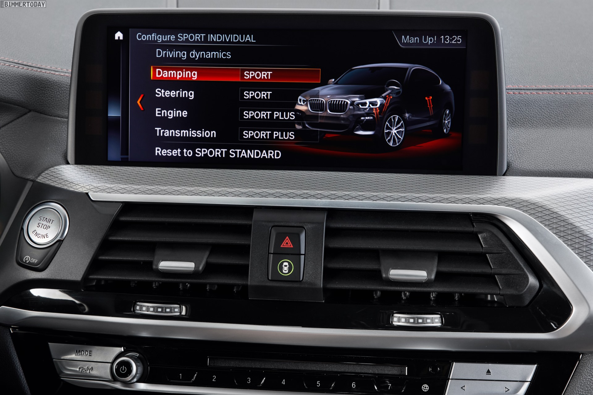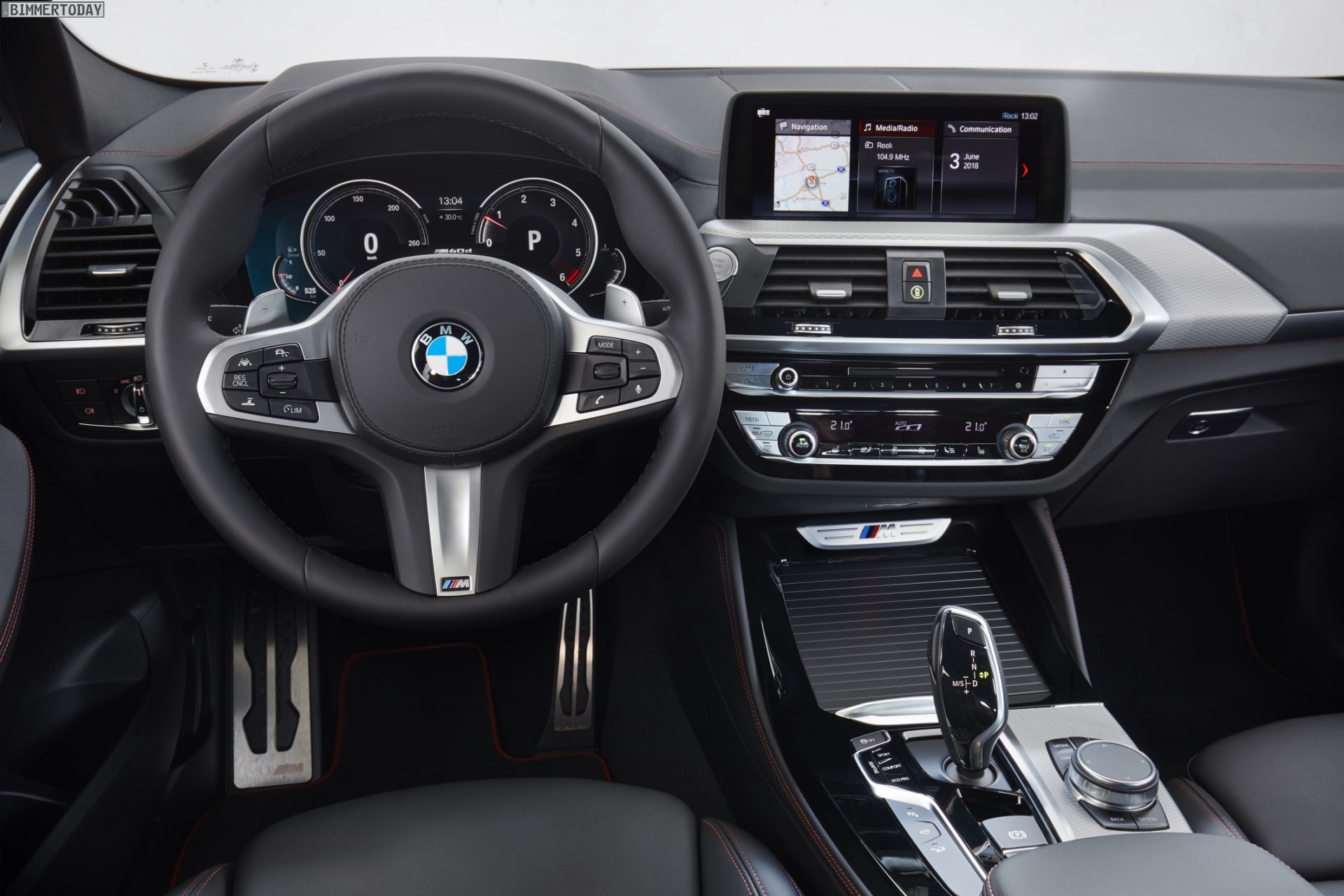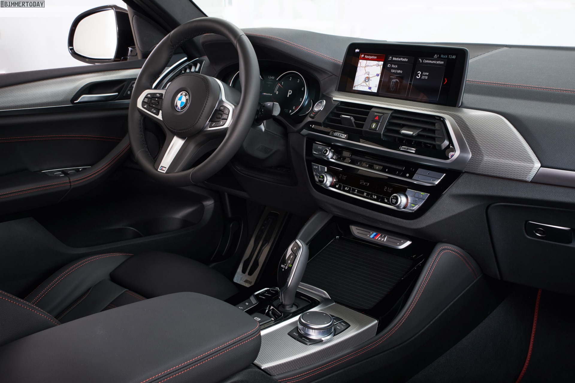 Erleben lässt sich das agile Fahrspaß-Paket BMW X4 M40d in einem Innenraum, der alle Zweifel an der Nähe zum X3 zerstreut. Abgesehen von zusätzlichen Knie-Pads für Fahrer und Beifahrer unterscheidet sich das Cockpit praktisch nicht vom X3, was allerdings kein Nachteil ist: Das Interieur der beiden Mittelklasse-SUV aus Spartanburg wurde im Vergleich zu den Vorgängern dramatisch verbessert, ist mit feineren Materialien ausgerüstet und mit deutlich mehr Liebe zum Detail gestaltet.