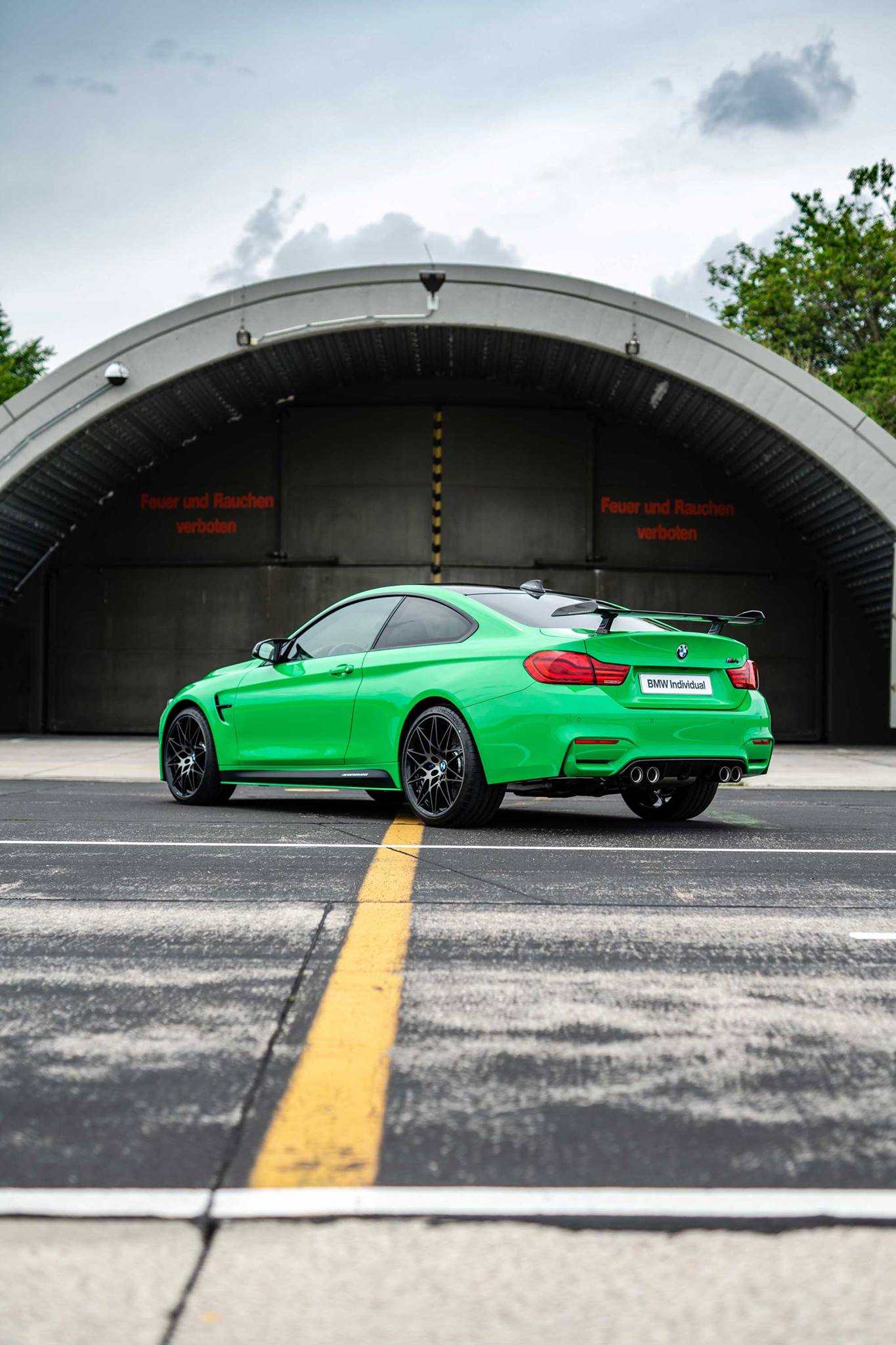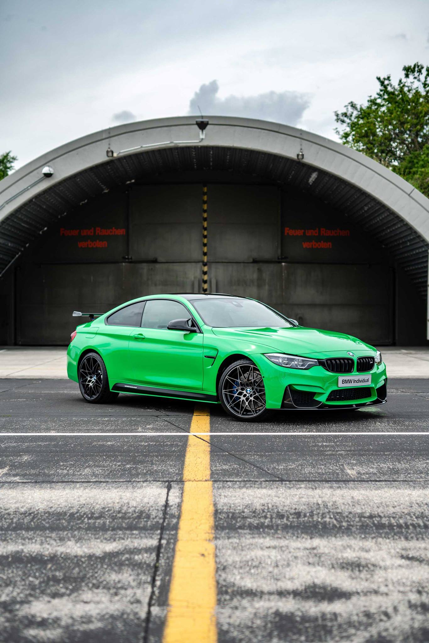 Wie scharf Signal Green wirken kann, zeigen einige neue Fotos der M GmbH. Auf dem Flughafen-Gelände der BMW Driving Academy Maisach bei Fürstenfeldbruck haben die Herren über BMW Individual ein BMW M4 Coupé mit Competition-Paket und M Performance Zubehör in Szene gesetzt, was bei einer Lackierung wie Signal Green allerdings keine große Herausforderung darstellt: Völlig egal vor welchem Hintergrund, dieser BMW M4 ist immer ein Blickfang.