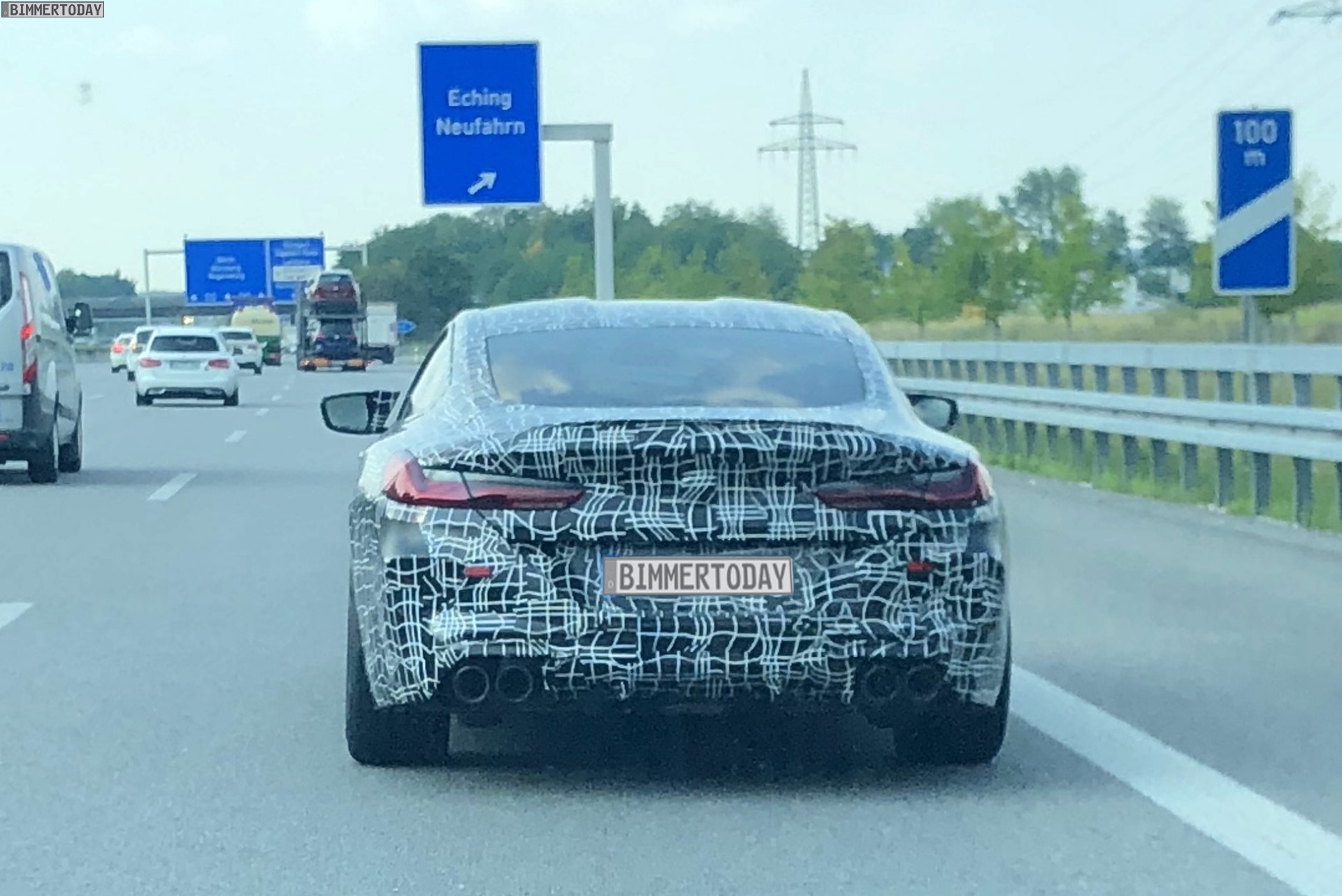 Das neue BMW M8 Coué wird weiter auf seinen Marktstart 2019 vorbereitet. Die schärfste Variante des 8er G15 absolviert derzeit Testfahrten auf der Nürburgring Nordschleife und anderen Rennstrecken, muss sich aber auch dem Alltag in Deutschland stellen und zeigen, dass es längere Strecken mit ruhigem Tempo ebenso beherrscht wie einige Kilometer am Limit. Unser Leser Mike hat einen BMW M8 Erlkönig auf der Autobahn bei München erwischt und gleich ein paar Fotos für uns gemacht, die uns vor allem das Heck und die Seitenansicht des Sport-Coupés zeigen.