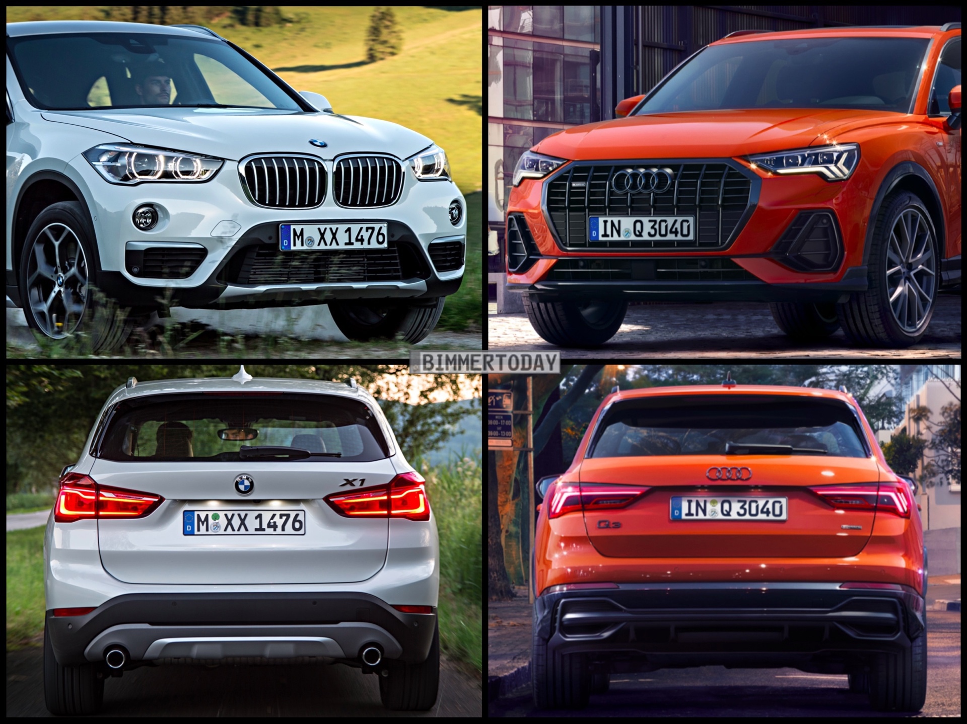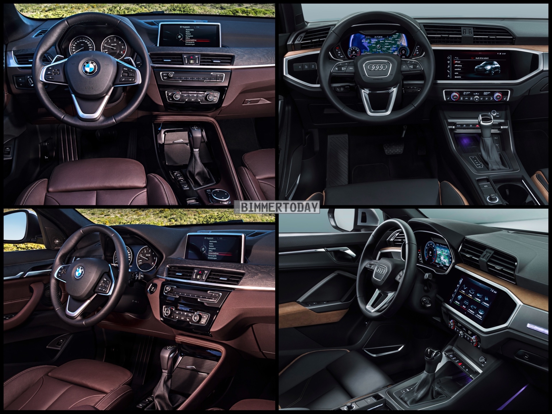 Mit einer Länge von fast 4,49 Meter überragt der Audi Q3 2018 den BMW X1 F48 um knapp fünf Zentimeter, gleichzeitig ist der drei Zentimeter breiter und knapp drei Zentimeter flacher als der Münchner. Die größeren Abmessungen lassen sich zumindest am Kofferraum-Volumen nicht ablesen, hier liegen der Audi Q3 mit 530 bis 1.525 und der BMW X1 mit 505 bis 1.550 Liter praktisch auf Augenhöhe.