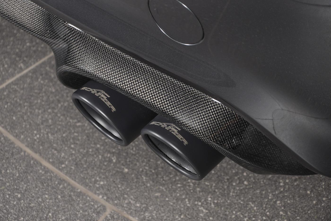Aus Carbon bestehen auch die Außenspiegel-Kappen, die allerdings erst auf den zweiten Blick zu erkennen sind: In Kombination mit der Lackierung in Mineralgrau Metallic werden die Carbon-Elemente zu Details, die erst bei genauerem Hinsehen ins Auge fallen. 20 Zoll große Leichtmetallräder mit Michelin Pilot Sport 4S-Bereifung runden das Tuning-Programm für den 370 PS starken Kompaktsportler ab.