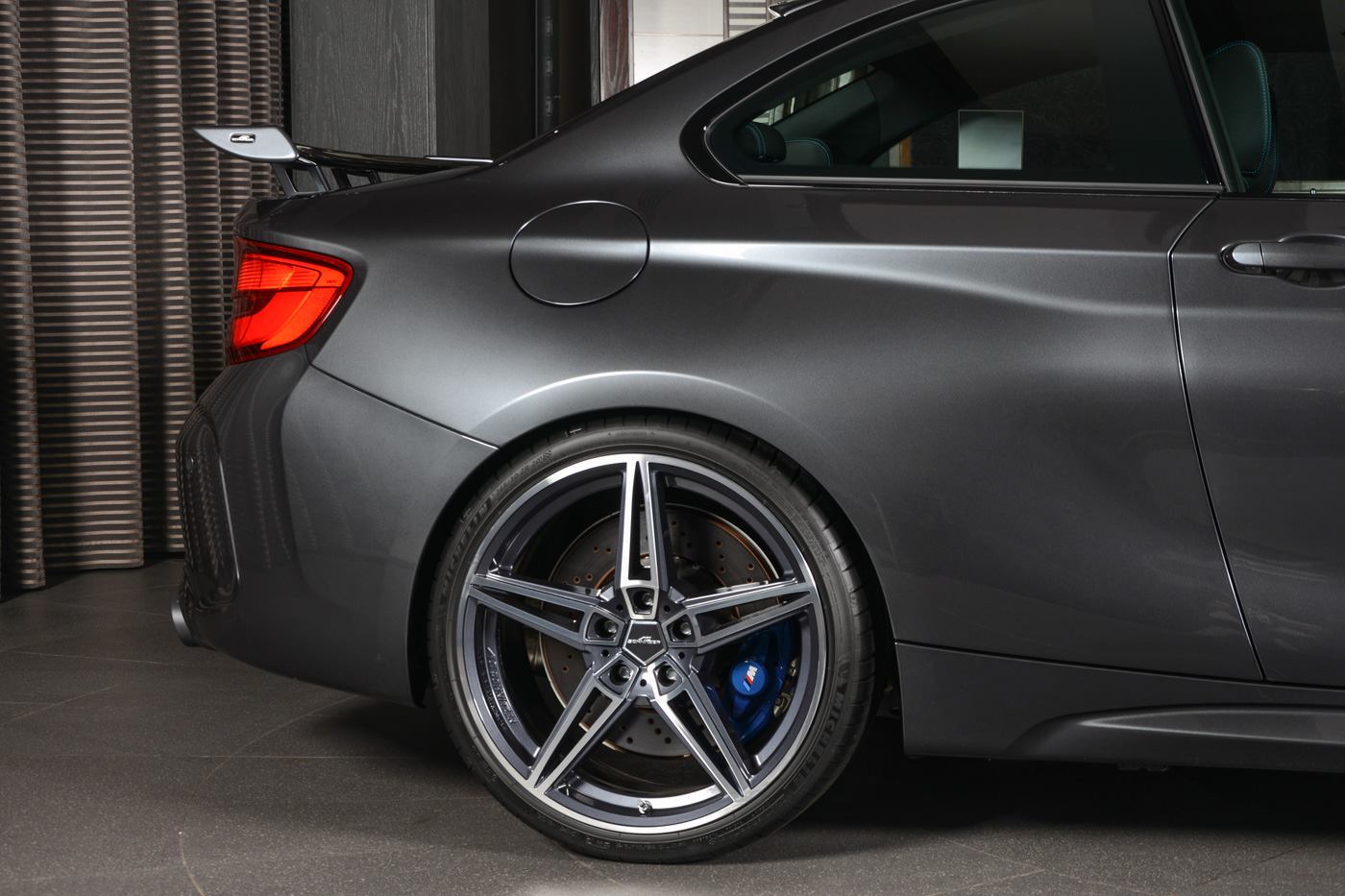 Der große Frontsplitter und die seitlichen Aero-Wings sorgen für weniger Auftrieb an der Vorderachse, an der Hinterachse wird der BMW M2 vom großen AC Schnitzer Heckflügel auf den Asphalt gepresst. Vordergründig der Optik dient hingegen der Diffusor-Einsatz von AC Schnitzer, der dem Heck noch mehr Motorsport-Flair verleiht und die AC Schnitzer Sport-Abgasanlage optimal einfasst.