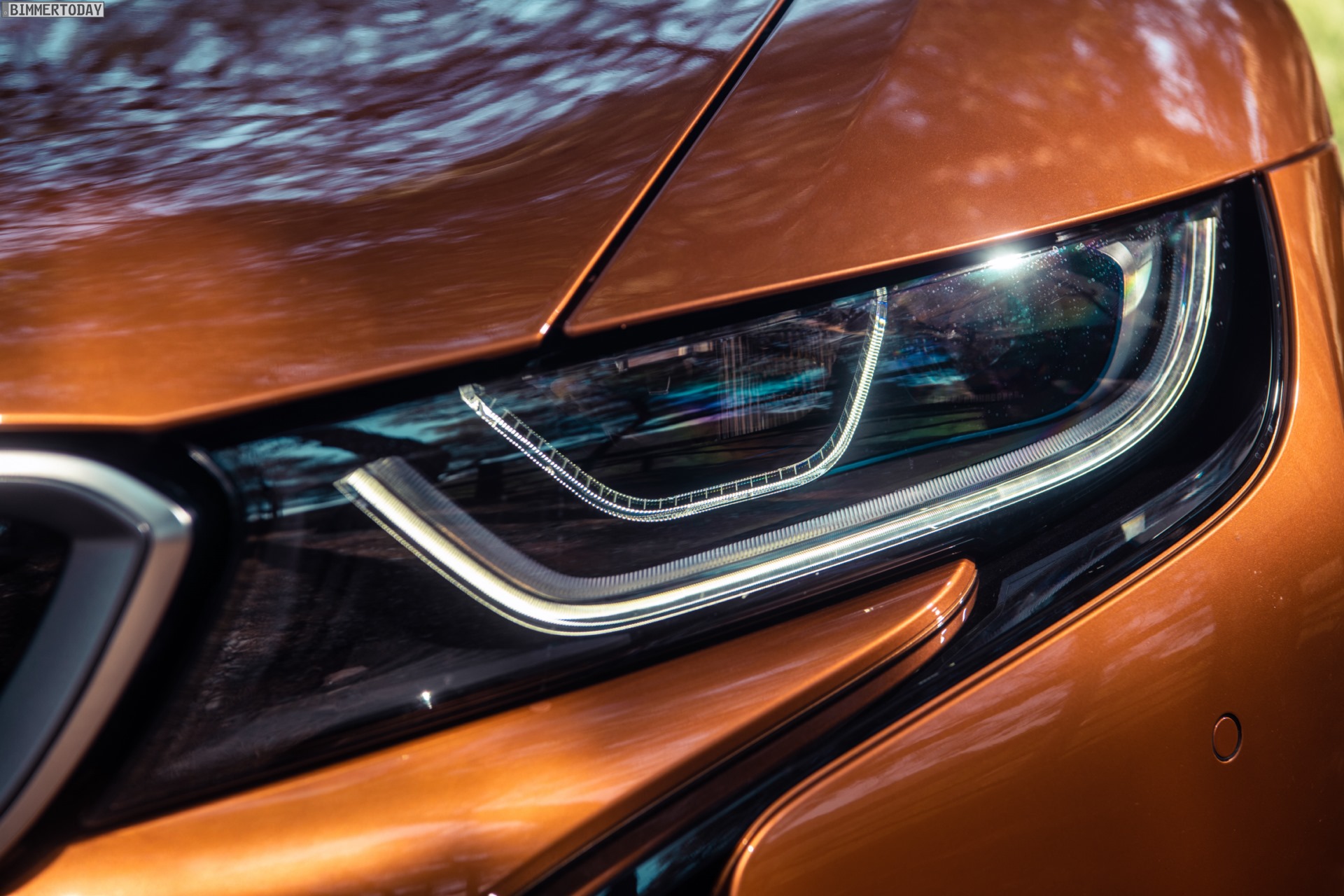 Seit dem Facelift für den BMW i8 gehört E-Copper auch für zur Farbpalette des Coupés. Im Rahmen der Modellpflege haben das Coupé und der völlig neue BMW i8 Roadster ein neues Akku-Paket erhalten, das die Reichweite deutlich steigert und den Plug-in-Hybriden zu einem noch angenehmeren Begleiter im Alltag macht.