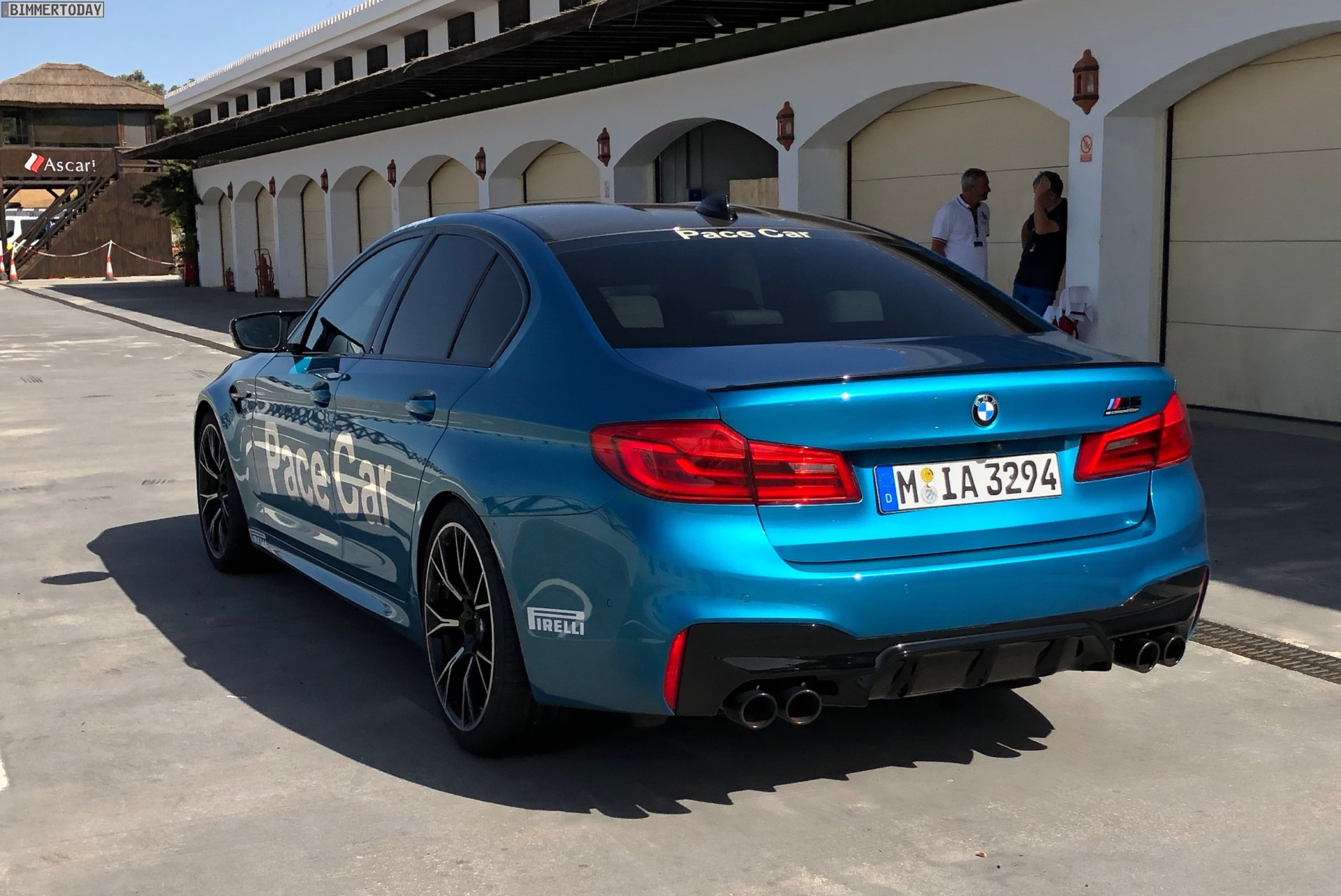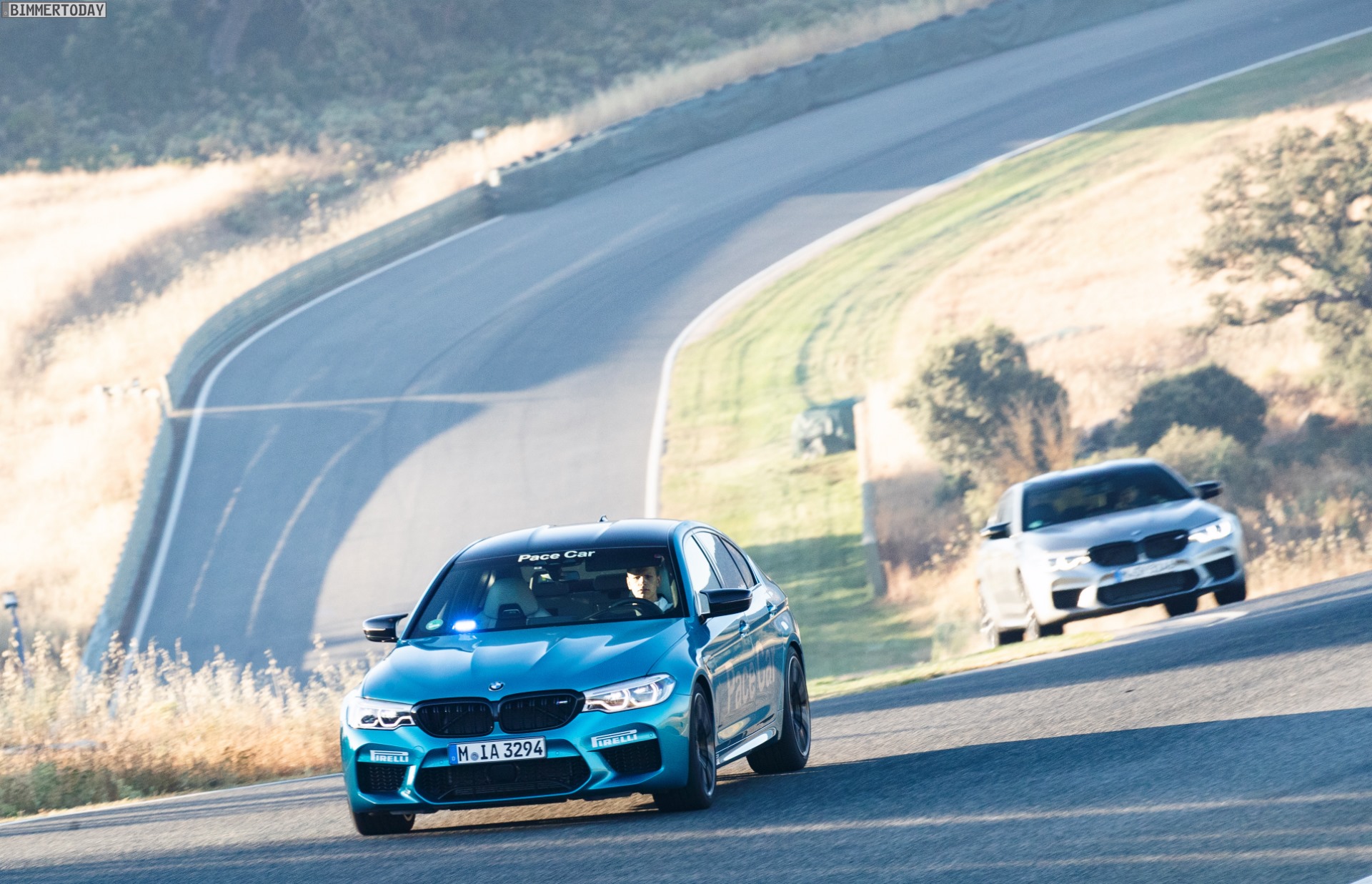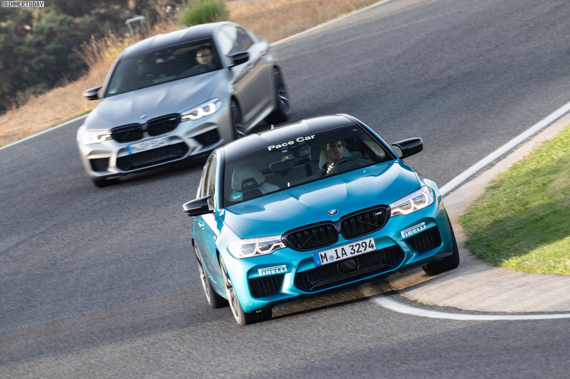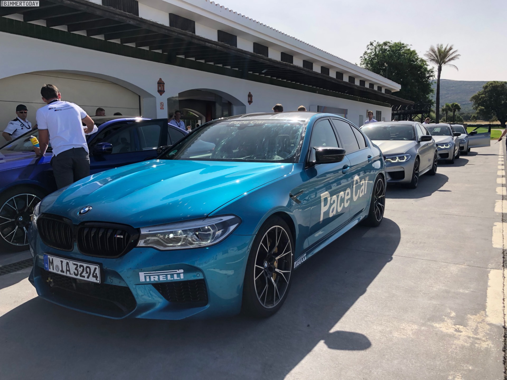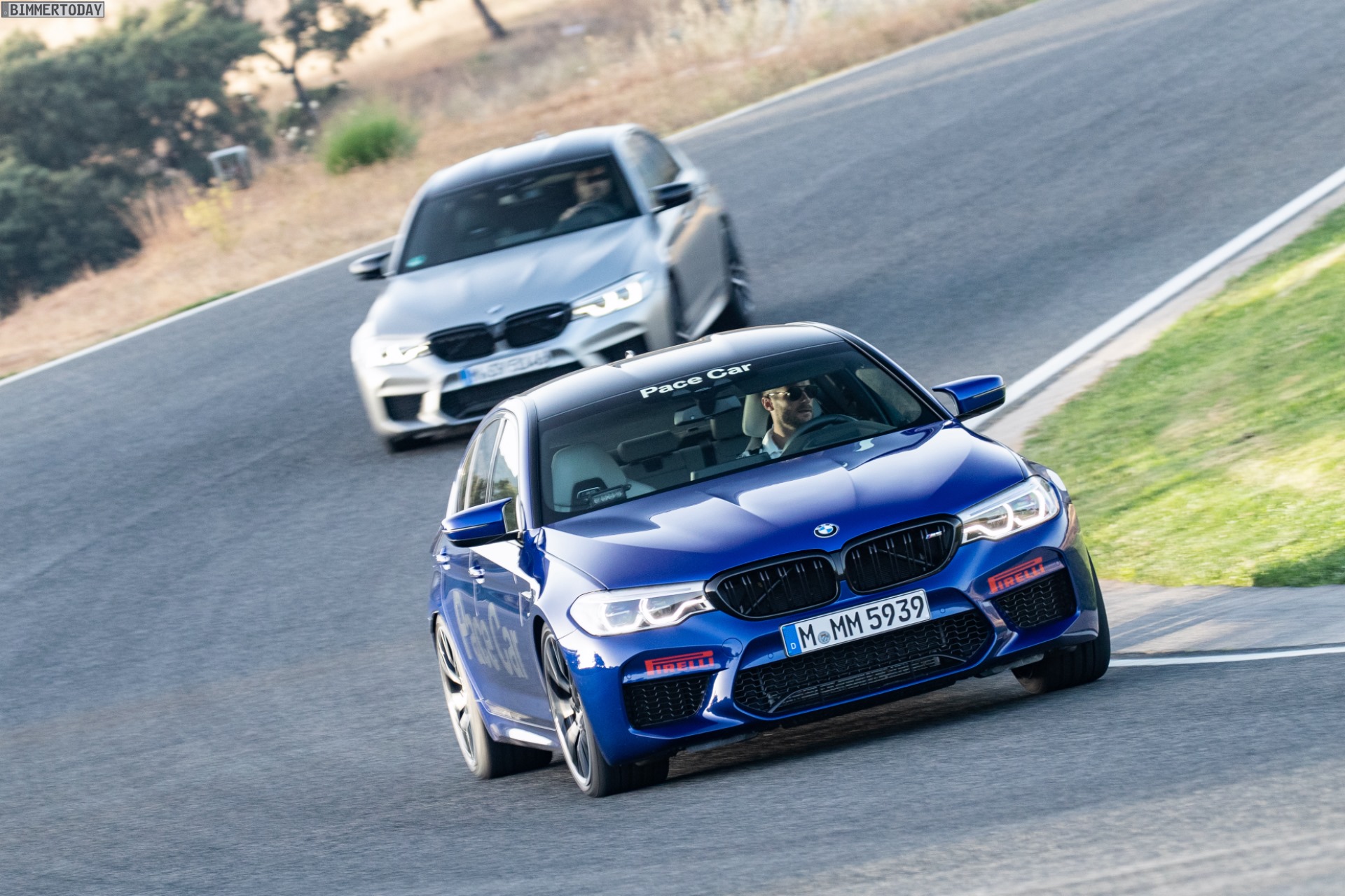 Während der BMW M5 Competition auf der Rennstrecke ein großes Ausrufezeichen setzt und sich als verkappter Sportwagen im Limousinen-Kleid präsentiert, verzichtet er rein optisch beinahe vollständig auf große Ausrufezeichen. Während wir die Limousine für den ersten Fahrbericht in Frozen Dark Silber gefahren sind, waren die Pace Cars auf der Rennstrecke von Ascari auch in Snapper Rocks Blue und Marina Bay Blue unterwegs.