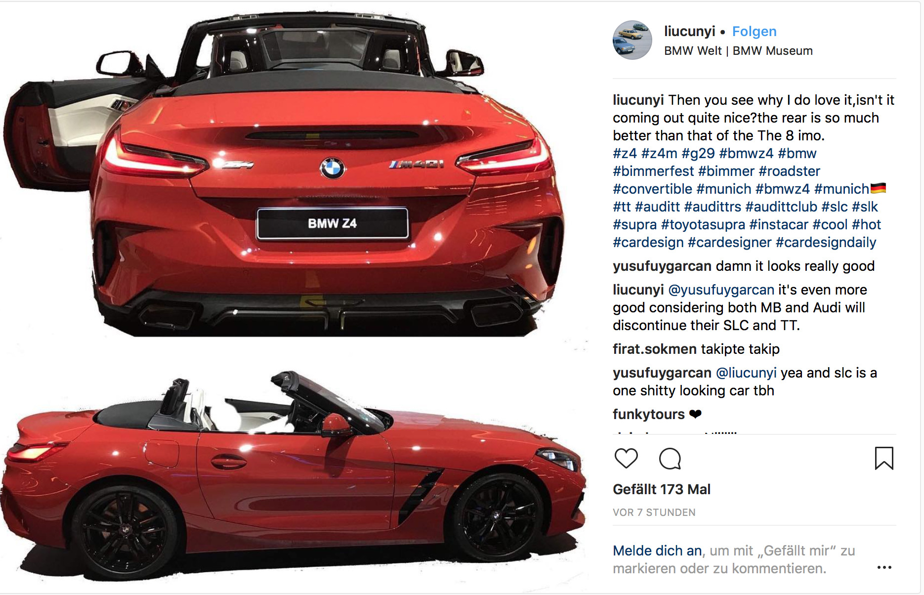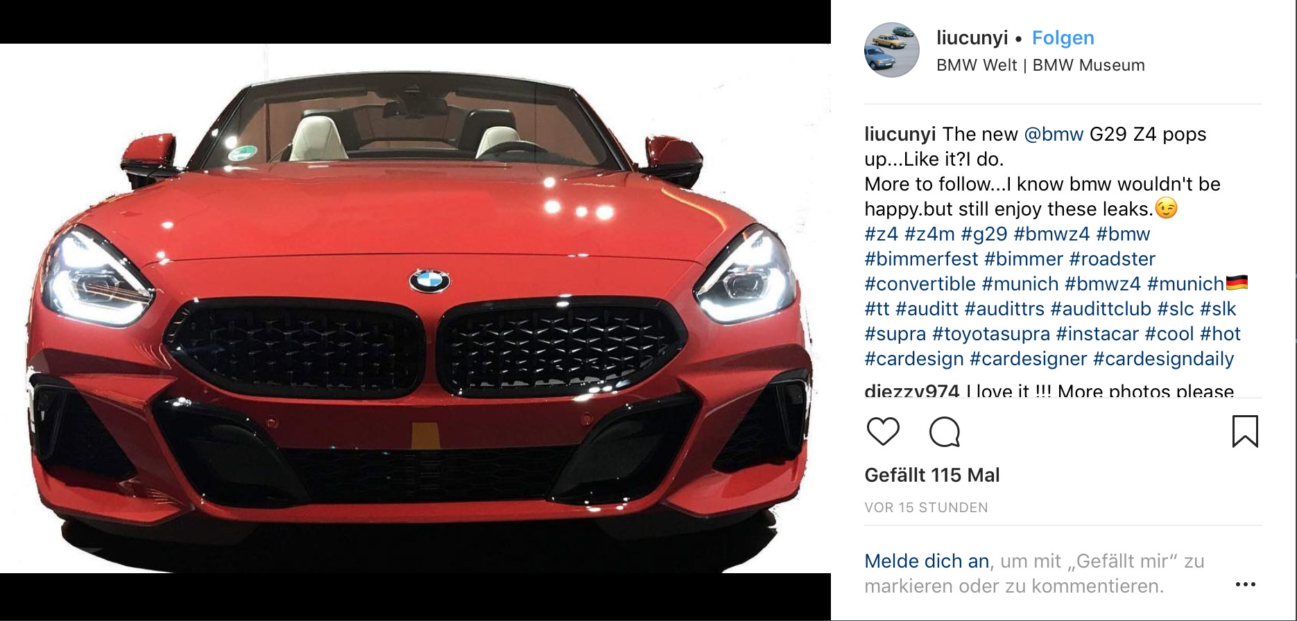 Auch den BMW Z4 Roadster hat nun das Schicksal zahlloser Neuheiten der letzten Jahre ereilt: Drei Leak-Fotos zeigen praktisch alle wesentlichen Details des G29, der eigentlich erst in einigen Tagen im Rahmen des Concours d‘Elegance Pebble Beach enthüllt werden soll. Bei dem ersten Foto handelt es sich um eine Frontal-Aufnahme, die unter anderem das Design von Nieren, Scheinwerfern und Frontschürze enthüllt. Der rot lackierte Z4 glänzt dabei mit einigen Elementen in Hochglanz-Schwarz, was auf eine Shadow Line mit erweiterten Umfängen oder ein vergleichbares Paket hinweist.