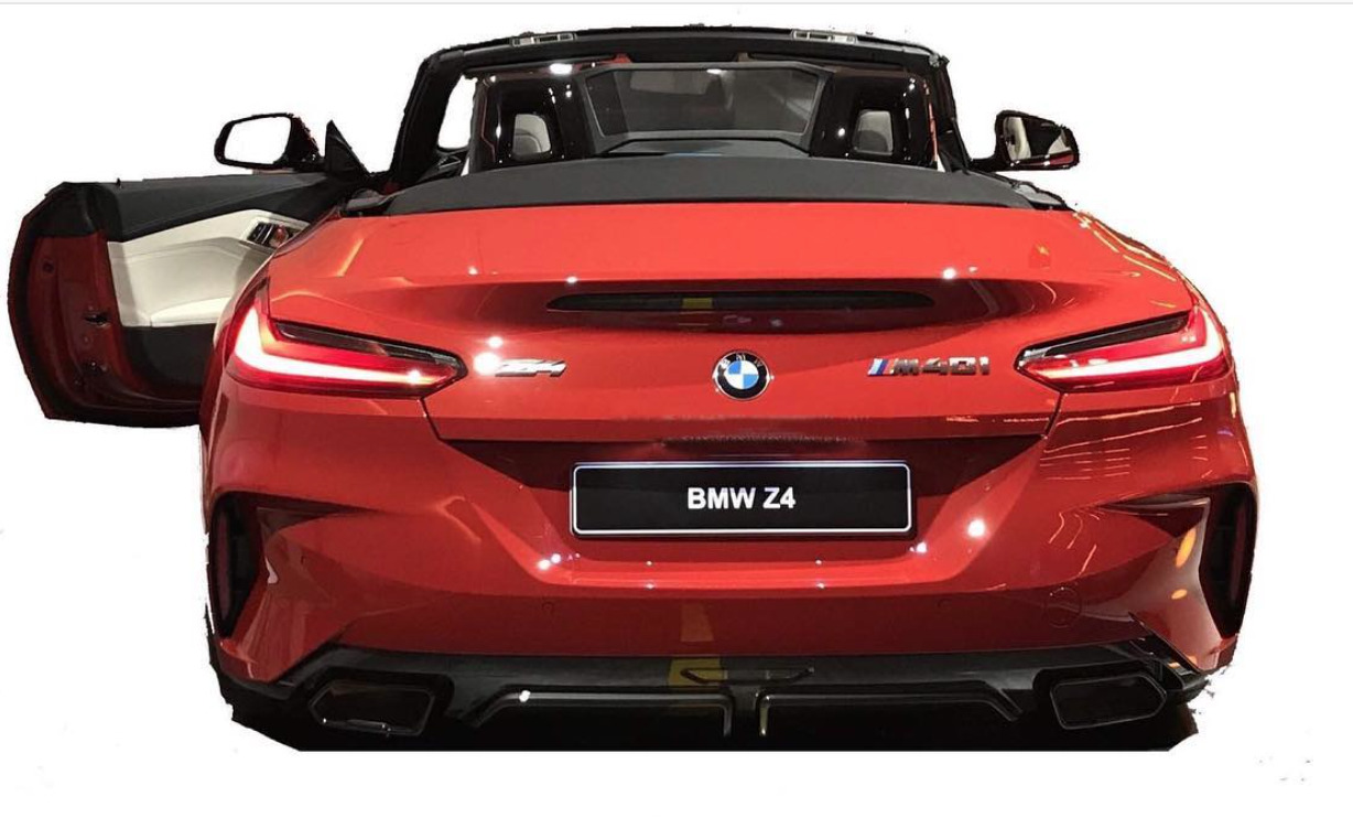 Am Heck trägt der gezeigte BMW Z4 M40i eine aggressive Schürze mit vertikalen Luftauslässen an den Seiten, einem Diffusor-Element in der Mitte und zwei trapezförmigen Endrohren. In die Kofferraum-Haube ist ein Hexkspoiler integriert, der gleichzeitig das dritte Bremslicht beherbergt. Die sehr flachen Rückleuchten betonen die Breite des Fahrzeugs und haben eine klare L-Form, die den Z4 auch bei Nacht auf den ersten Blick als BMW erkennbar macht.