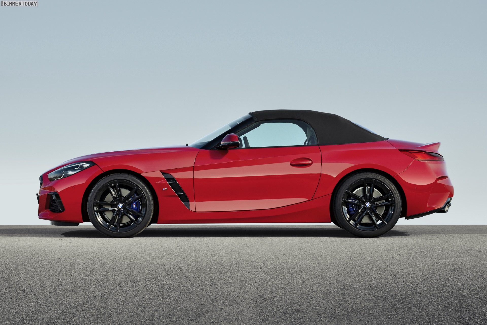 Viele Fotos zum neuen BMW Z4 Roadster G29 sind bereits seit Tagen bekannt, im Kontext der Weltpremiere hat BMW aber noch einige weitere Fotos bereitgestellt. Zu sehen ist ein BMW Z4 M40i in Melbourne Rot und mit vielen schwarzen Design-Details, die zur Shadow Line mit erweiterten Umfängen gehören. Noch spannender ist aber, dass wir erstmals das Stoffverdeck des neuen BMW Z4 G29 zu sehen bekommen und so auch einen ersten Eindruck vom Look des Roadster mit geschlossenem Dach erhalten.