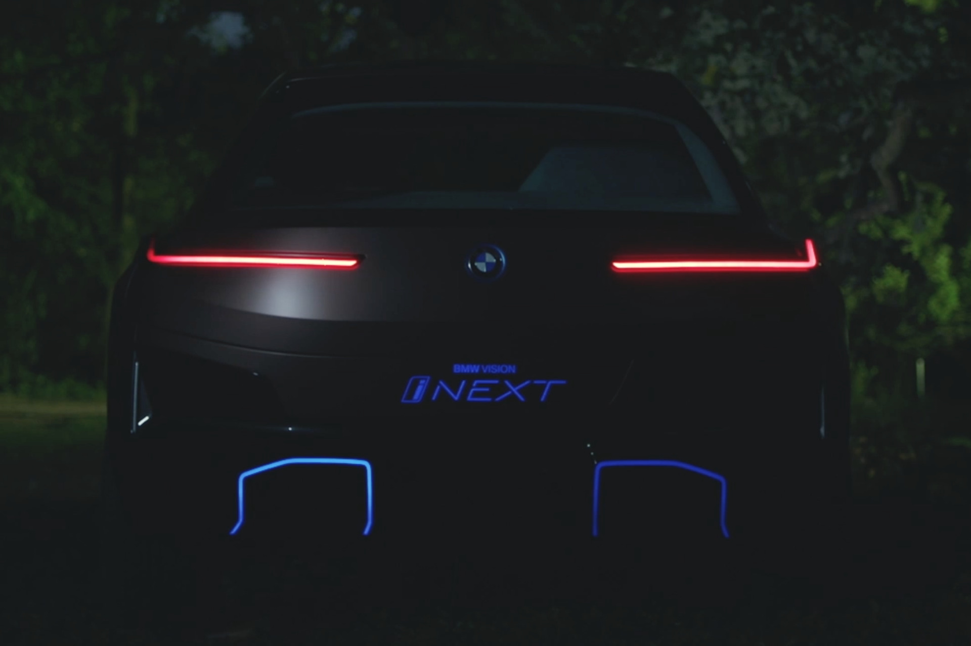 Auch das Heck ist von extrem flachen Rückleuchten geprägt, die eine L-Form aufweisen und so für eine BMW-typische Nachtoptik sorgen. In die Heckschürze sind blaue Diffusor-Elemente integriert, die an die Stelle der Endrohre von konventionell angetriebenen Fahrzeugen treten und damit nochmals deutlich auf den Elektroantrieb des Fahrzeugs hinweisen.