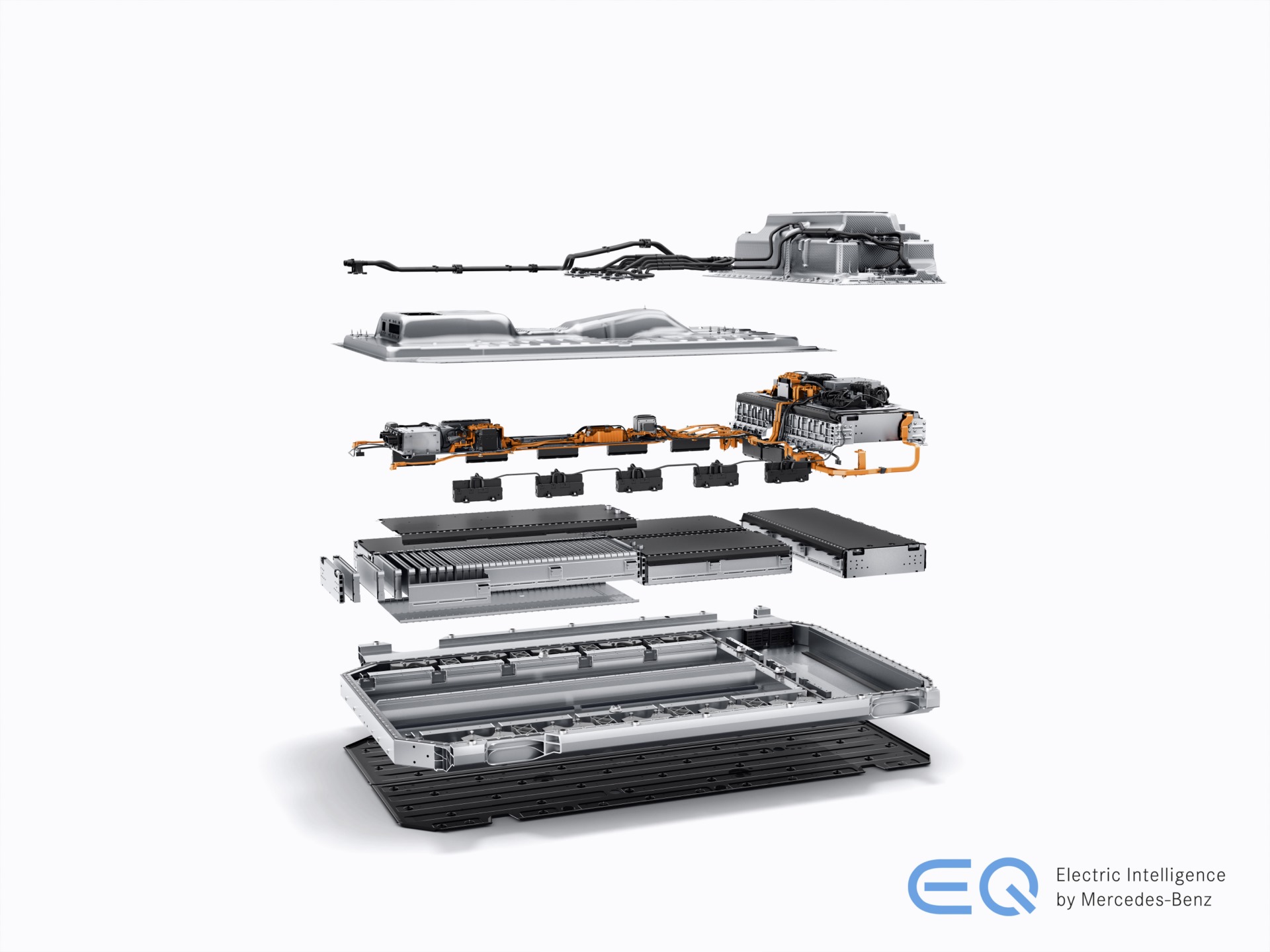 Der 650 Kilogramm schwere Lithium-Ionen-Akku im Boden des Mercedes EQC bietet eine Kapazität von 80 kWh. Unter den praxisfernen Bedingungen des nicht mehr gültigen NEFZ soll er für eine Reichweite von über 450 Kilometern sorgen. Dank wassergekühltem Onboard-Lader kann der Mercedes EQC mit bis zu 110 kW geladen werden, wenn eine entsprechende Gleichstrom-Ladestation zur Verfügung steht. Hier soll der Akku innerhalb von 40 Minuten von 10 auf 80 Prozent geladen werden können. Im Alltag mit Steckdose oder Wallbox zu Hause fällt die Ladezeit naturgemäß erheblich länger aus.