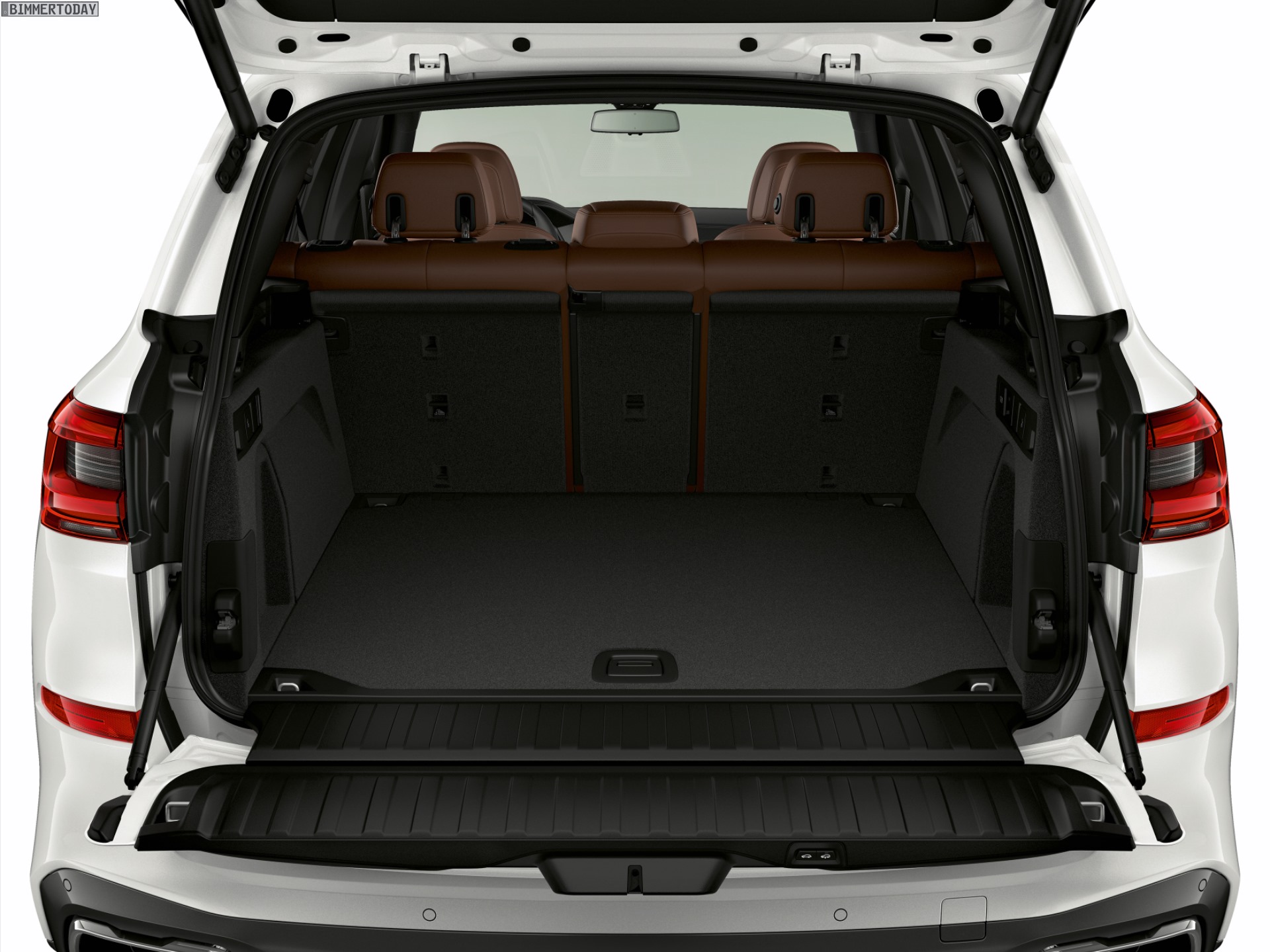 Der im Fahrzeug-Boden platzierte Lithium-Ionen-Akku reduziert das Kofferraum-Volumen des BMW X5 xDrive45e im Vergleich zu den konventionell angetriebenen Varianten um bis zu 150 Liter. Mit 500 bis 1.716 Liter steht allerdings weiterhin ein großer Gepäckraum zur Verfügung, der im Alltag nur selten voll ausgeschöpft werden dürfte.