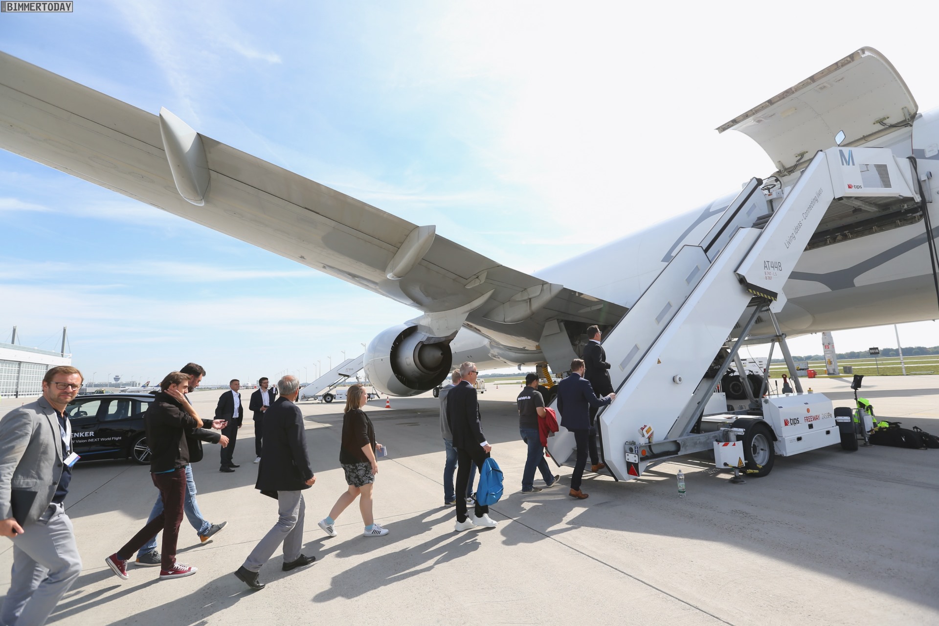 Für die Weltpremiere des BMW iNext haben sich BMW und Lufthansa Cargo einen ganz besonderen Ort ausgesucht: Der Bauch einer Boeing 777F Frachtmaschine wurde zur Bühne für den BMW iNext, der so im gleichen Raum um die Welt reisen kann. Am Sonntag begann der BMW iNext World-Flight in der Münchner Heimat des Vision Cars, inzwischen ist der Raum für die Weltpremiere längst in Nordamerika angekommen. Den Abschluss bildet ein Zwischenstopp in China, bevor die Studie wieder zurück nach München geflogen wird.