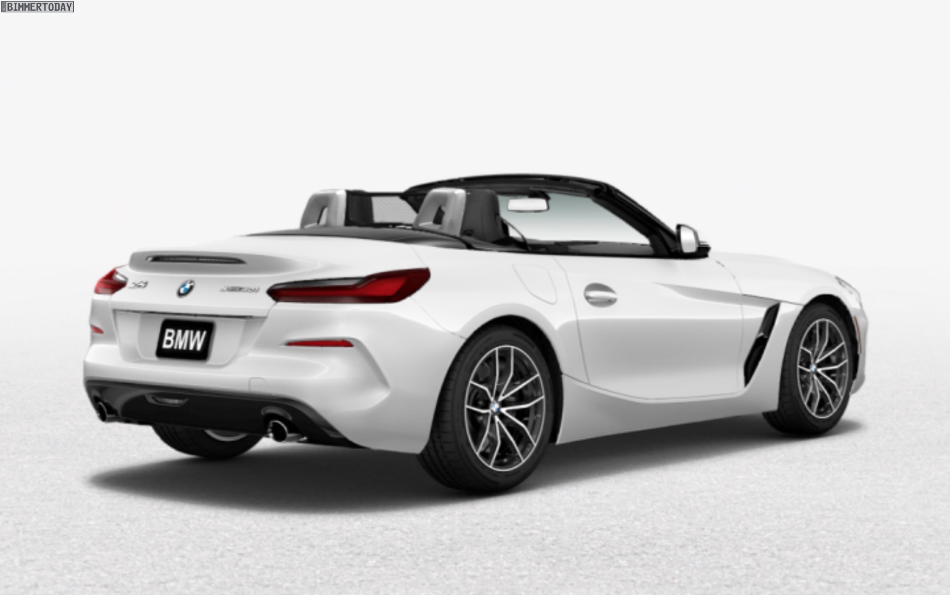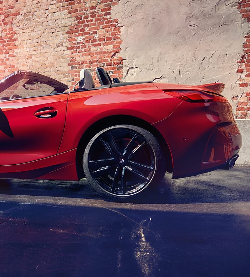 Die Farbpalette für den BMW Z4 G29 umfasst außerdem Alpinweiß, Mediterran Blau, Mineralweiß Metallic, Glaciersilber und Saphirschwarz. Das kräftige San Francisco Rot sehen wir auch auf Wallpaper-Motiven, die allerdings erneut das vorläufige Topmodell Z4 M40i zeigen. Beim Blick auf den BMW Z4 sDrive30i fällt sofort auf, dass auch der Vierzylinder-G29 mit jeweils einem Endrohr auf der linken und rechten Seite auf den Markt kommt. Während die Endrohre beim M40i trapezförmig ausgeführt sind, setzen die Vierzylinder auf runde Endrohrblenden.