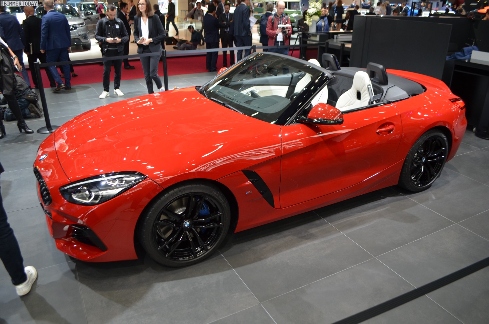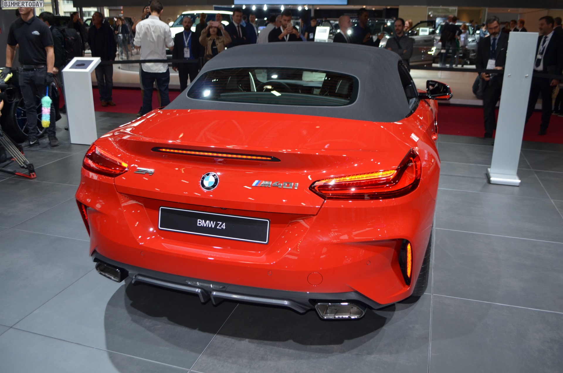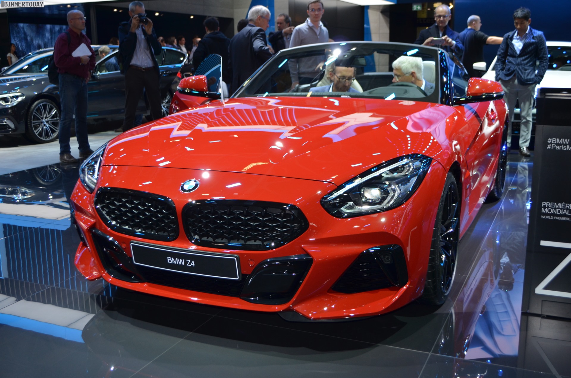 Auch der neue BMW Z4 M40i G29 feiert auf dem Autosalon Paris 2018 ein Debüt, denn in Europa war die neue Generation des Roadsters bisher nirgends offiziell ungetarnt zu sehen. Präsentiert wird der offene Sportwagen in San Francisco Rot und mit den schwarzen Akzenten der Shadow Line mit erweiterten Umfängen. Letztere machen den BMW Z4 M40i zu einem der wenigen M Performance Automobile, bei dem sich die Elemente in Cerium Grey ab Werk auch in einer anderen Farbe bestellen lassen.
