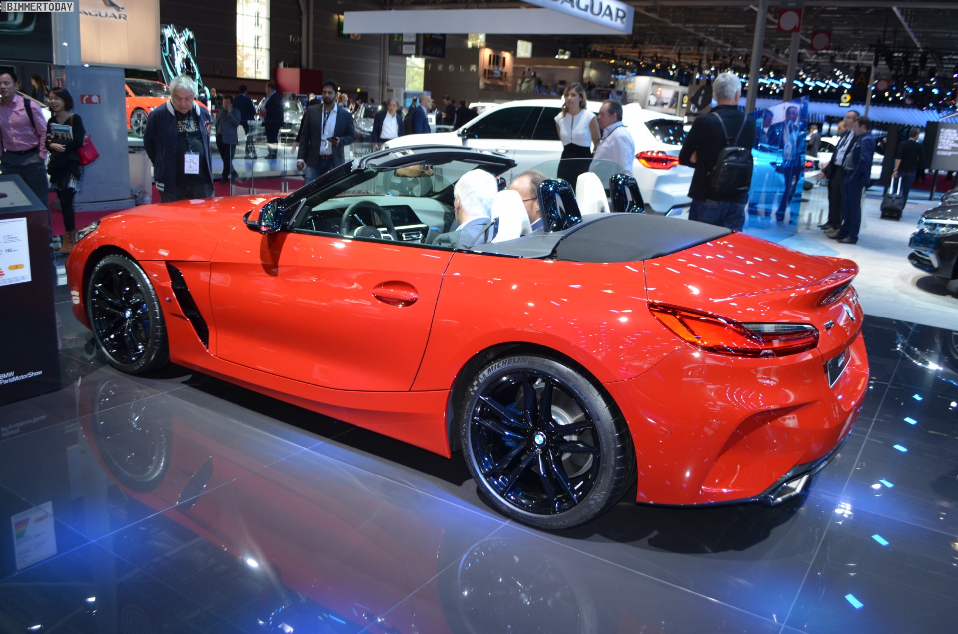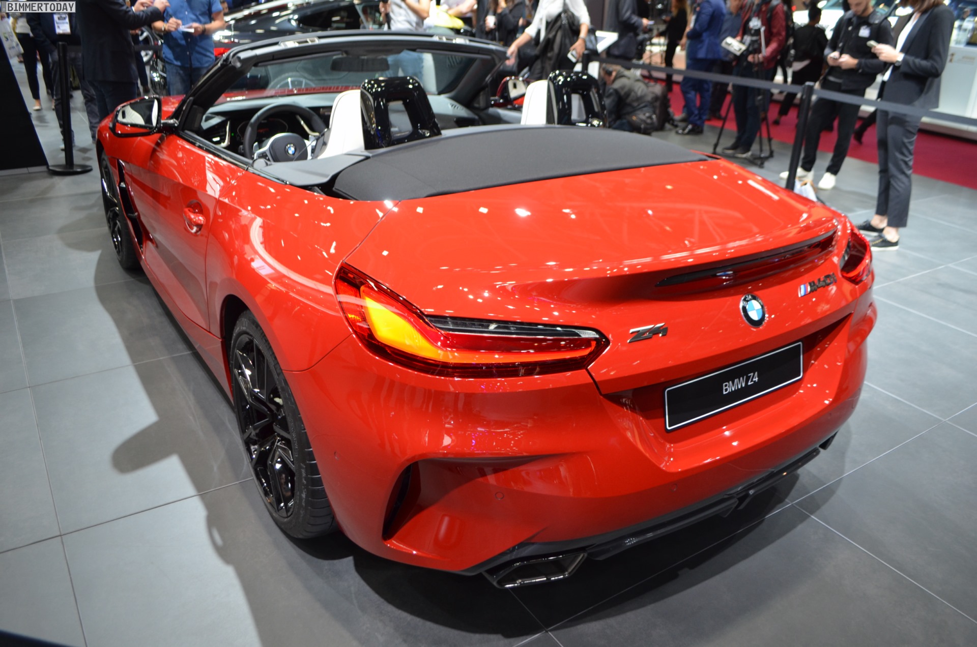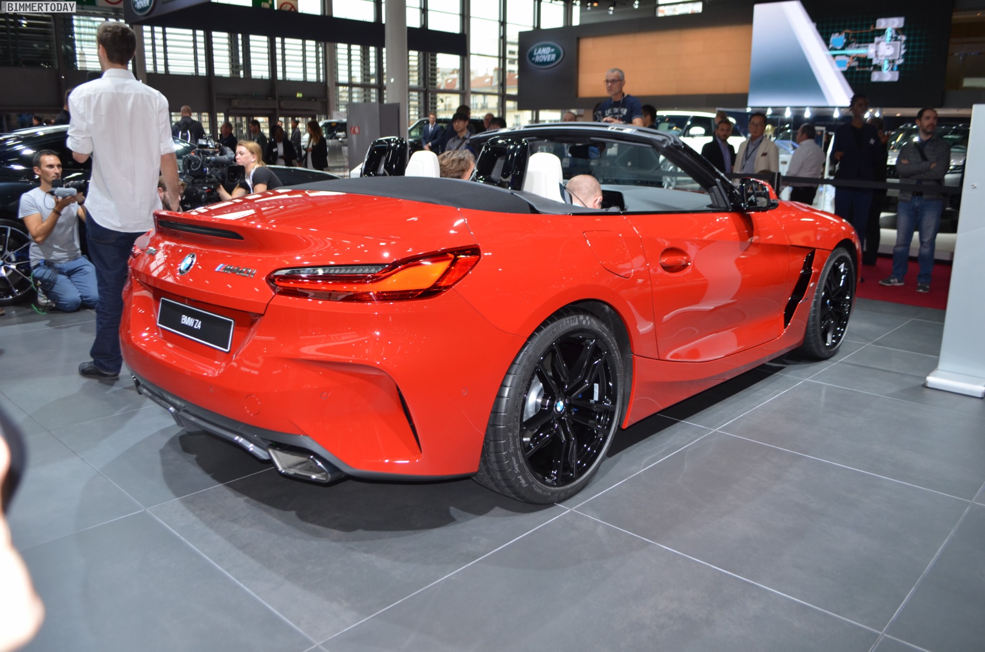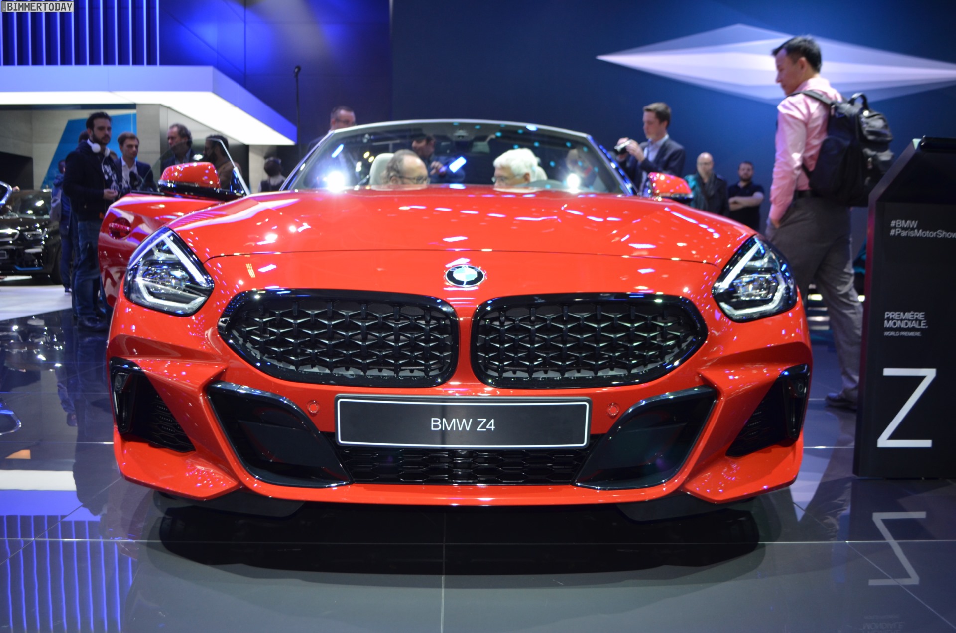 Auch der neue BMW Z4 M40i G29 feiert auf dem Autosalon Paris 2018 ein Debüt, denn in Europa war die neue Generation des Roadsters bisher nirgends offiziell ungetarnt zu sehen. Präsentiert wird der offene Sportwagen in San Francisco Rot und mit den schwarzen Akzenten der Shadow Line mit erweiterten Umfängen. Letztere machen den BMW Z4 M40i zu einem der wenigen M Performance Automobile, bei dem sich die Elemente in Cerium Grey ab Werk auch in einer anderen Farbe bestellen lassen.