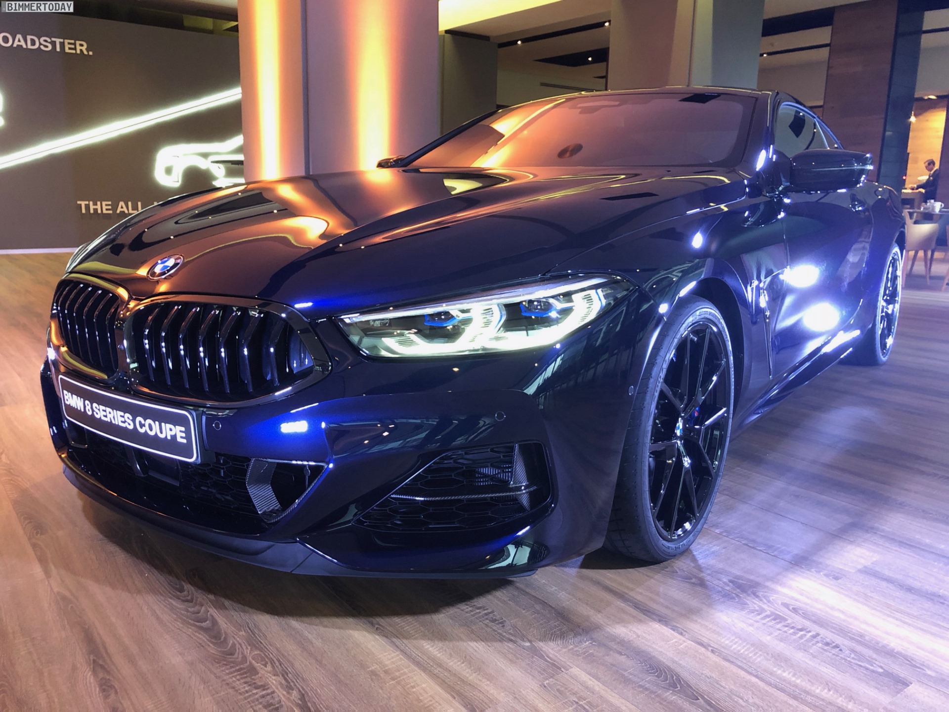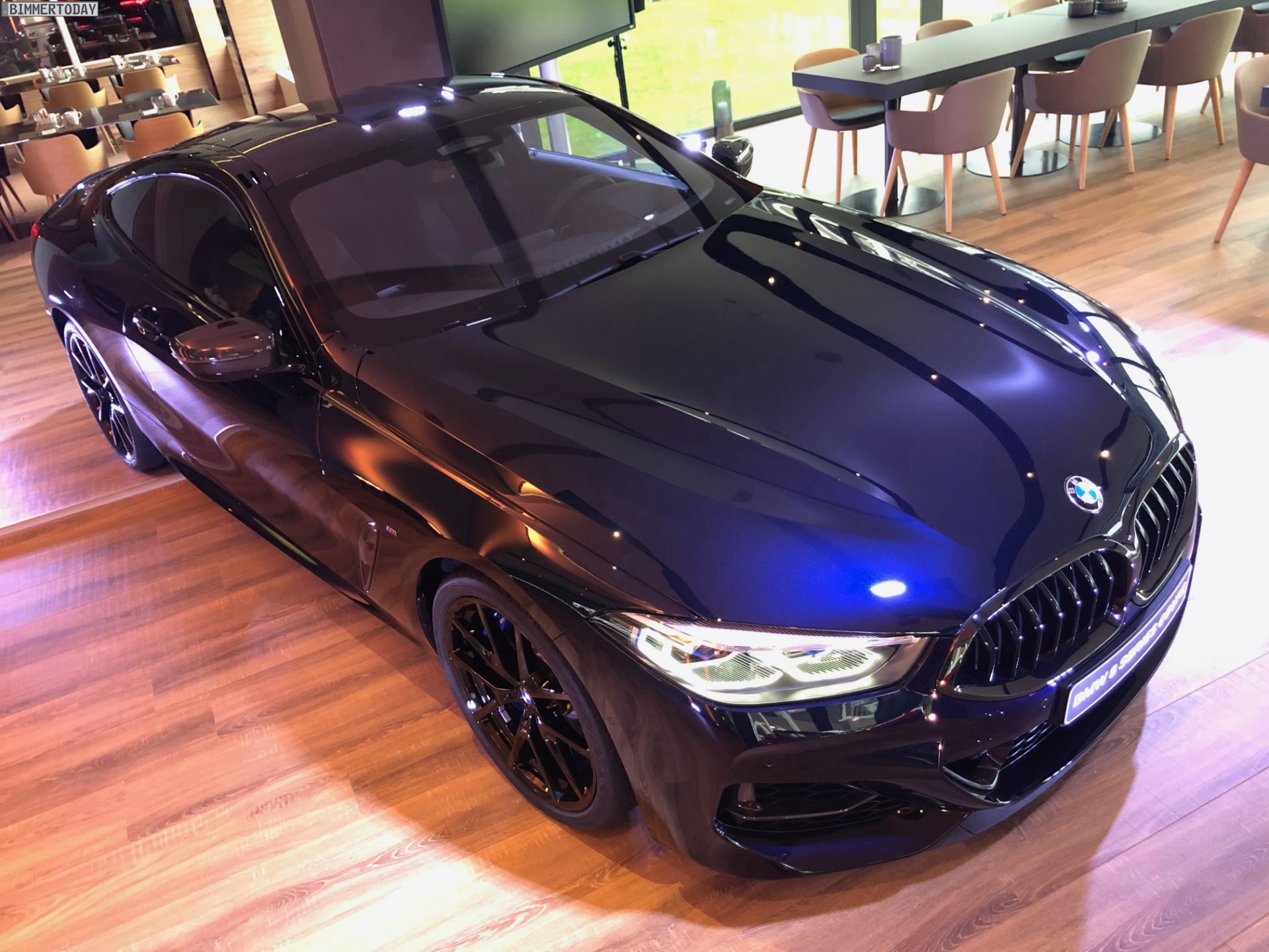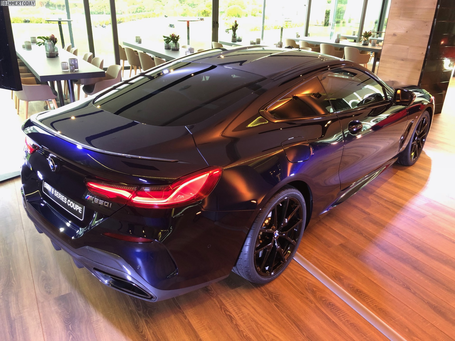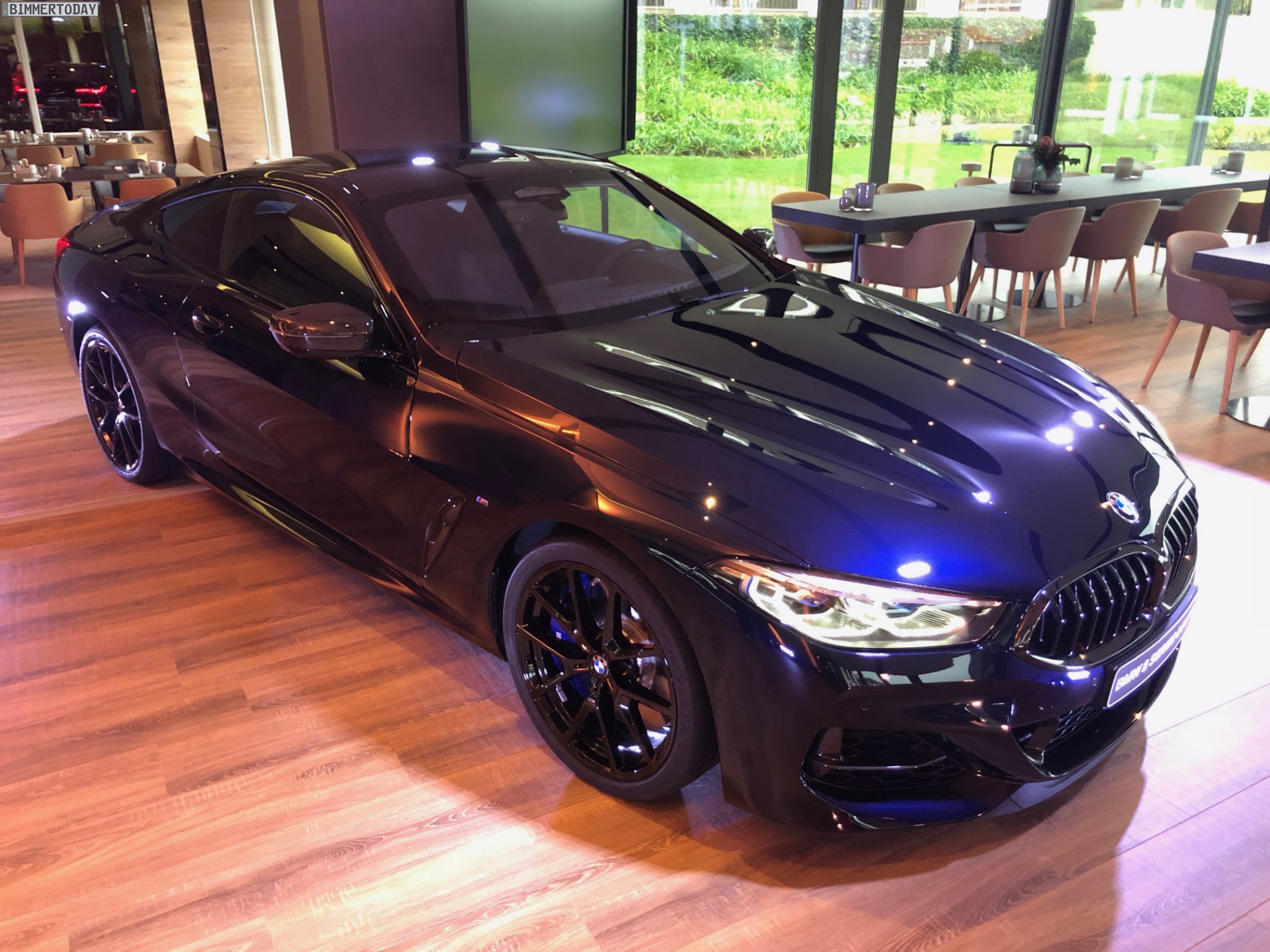 Schwarze Felgen runden den rundum dunklen Auftritt des BMW M850i xDrive Coupé ab. Mit seinen tiefen Blautönen ist Carbonschwarz eine spannende Alternative für alle, denen der in Paris ausgestellte und ebenfalls komplett in Schwarz gehaltene BMW M850i in Saphirschwarz etwas zu gewöhnlich war.