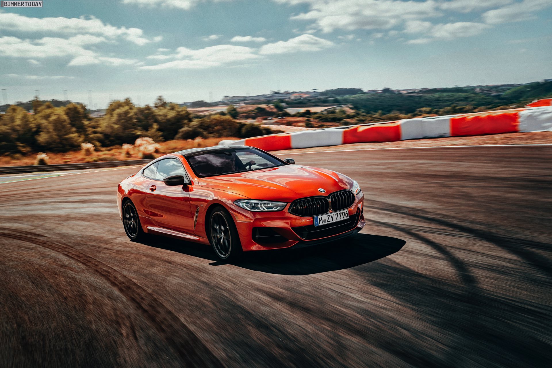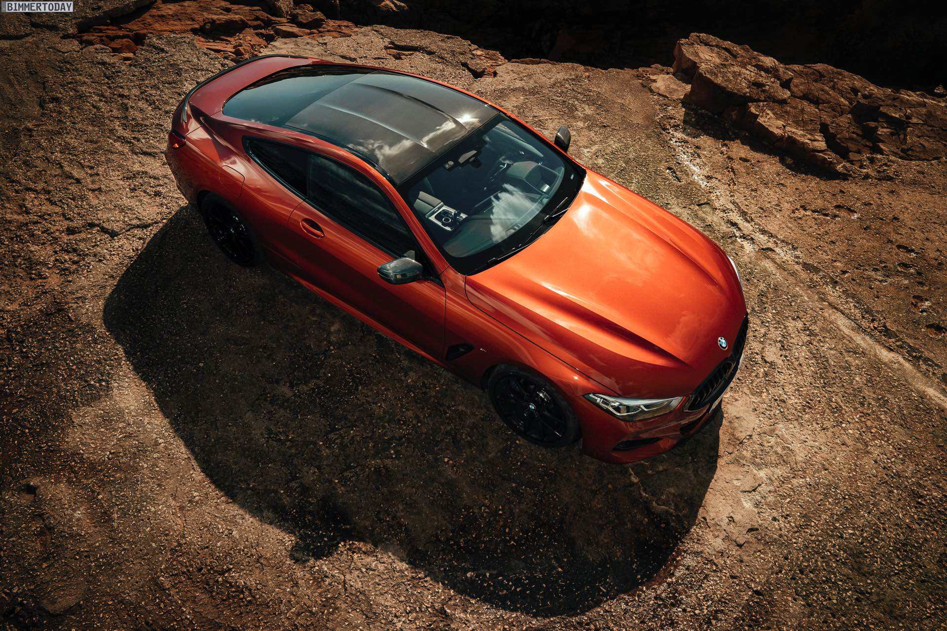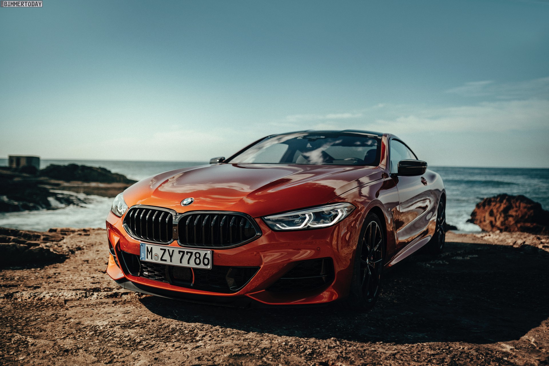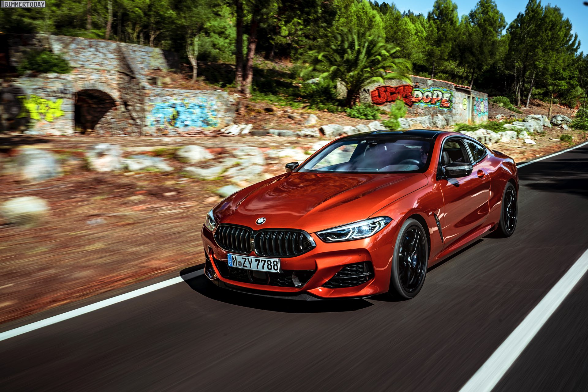 Auf den hier gezeigten Fotos sehen wir das vorläufige Topmodell BMW M850i xDrive mit Lackierung in Sunset Orange und vielen dunklen Akzenten. Letztere kommen mit der BMW Individual Hochglanz Shadow Line mit erweiterten Umfängen, dem M Carbon Exterieurpaket und dem M Carbondach. Allein die beiden letztgenannten Optionen erhöhen den Listenpreis um 6.750 Euro, betonen aber auch die Sportlichkeit des Fahrzeugs enorm.