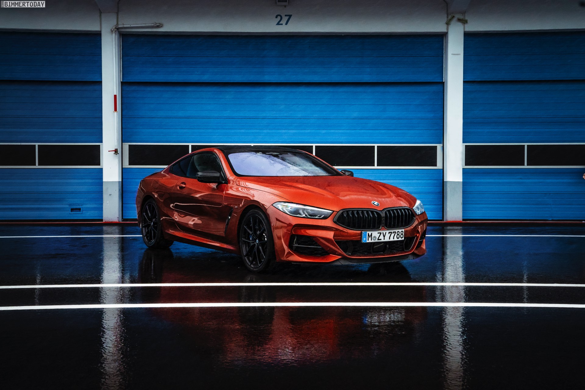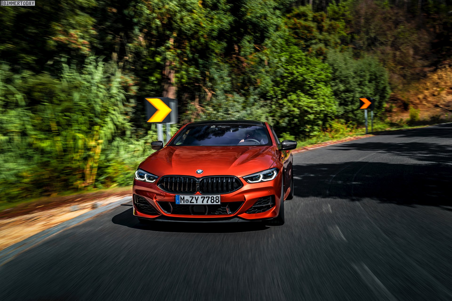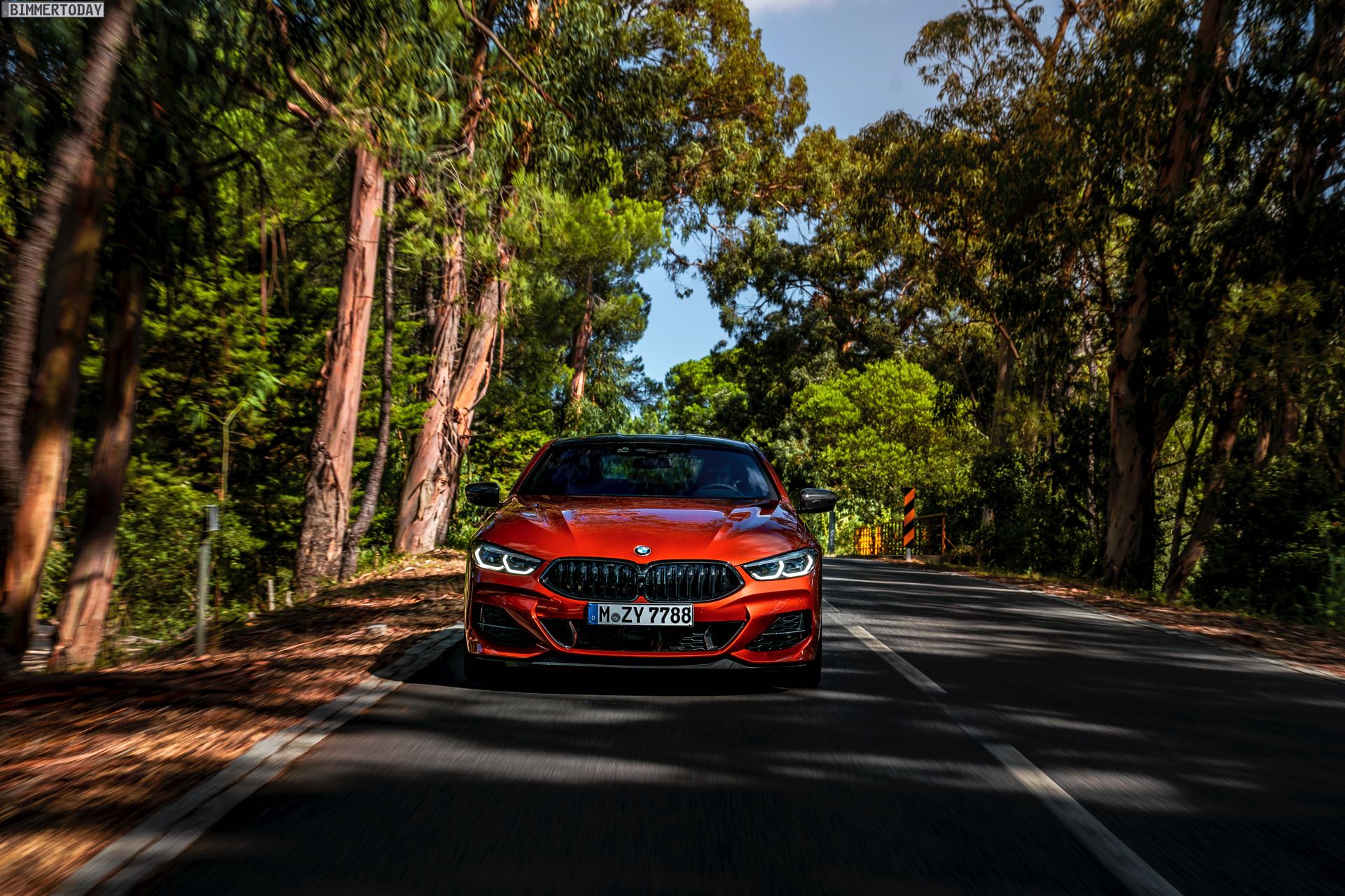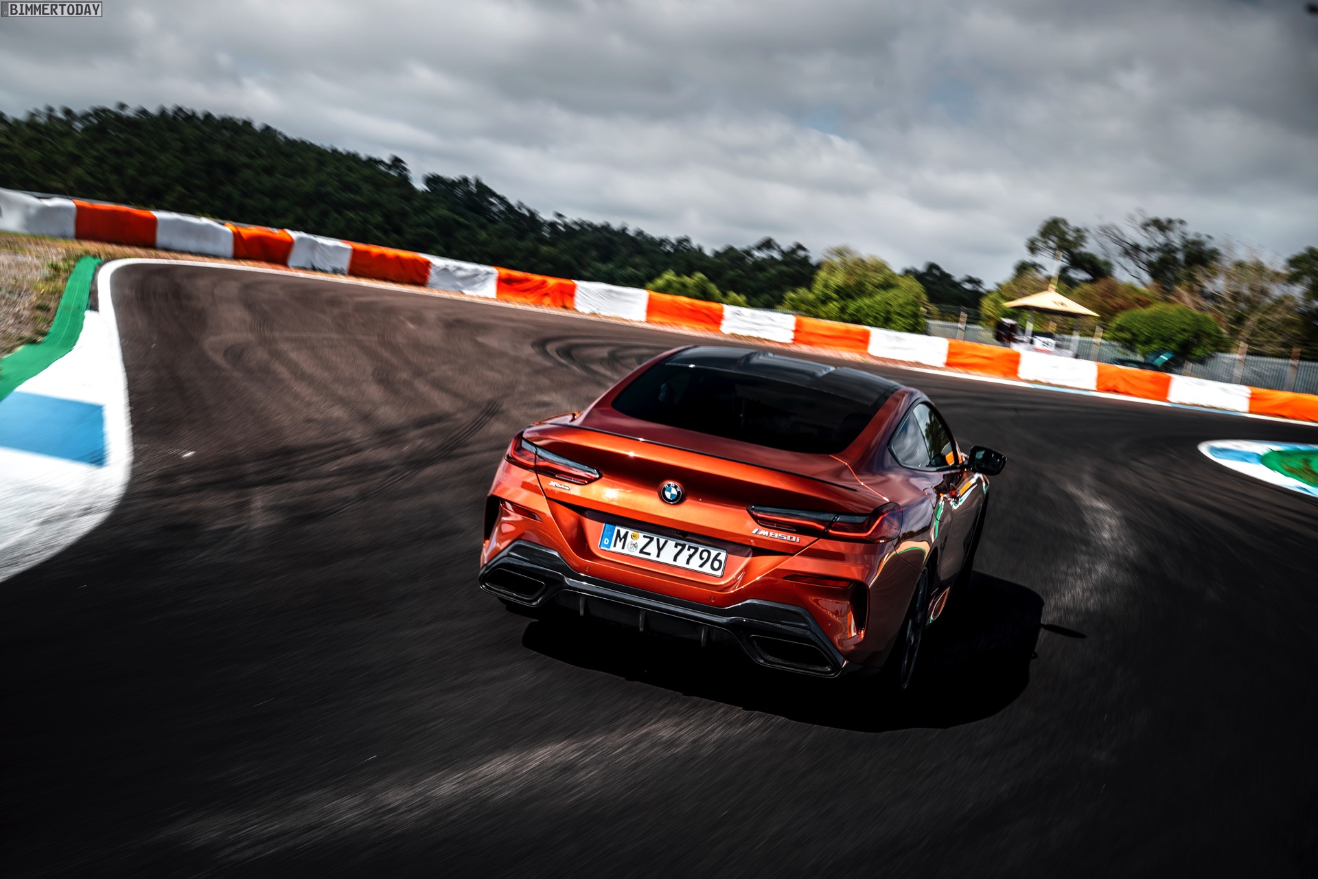 Auf den hier gezeigten Fotos sehen wir das vorläufige Topmodell BMW M850i xDrive mit Lackierung in Sunset Orange und vielen dunklen Akzenten. Letztere kommen mit der BMW Individual Hochglanz Shadow Line mit erweiterten Umfängen, dem M Carbon Exterieurpaket und dem M Carbondach. Allein die beiden letztgenannten Optionen erhöhen den Listenpreis um 6.750 Euro, betonen aber auch die Sportlichkeit des Fahrzeugs enorm.