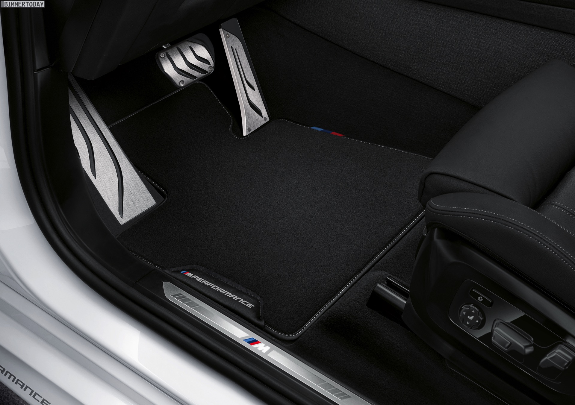 Weitere dunkle Akzente lassen sich mit den mattschwarzen Seitenschweller-Folien, schwarzen Nieren und natürlich den bereits ab Werk erhältlichen Umfängen der Shadow Line setzen. Auch schwarze BMW M Performance Felgen mit bis zu 22 Zoll Durchmesser stehen zur Wahl, dahinter wird auf Wunsch eine M Performance Sportbremse mit rot lackierten 4-Kolben-Festsätteln und 19-Zoll-Bremsscheiben an der Vorderachse verbaut.