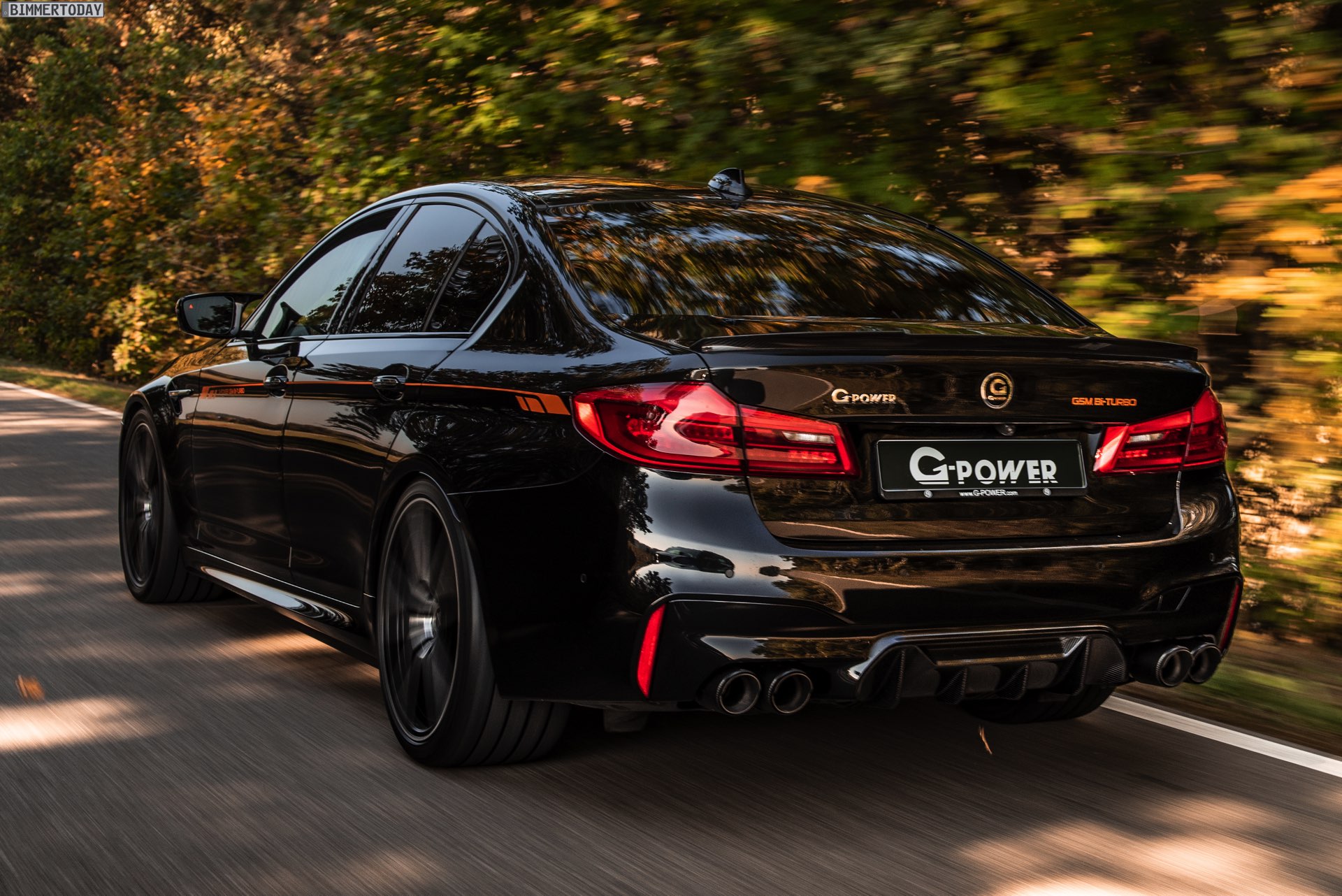 Selbstverständlich ist, dass sich G-Power das Tuning des BMW M5 F90 auch bezahlen lässt: 5.772 Euro stehen für die Hardware-Modifikationen an den Turboladern auf der Rechnung, die Downpipes mit Katalysatoren kosten 4.938 Euro und die Titan-Abgasanlage erhöht den Preis um 8.240 Euro. Hinzu kommen 5.415 Euro für die Power-Software und auf Wunsch weitere 795 Euro für die Vmax-Aufhebung. Macht unterm Strich etwas mehr als 25.000 Euro – und wenn dann noch die hier gezeigten 21-Zoll-Schmiedefelgen vom Typ Hurricane RR mit passender Bereifung verbaut werden sollen, dürfen weitere 8.950 Euro auch nicht schmerzen.