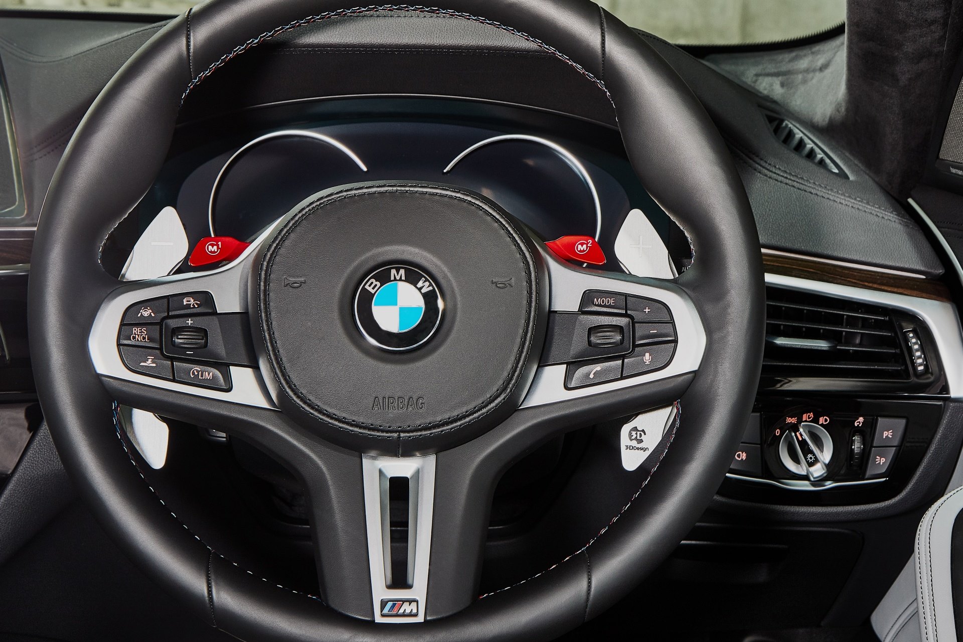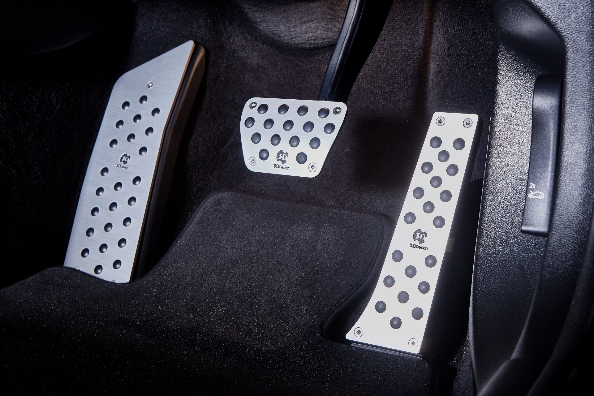 Im Innenraum konzentriert sich 3D Design auf die für das Fahren relevanten Bedienelemente. Neben einer Aluminium-Pedalerie mit Gumminoppen sind dabei vor allem die alternativen Schaltwippen interessant, denn diese fallen deutlich länger als beim Serien-M5 aus und erleichtern manuelle Gangwechsel bei großen Lenkwinkeln.