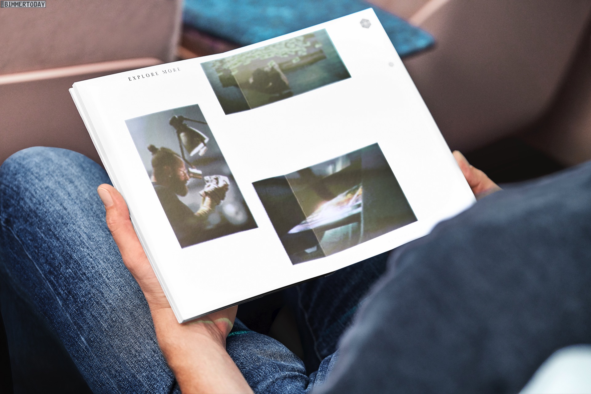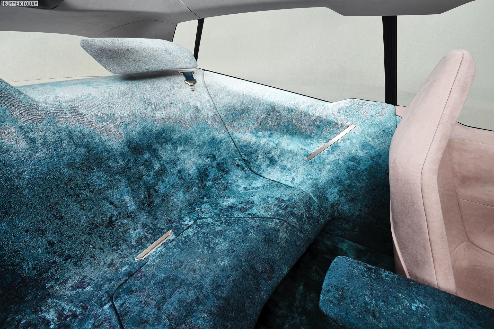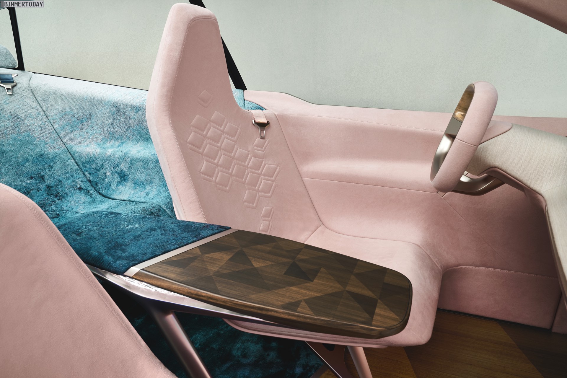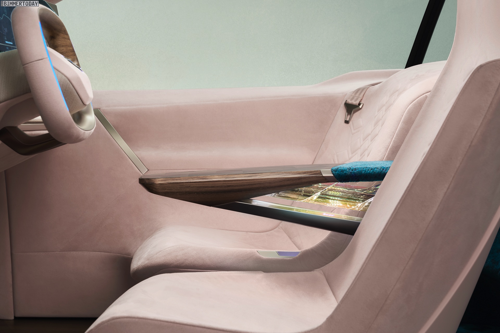 Das reduzierte Design ist allerdings keineswegs mit wenig Technik ausgestattet: Shy-Tech nennt BMW das Konzept, High-Tech unauffällig zu verpacken und so praktisch unsichtbar zu machen. Sowohl die Holz-Oberfläche der Mittelkonsole als auch einige Bereiche des Stoffbezugs auf der Rückbank sind berührungsempfindlich und eignen sich genau wie heutige Touchpads zur Steuerung des Infotainment-Systems. Ergänzend dazu gibt es natürlich auch Sprach- und Gestensteuerung für alle Funktionen, die völlig ohne ein auf den ersten Blick sichtbares Eingabegerät auskommen.