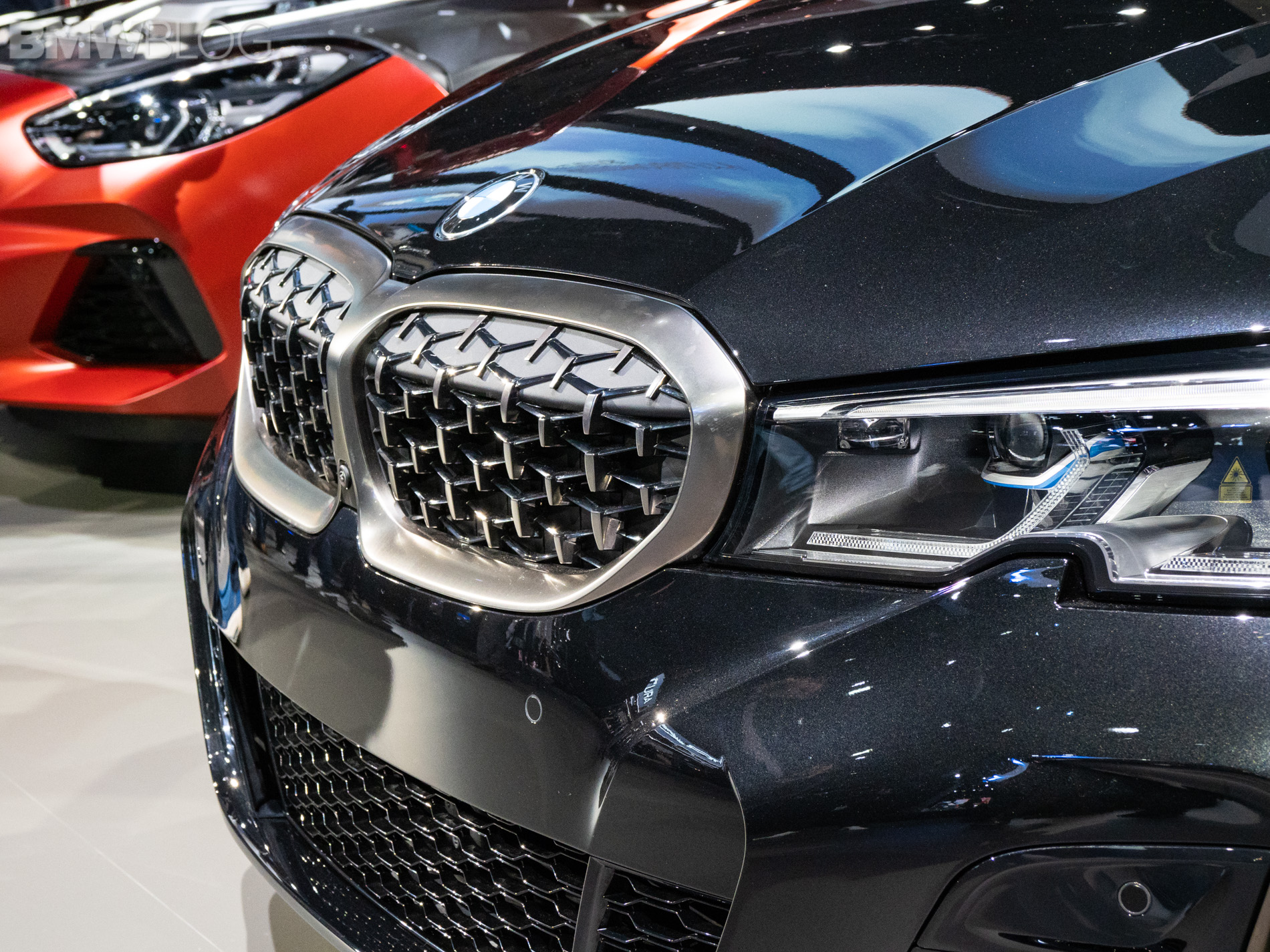 Laut Werksangabe benötigt der BMW M340i xDrive lediglich 4,4 Sekunden für den Sprint von 0 auf 100 km/h, dabei ist die Traktion des Allradantriebs selbstverständlich kein Nachteil. Wie die Limousine dabei aussieht, zeigen die Fotos von der L.A. Auto Show 2018 – wobei dank der schwarzen Lackierung auch die Akzente in Cerium Grey besonders gut zur Geltung kommen. Einen zweiten Blick verdient auch die spezielle Niere, die mit einem M340i-spezifischen Muster statt klassischen Streben gestaltet ist: