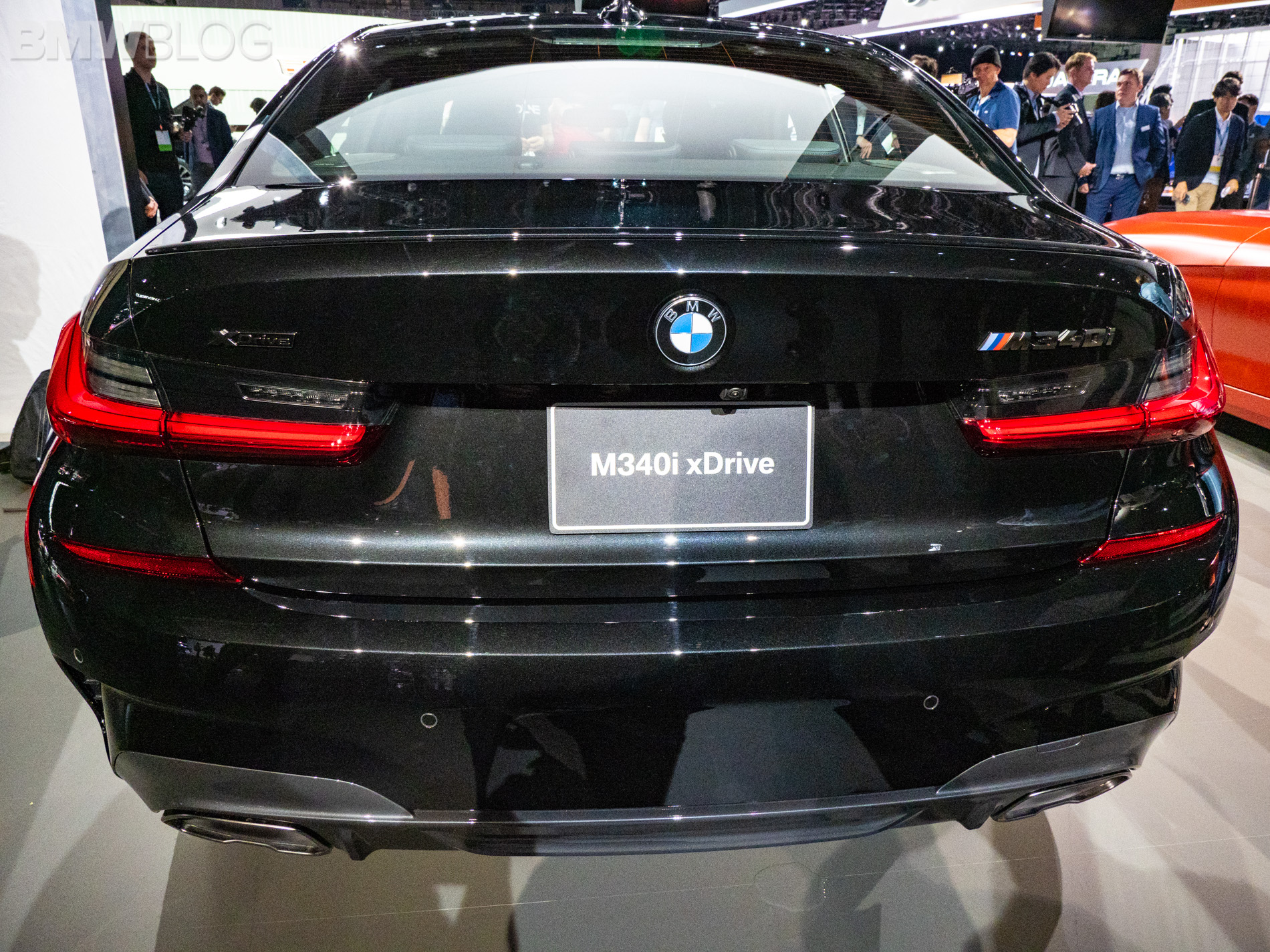 Ganz in Schwarz glänzt der neue BMW M340i G20 bei seiner Weltpremiere auf der L.A. Auto Show 2018. Das vorläufige Topmodell der neuen 3er-Reihe gibt sein Debüt nicht zufällig in den USA, denn in Nordamerika ist der größte Teil des weltweiten Absatzes zu erwarten: Rund drei Viertel aller M340i werden voraussichtlich in den USA verkauft.