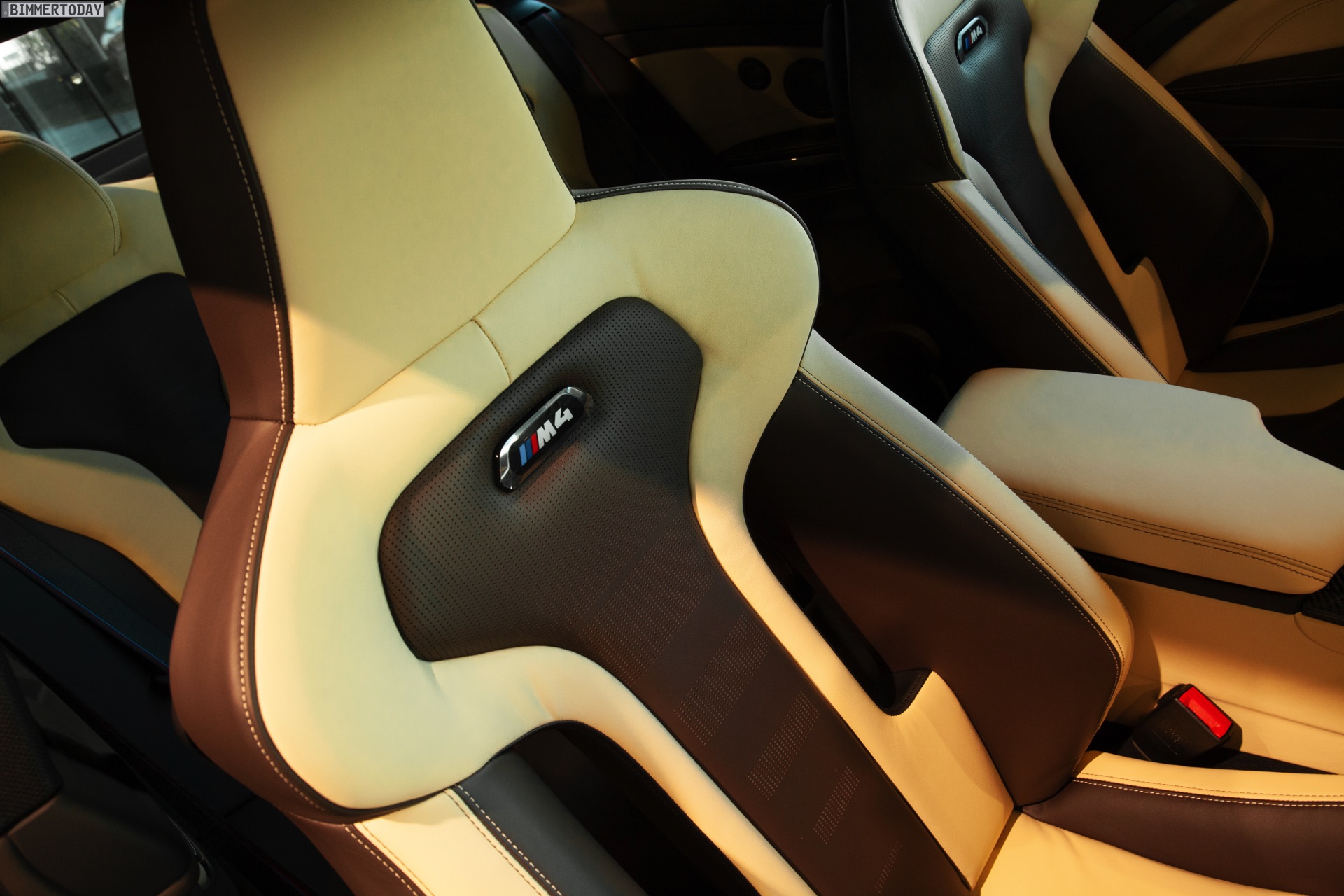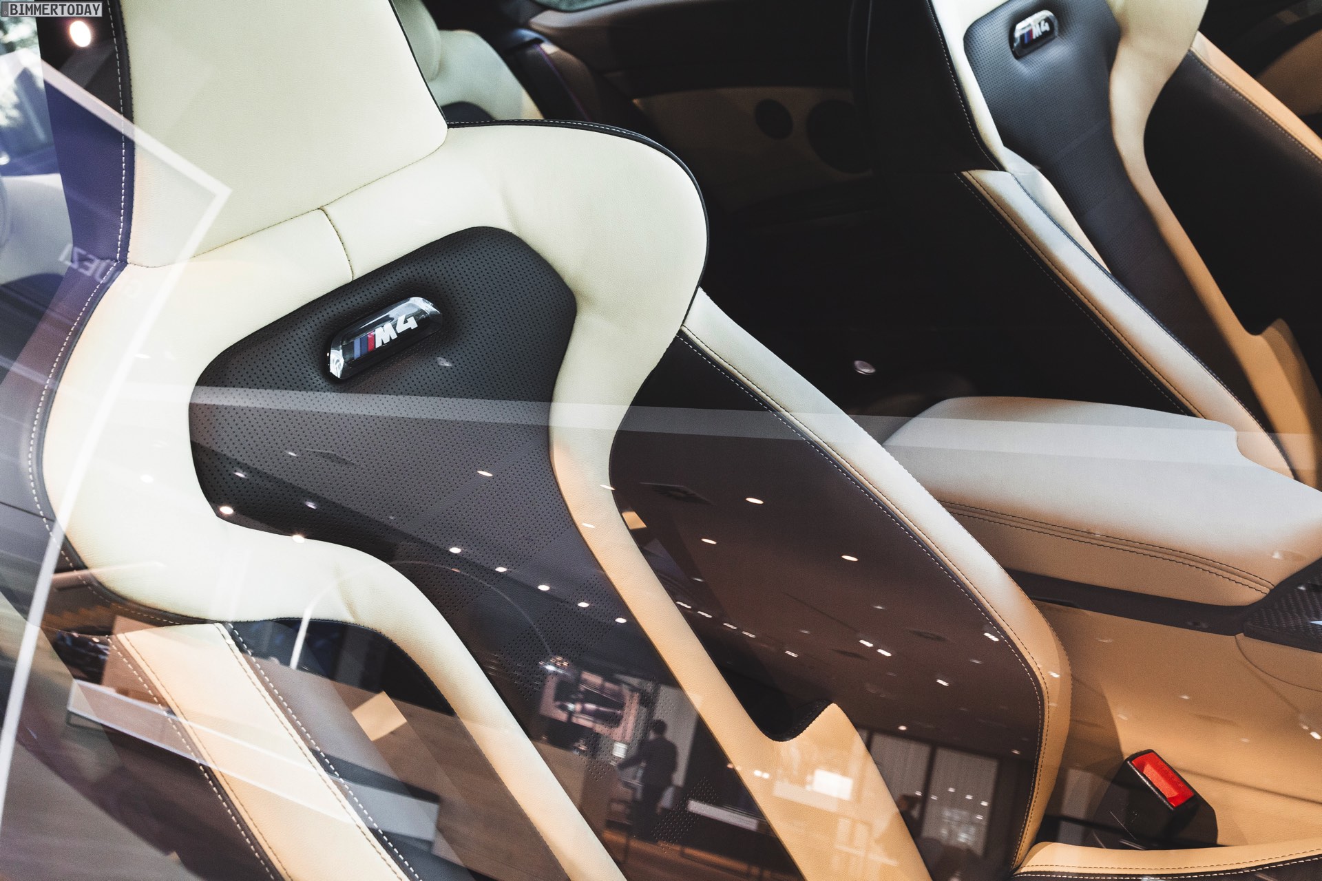 Doch der BMW M4 Competition im dortigen Showroom hat weit mehr zu bieten als die Individual-Lackierung in Stratusgrau Metallic, auch die Felgen und das Interieur verdienen mindestens einen zweiten Blick. In den Radhäusern stecken die M Performance Schmiederäder Y-Speiche 763 M in Frozen Gold matt, die schon dank ihrer Farbe auf jedem Auto interessierte Blicke anziehen. Die goldenen Felgen für BMW M2, M3 und M4 gehören seit über einem Jahr zum M Performance Tuning-Portfolio, sind dem einen oder anderen Kunden aber doch etwas zu extrovertiert – was ihre Exklusivität nur noch weiter steigert.
