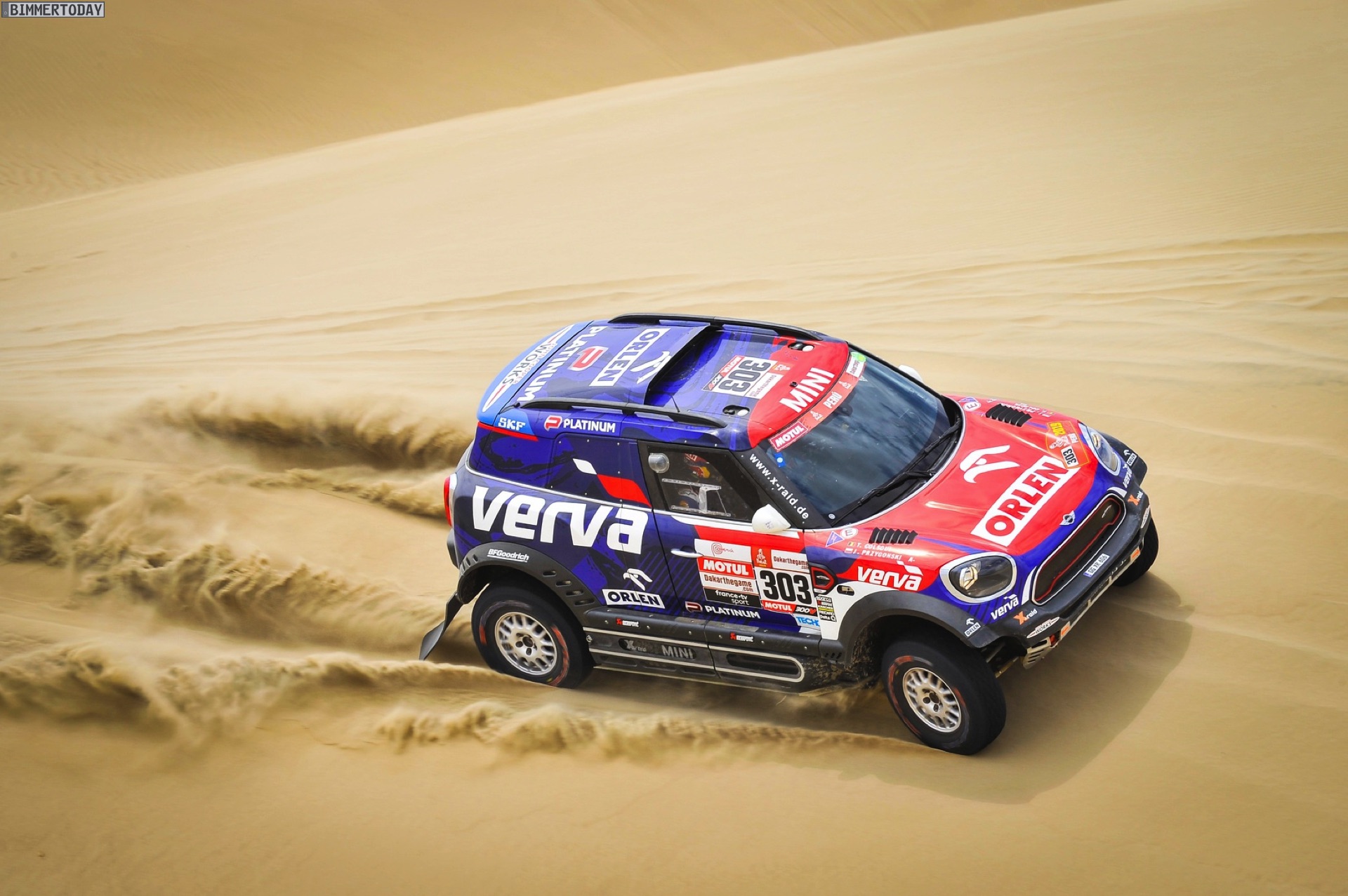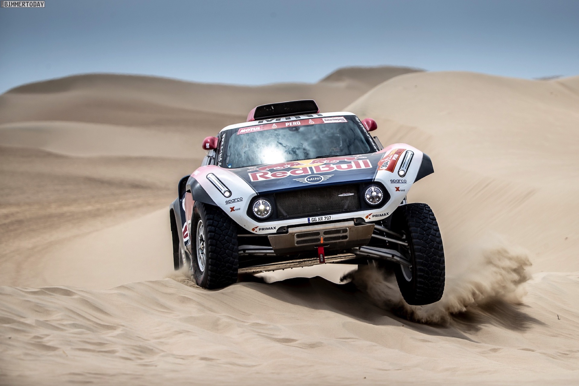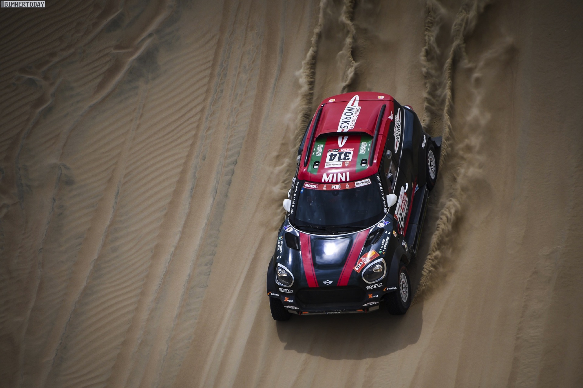 Cyril Despres: „Wir sind zufrieden mit dem MINI John Cooper Works Buggy und dem Setup, das wir gestern erarbeitet haben. Man kann so viele Test-Kilometer wie wir in Marokko abspulen, doch hier im Sand und in den Dünen von Peru ist alles anders, und man muss das Auto sehr gut abstimmen. Wir haben einen tollen Teamgeist, daher musste ich, als ich Stéphane in den Dünen stecken sah, ihm helfen, was wir selbstverständlich gemacht haben.“