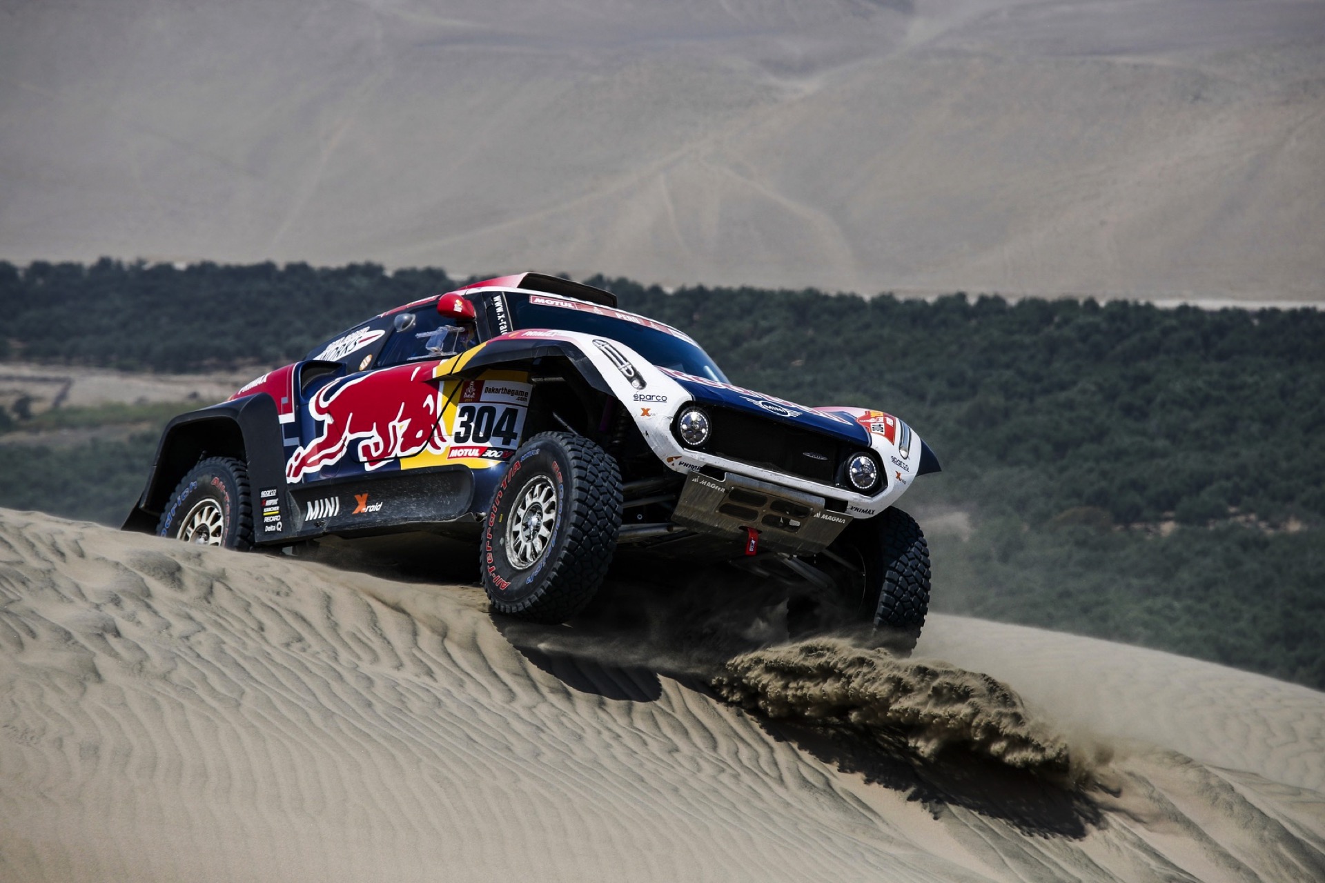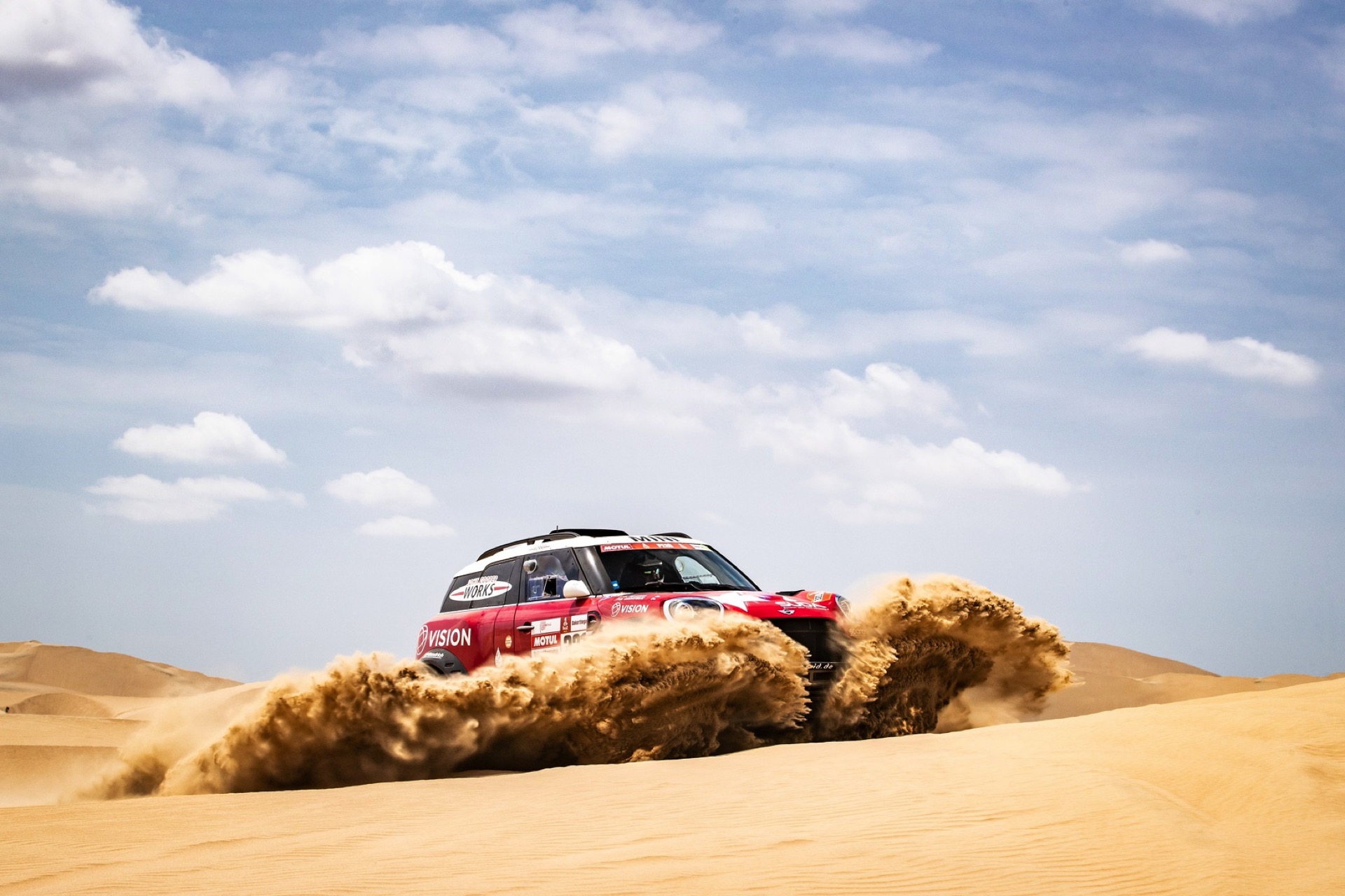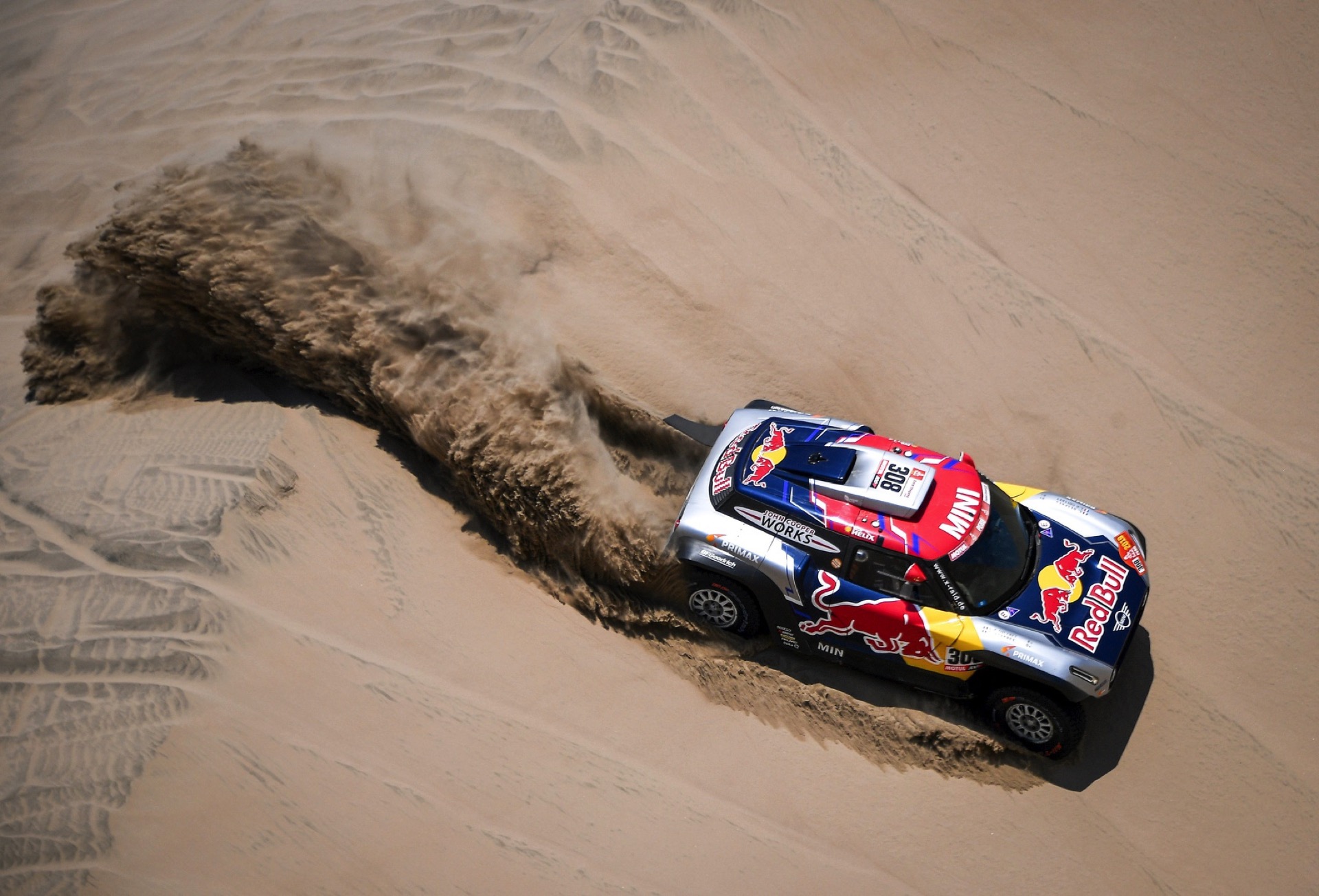 Cyril Despres: „Das war heute ganz sicher eine ziemliche Herausforderung zwischen den Sanddünen und den sandigen Tälern. Das Auto reagiert sehr gut auf die verschiedenen Situationen. Wir waren gut unterwegs, bis einmal bei einer Bergab-Passage der Reifen von der Felge gesprungen ist. Es ist nicht leicht, bei einem so weichen Untergrund das Rad zu wechseln. Wir mussten die letzten 40 Kilometer dann in einem Sandsturm absolvieren, und dabei habe ich gegen Ende meinen Rhythmus verloren.“