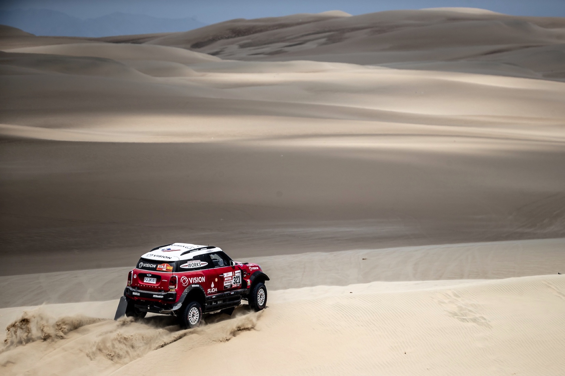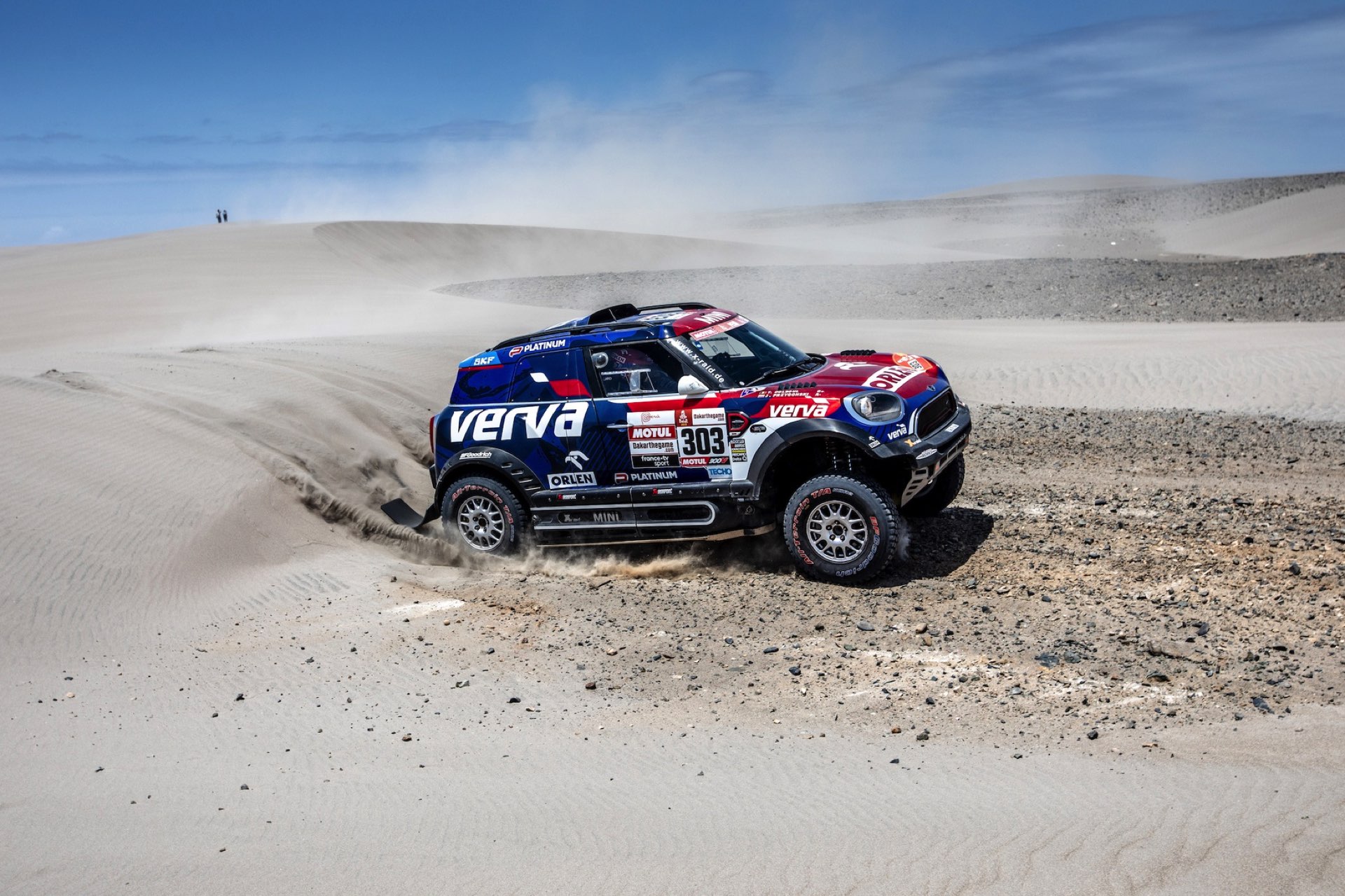Jakub Przygonski: „Wir sind weiter hinten gestartet und hatten viele Trucks vor uns. Es ist nicht so gut für uns, wenn diese die Piste zerstören. In den Dünen war der Sand unheimlich weich und wir mussten anhalten, um für eine bessere Traktion Luft aus den Reifen abzulassen. Das war eine gute Entscheidung, denn danach mussten wir nicht noch einmal anhalten und konnten bis ins Ziel attackieren.“