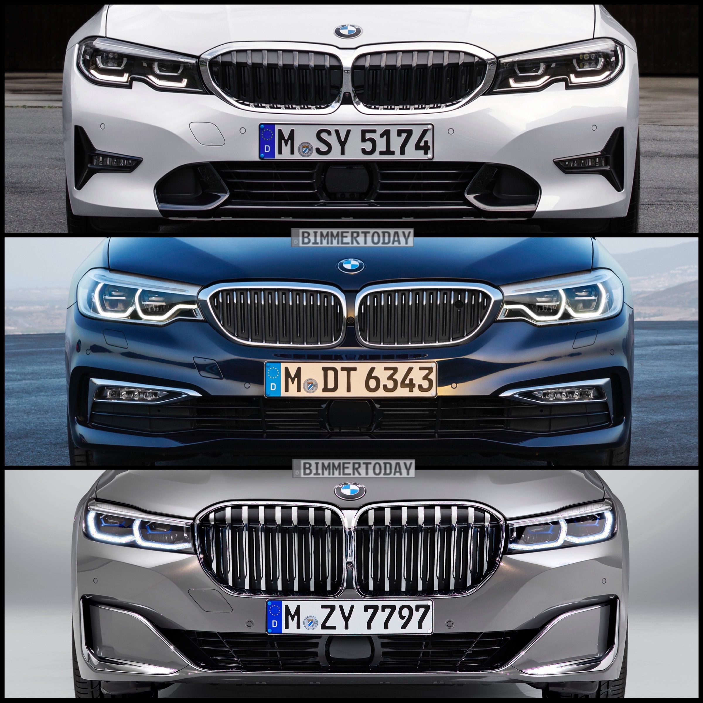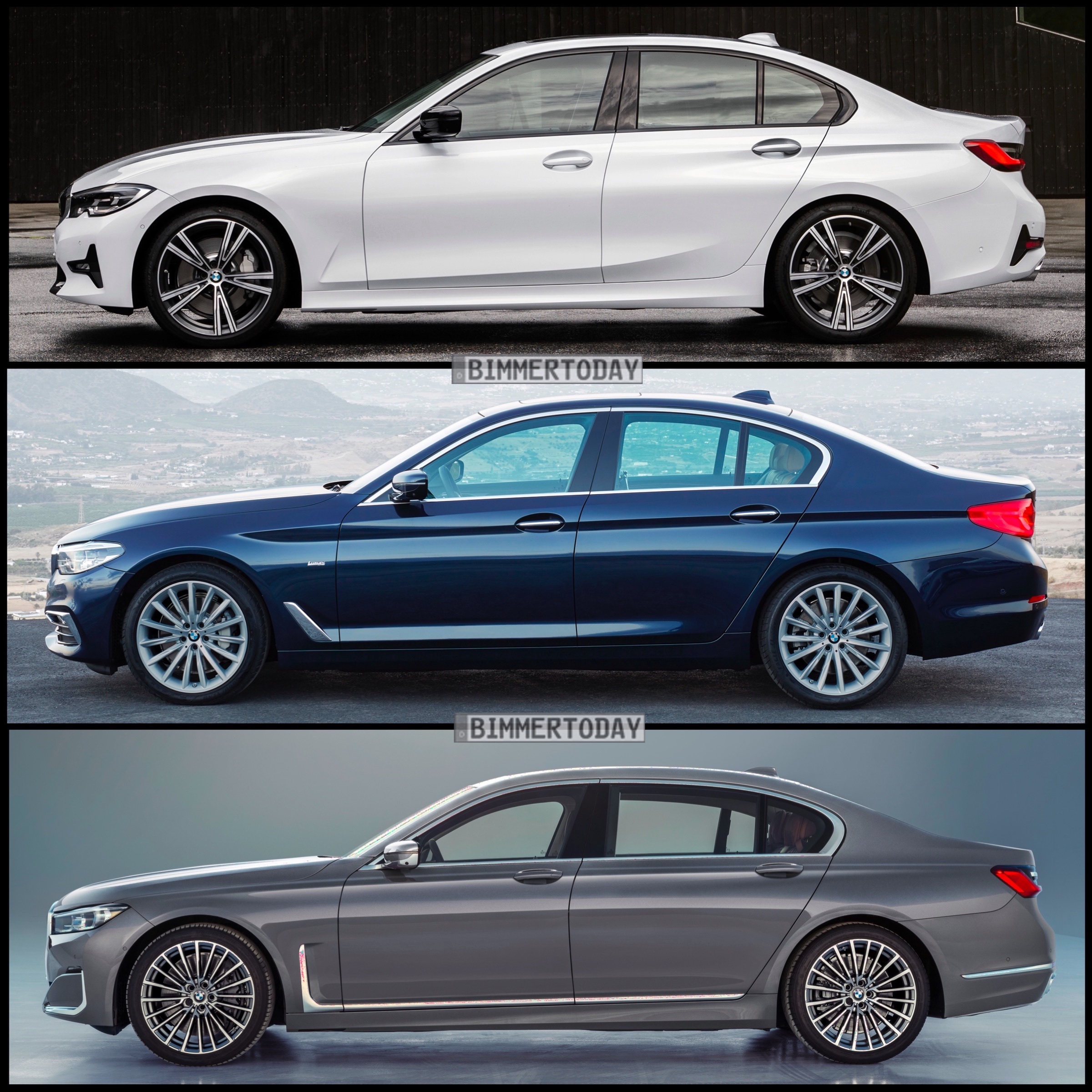 Dass BMW gerade nicht in einer solchen Phase steckt, zeigt sich beim Blick auf die drei zentralen Limousinen der Marke: 3er, 5er und 7er sind das traditionelle Herz der Marke und verkörpern in ihren jeweiligen Segmenten seit Jahrzehnten die Freude am Fahren. Unser Bild-Vergleich zeigt den noch sehr jungen BMW 3er G20, den vor knapp zwei Jahren eingeführten BMW 5er G30 und das brandneue BMW 7er Facelift 2019 aus ähnlichen Blickwinkeln.