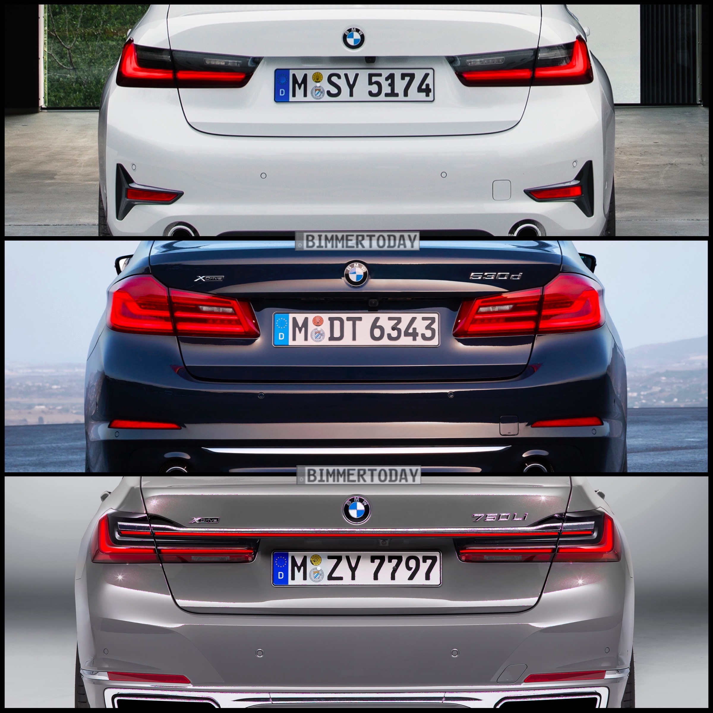 Dabei wird die Intension der Designer klar, allen Limousinen einen eigenständigen Auftritt mit auf den Weg zu geben. Egal ob Front oder Heck, alle drei Fahrzeuge interpretieren die typischen BMW-Designmerkmale auf ihre eigene Art und erlauben es jedem halbwegs automobilinteressierten Betrachter, die Baureihen klar auseinanderzuhalten.