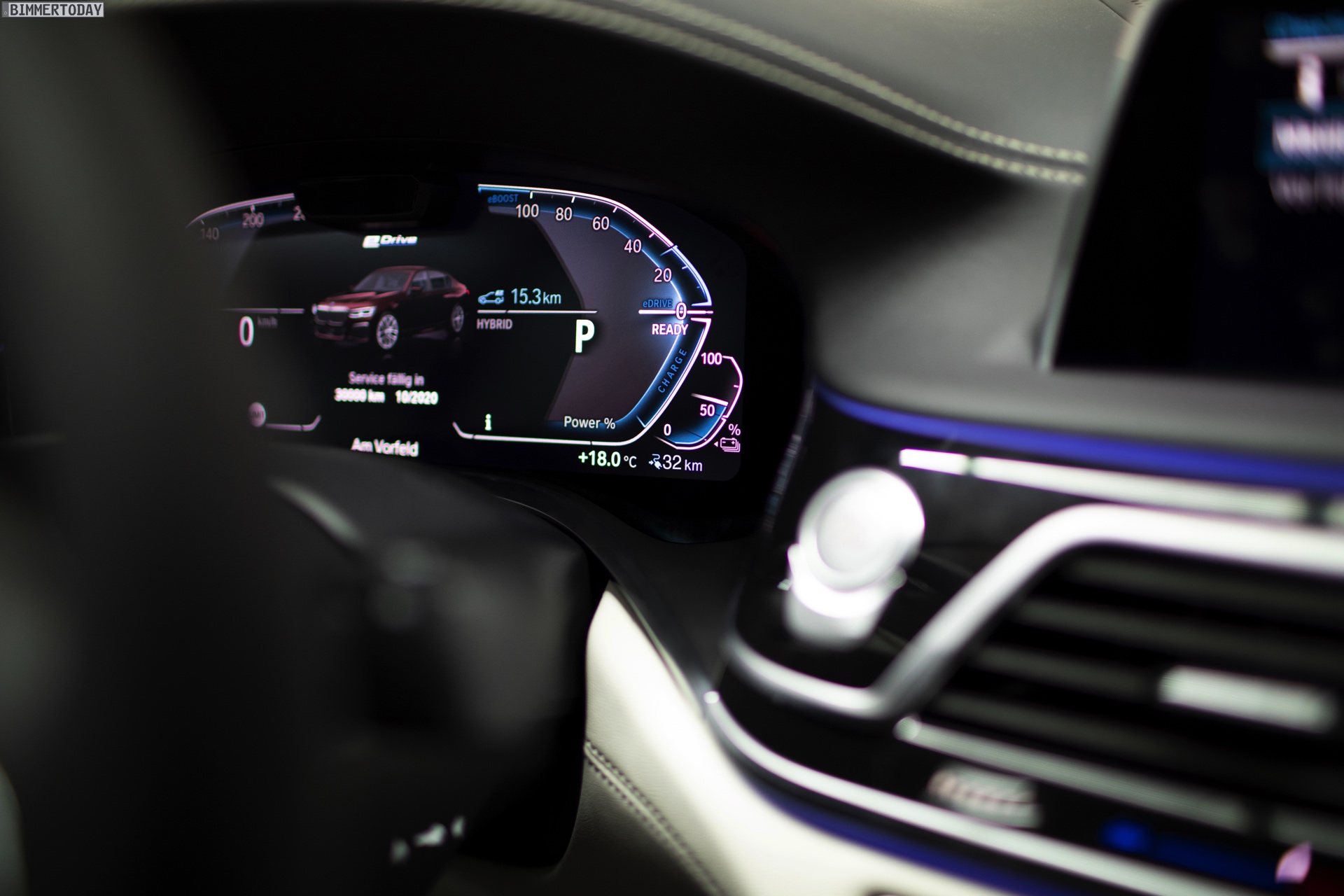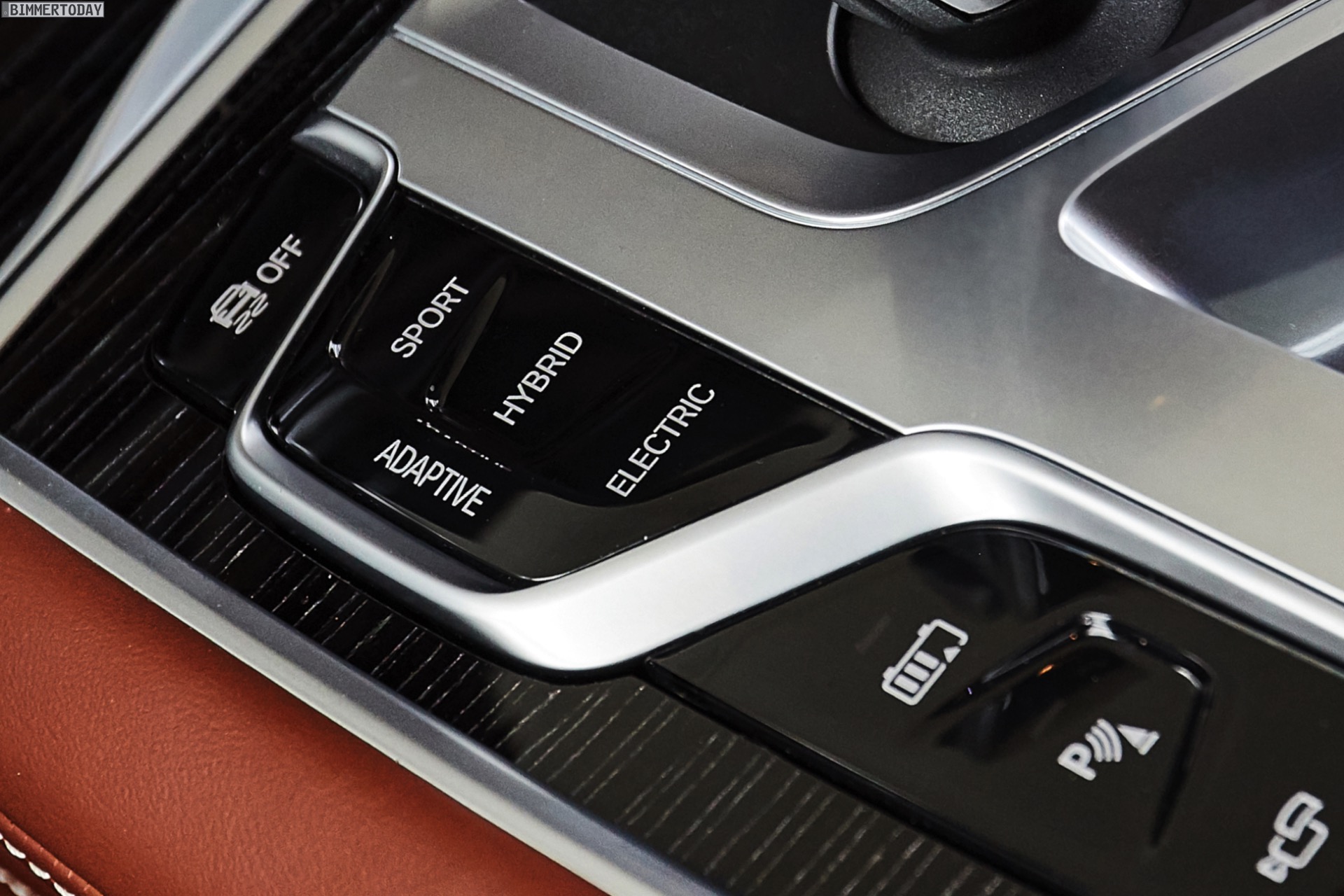 Im rein elektrischen Fahrmodus ELECTRIC sind nun bis zu 140 km/h möglich, außerdem kann er als Standard-Aufstart-Modus ausgewählt werden und ist dann bei jedem Motorstart bereits aktiviert. Trotz der gesteigerten Elektro-Fähigkeiten verzichtet der 745e auf optische Kennzeichen wie die bisher obligatorischen eDrive-Schriftzüge auf der C-Säule oder iPerformance-Akzente in hellem Blau. Damit Rettungskräfte im Fall der Fälle dennoch wissen, dass Hochvolt-Leitungen im Spiel sind, kann der Modellschriftzug am Heck nicht abbestellt werden.