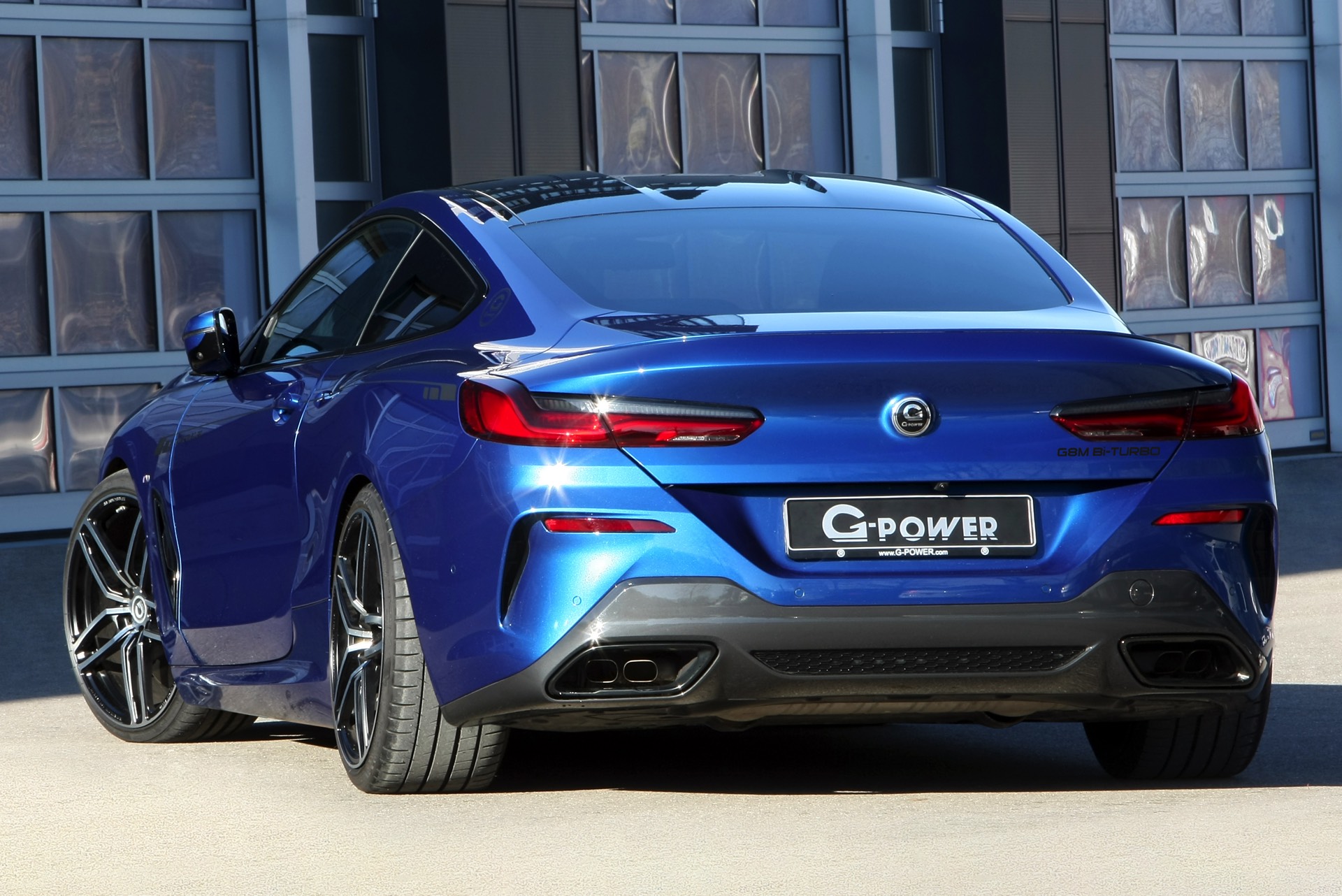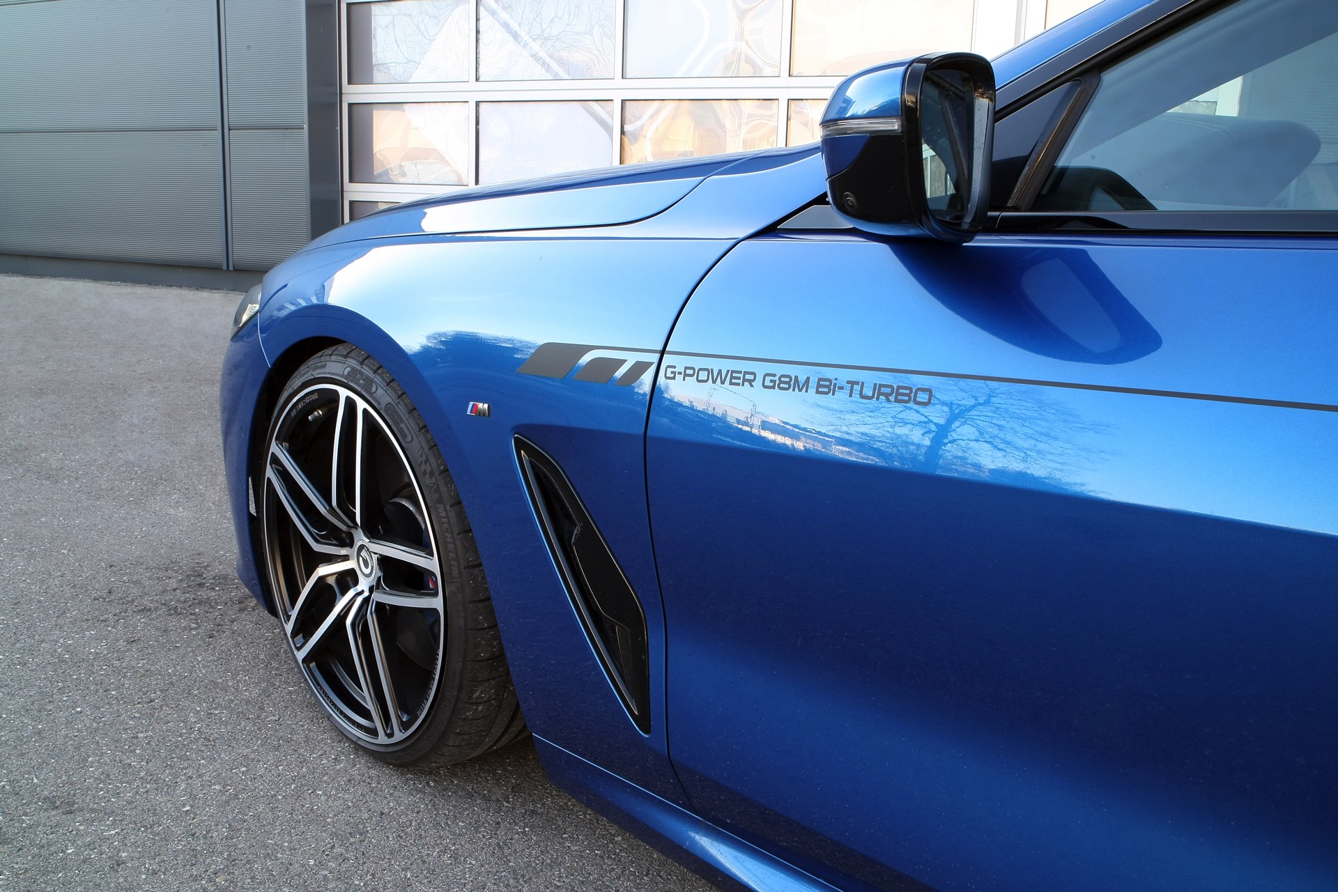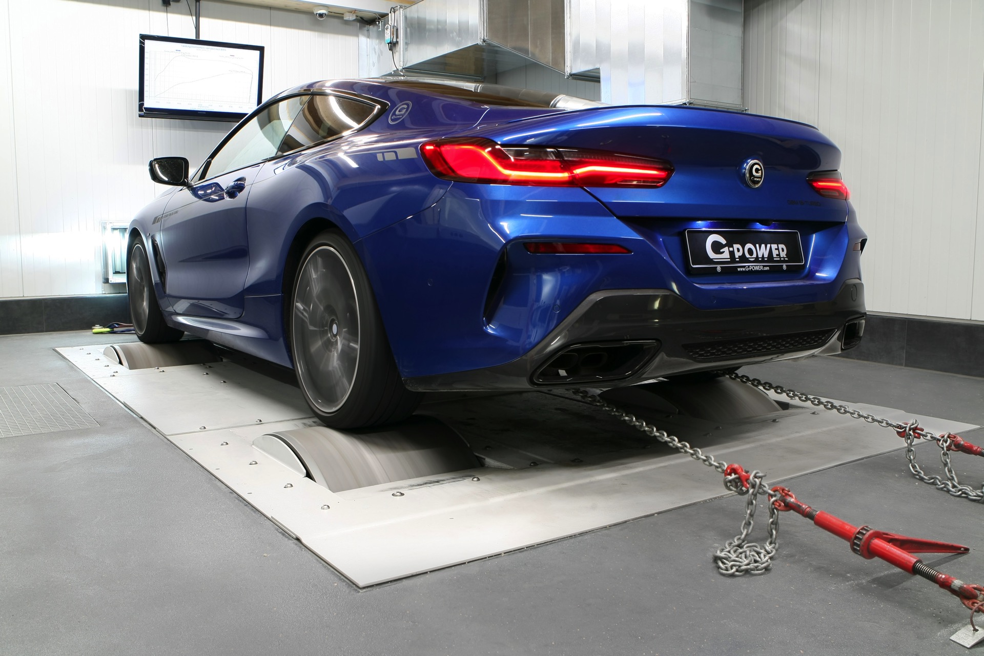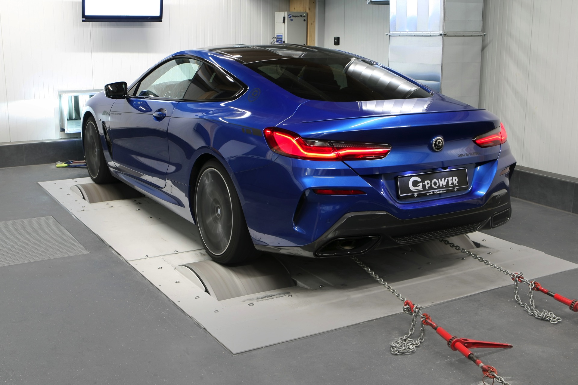 Das Resultat der üppigen Leistungssteigerung ist eine dramatische Verbesserung der Beschleunigung: Aus dem Stand ist der BMW M850i von G-Power über eine halbe Sekunde schneller auf 100 als die Serie, die Tuning-Profis haben das Luxus-Coupé mit einer imposanten Zeit von 3,1 Sekunden gemessen. Die Höchstgeschwindigkeit liegt nach dem Entfernen der elektronischen Vmax-Limitierung bei über 320 km/h.