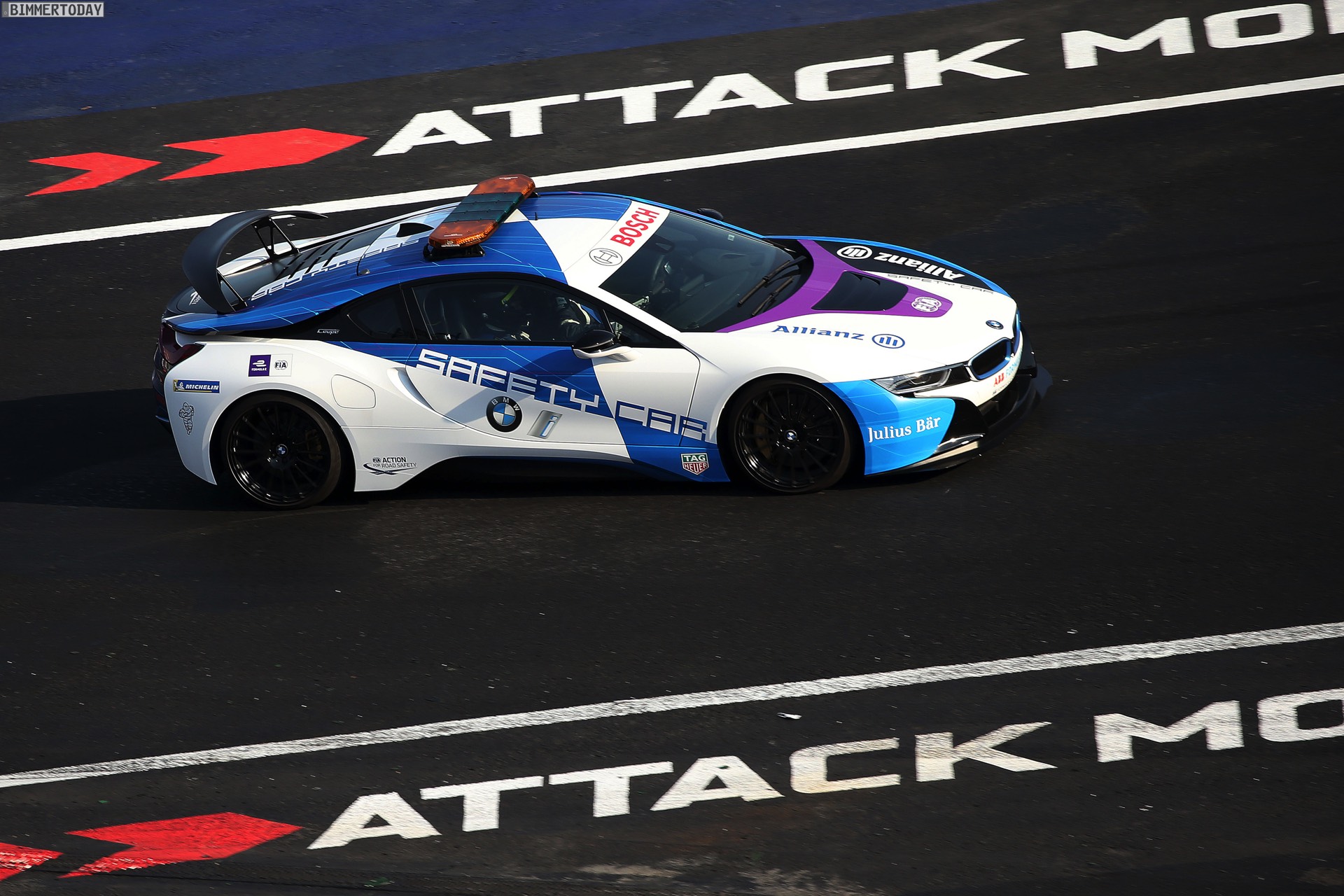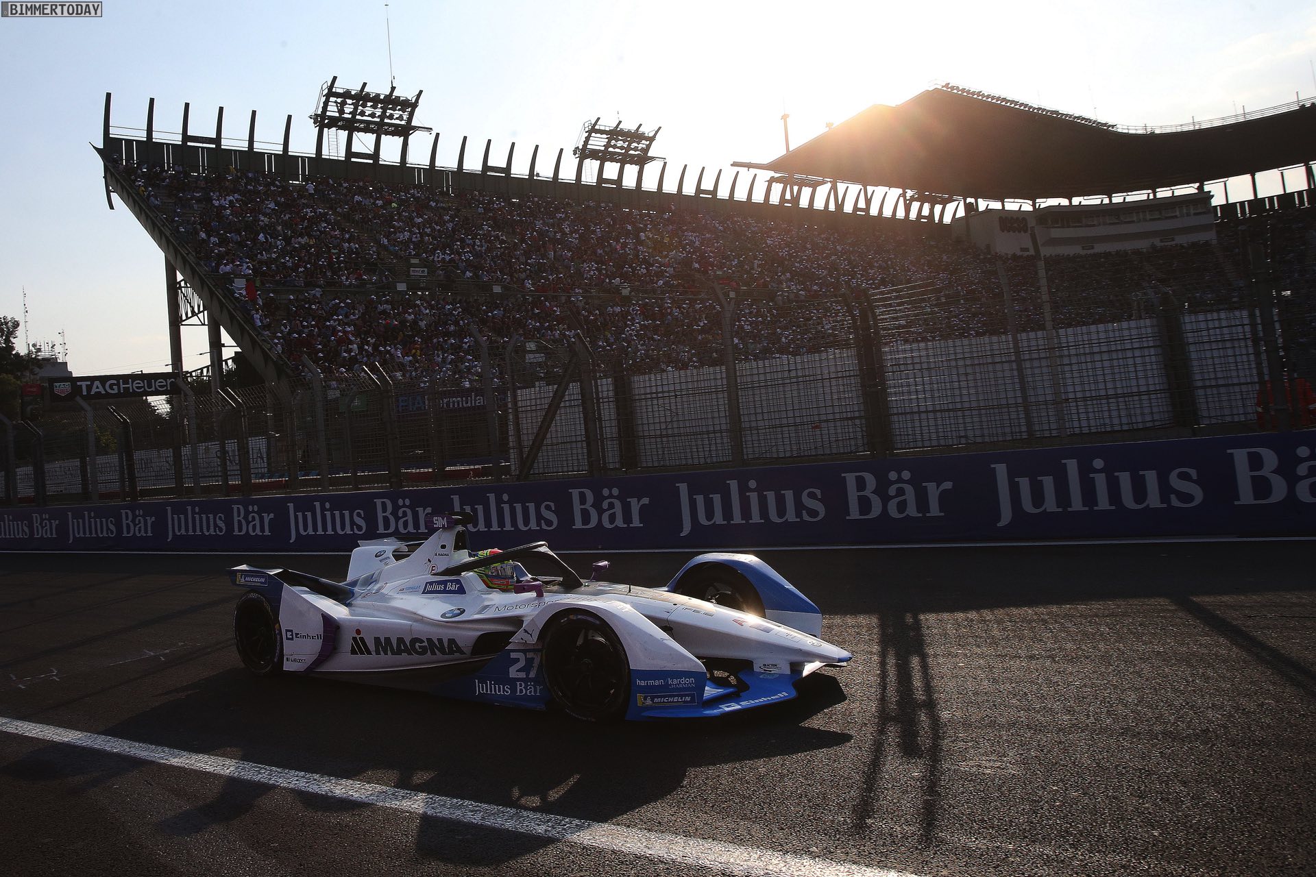 Weniger gut lieg es für Alexander Sims. Der Engländer ging von der siebten Position ins Rennen und war gleich zu Beginn des Rennens unverschuldet in eine Kollision verwickelt, die ihm ein gutes Ergebnis unmöglich machte. Der Crash zog eine Safety Car-Phase nach sich, weshalb auch das BMW i8 Safety Car im neuen Design einige Führungskilometer sammeln konnte. Nach einer längeren Reparaturpause mit Wechsel der Front konnte Sims das Rennen zwar fortsetzen, mehr als Position 14 war aber nicht mehr drin.