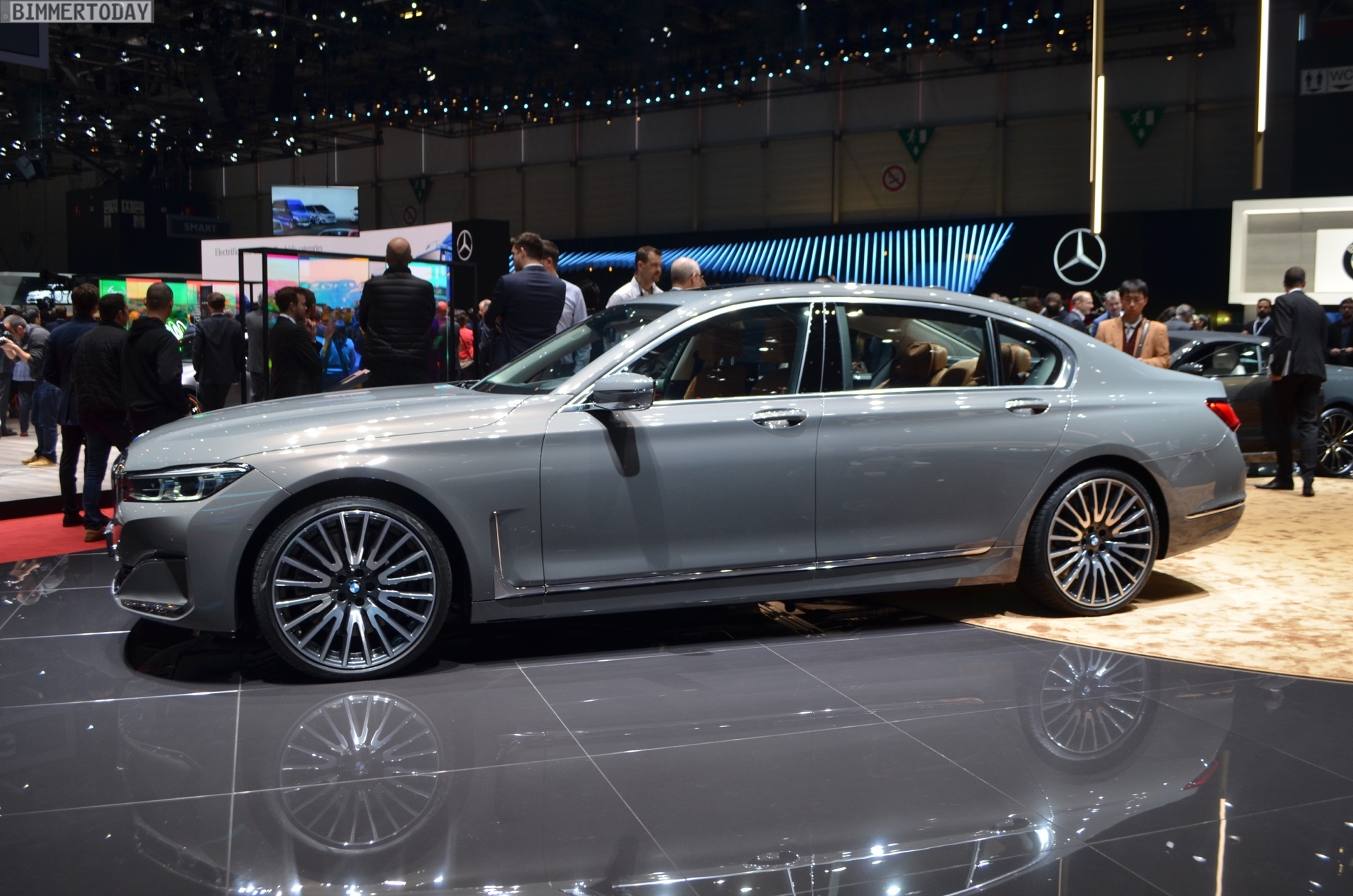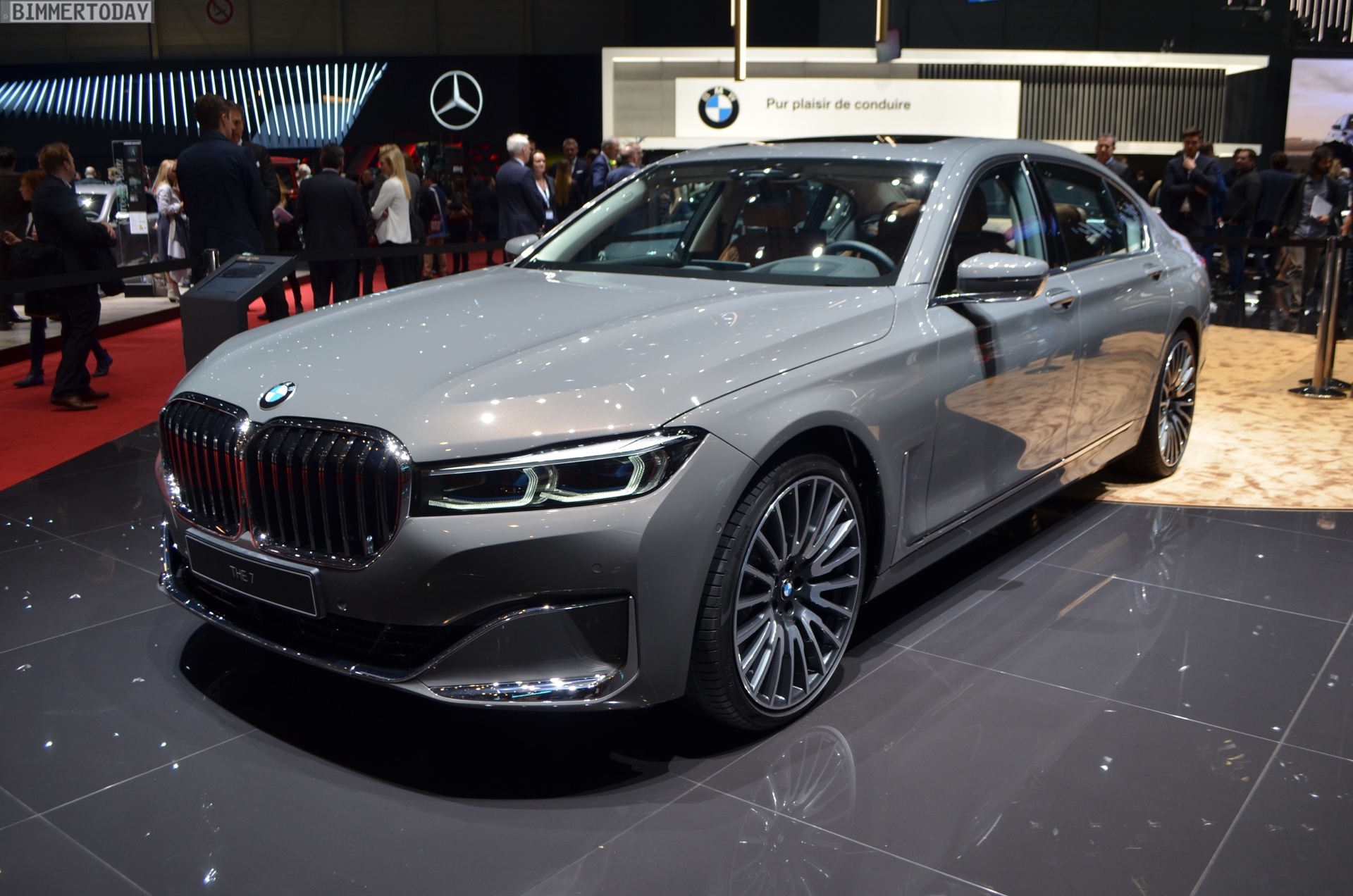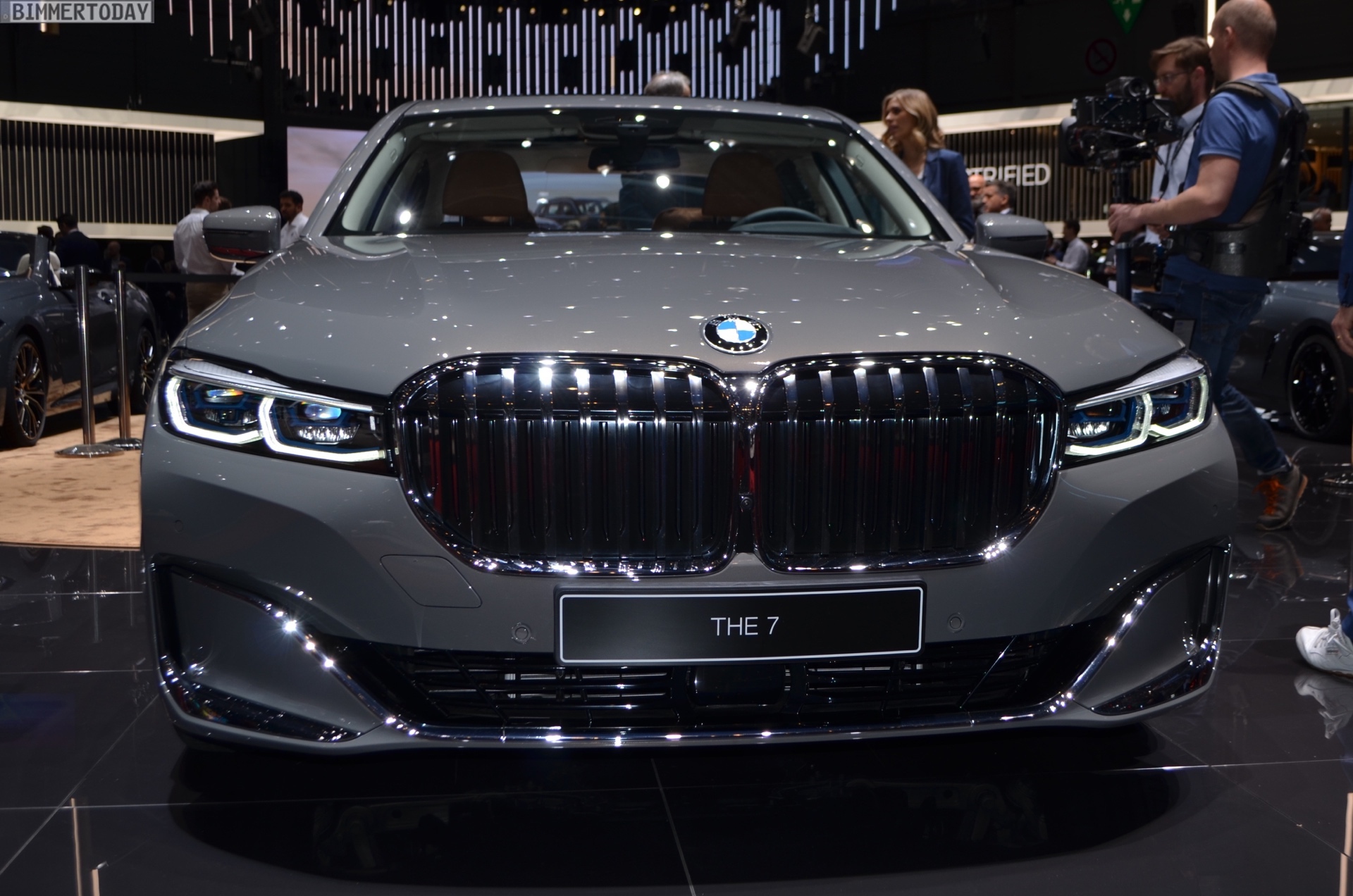 Mit seiner riesigen Doppel-Niere, den schmaleren Scheinwerfern und dem durchgehenden Leuchtenband am Heck setzt der BMW 7er 2019 auch in Genf ein dickes Ausrufezeichen. Die Botschaft ist klar: Der neue 7er ist das vor allem von chinesischen Kunden geforderte Statement, das vor Selbstbewusstsein nur so strotzt. Mit dem neuen Design zeigt der 7er klarer als jemals zuvor, dass er die Krönung der BMW-Modellpalette ist und über allen anderen Baureihen thront.