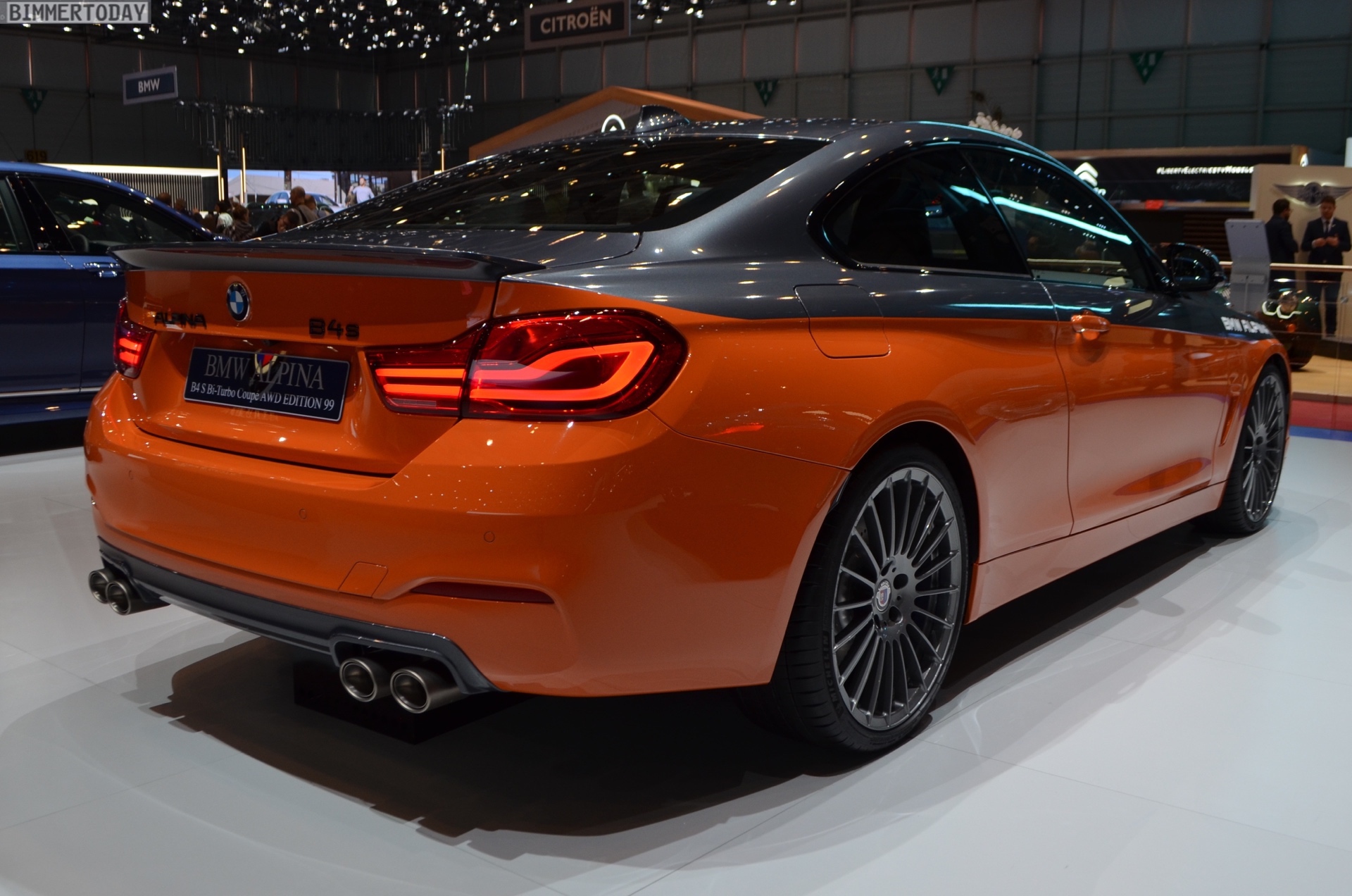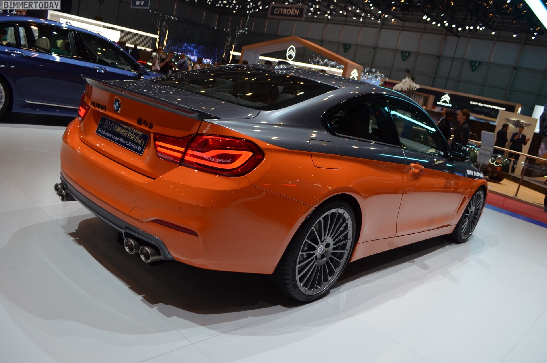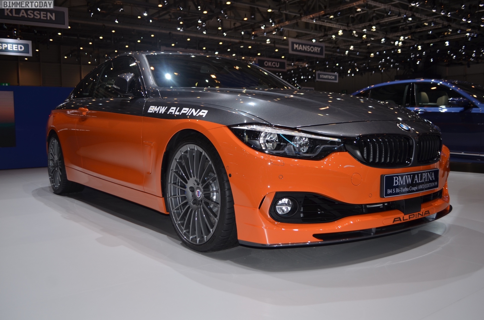 Nur 99 Exemplare der BMW Alpina B4 S Edition 99 sollen gebaut werden, aber die Exklusivität des auf dem Genfer Autosalon 2019 präsentierten Fahrzeugs setzt auch innerhalb des exklusives Kreises Maßstäbe. Denn während sich die Mehrheit der Kunden zwischen Feuerorange, Grigio Medio, Alpina Blau, Saphirschwarz oder Mineralweiß entscheiden wird, zeigt Alpina am Messe-Fahrzeug die optionale Heritage-Folierung und beschert dem B4 so einen Bicolor-Look.