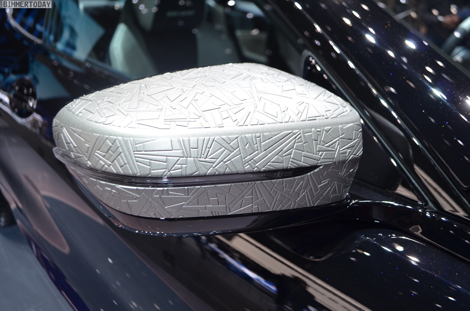 Mehr als nur einen zweiten Blick verdient auch die Lackierung, bei der die schwarze Grundfarbe mit einer zweiten Farbschicht in San Marino Blau kombiniert wurde. Das kräftige Blau ist nur im unteren Bereich der Karosserie in voller Pracht zu sehen, ein Fading-Effekt rückt die schwarze Grundfarbe mit zunehmender Höhe immer stärker in den Vordergrund. Lufteinlässe, Außenspiegel und weitere Details tragen die charakteristische Widmanstätten-Struktur, die in natürlicher Form bisher nur von außerirdischen Objekten bekannt ist.