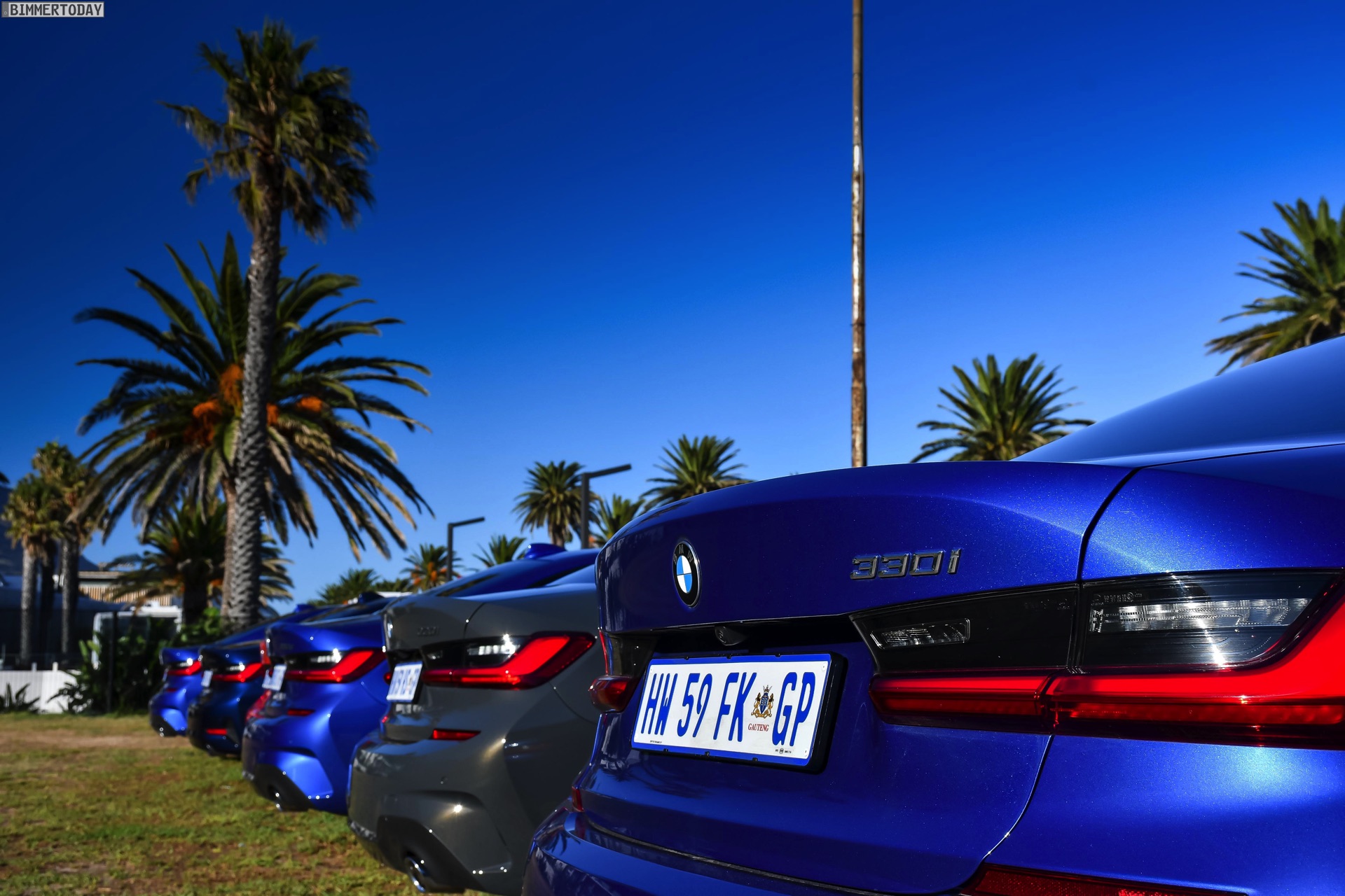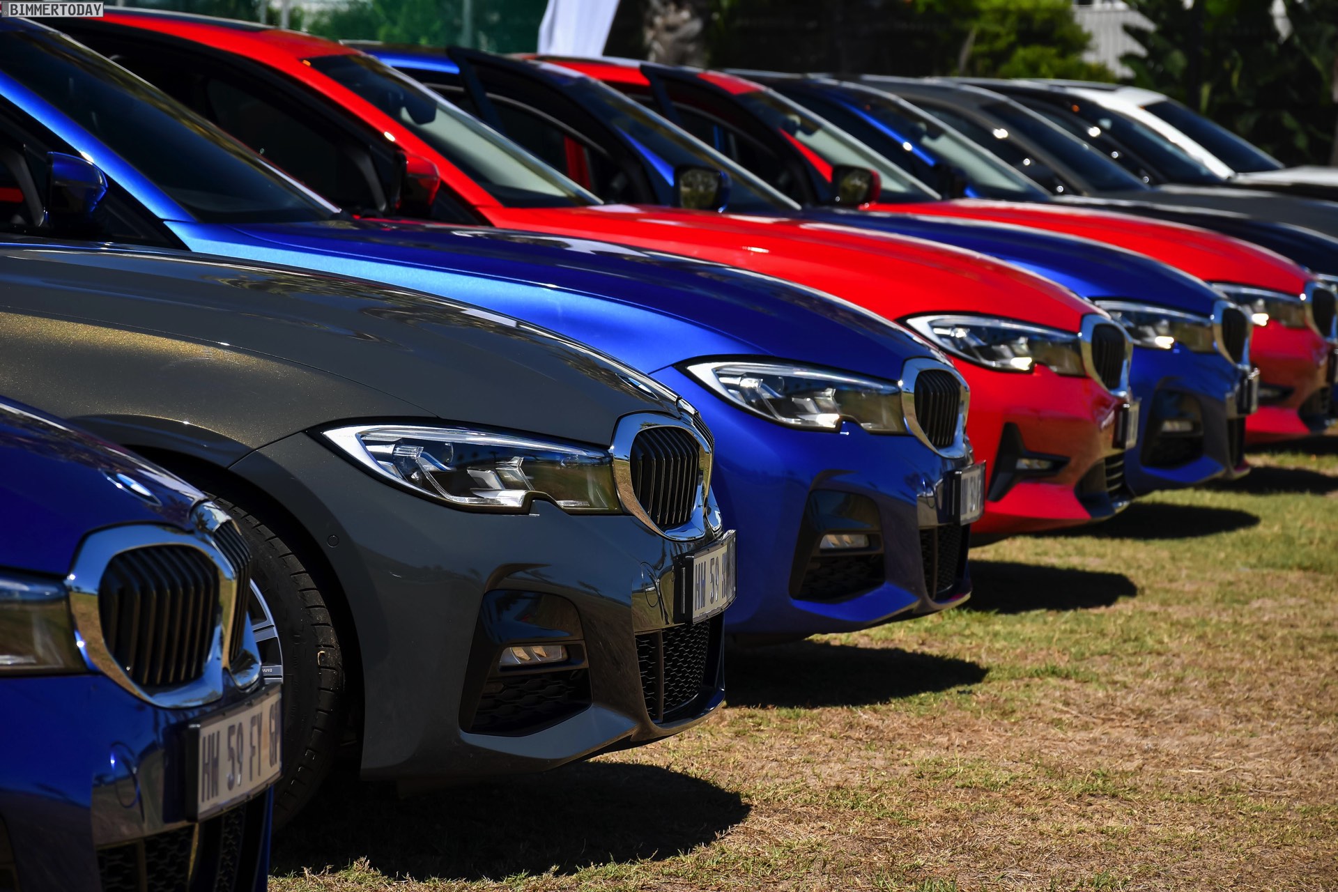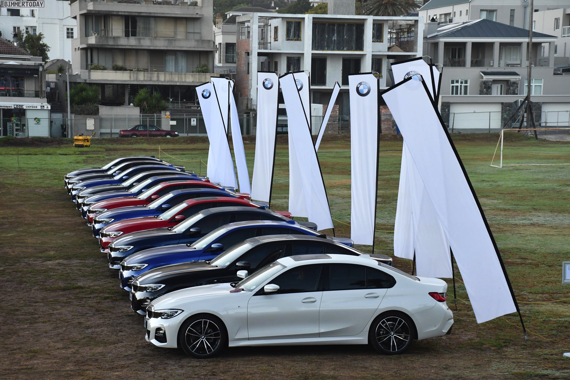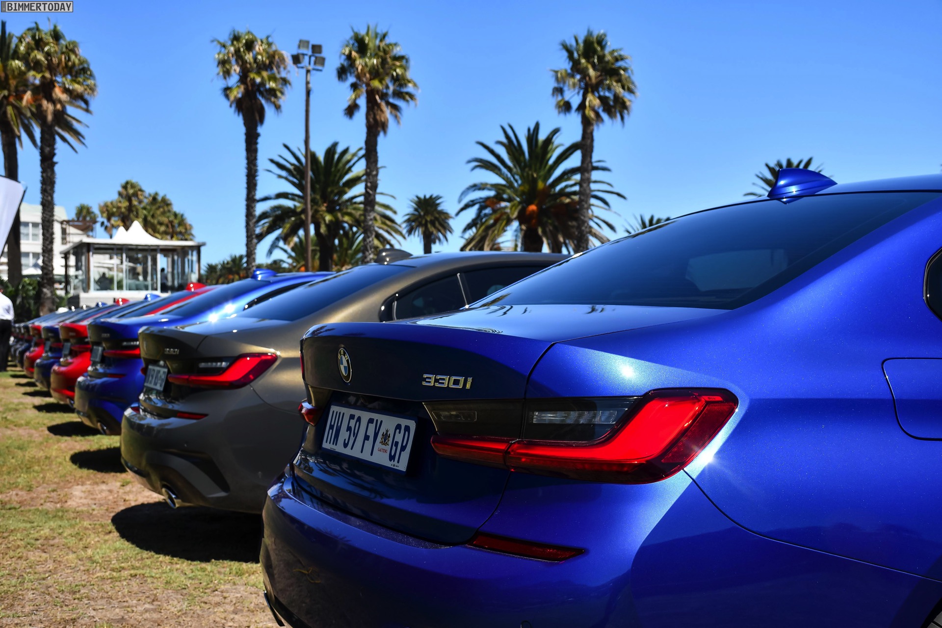 Im Fokus steht dabei ein BMW 320d G20 mit Sport Line, den BMW Südafrika gemeinsam mit vielen anderen Farb- und Ausstattungs-Varianten des BMW 3er G20 zu einem Gruppenfoto versammelt hatten. Der rote 3er trägt die 18 Zoll großen Leichtmetallräder V-Speiche 780 Bicolor, die den elegant-dynamischen Auftritt passend unterstreichen.
